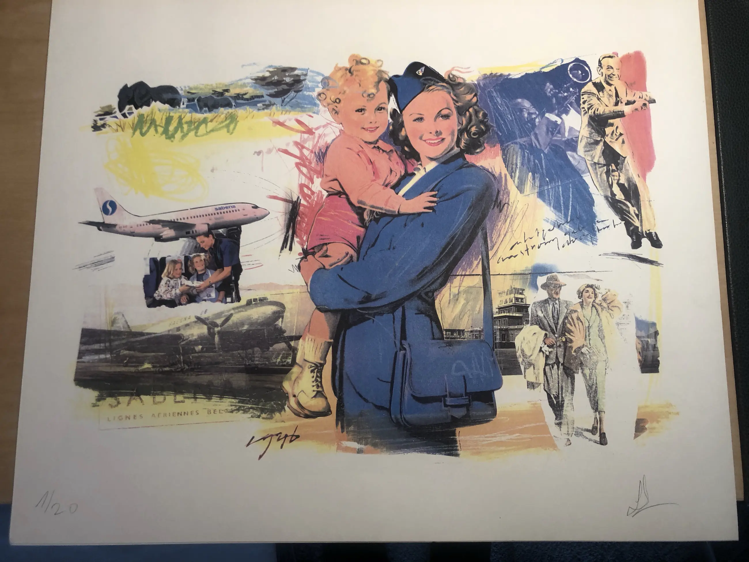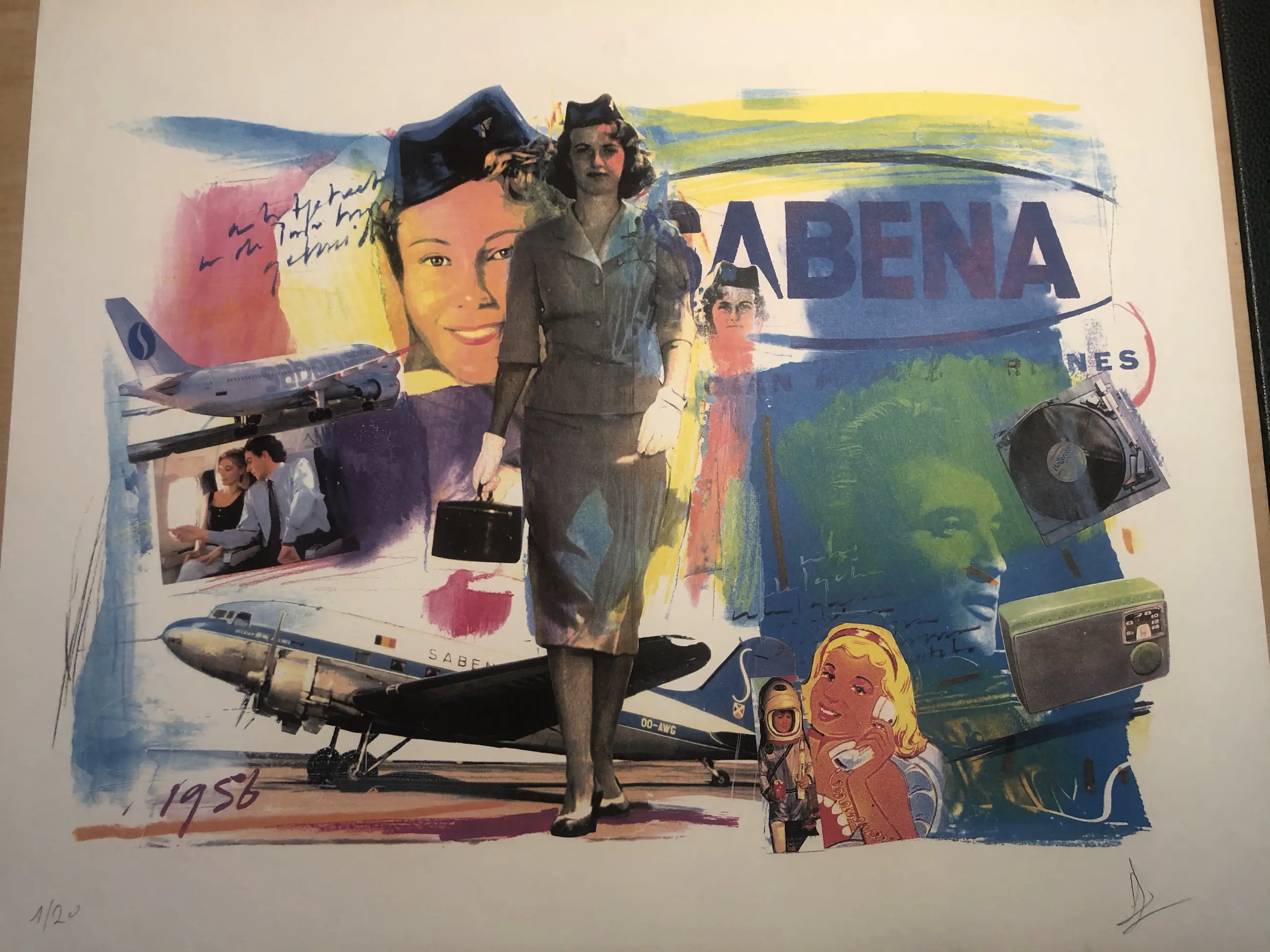 9 litho's Mooi origineel vintage Sabena kader. Komt rechtstreeks uit de familie. Mijn vader was piloot geduren de gouden jaren. Verkeerd in goede staat. Interessant item voor de Sabena verzamelaar. ook in gedrukt Keith Haring en Andy Warhol Afmetingen : 60 cm x 50 cm