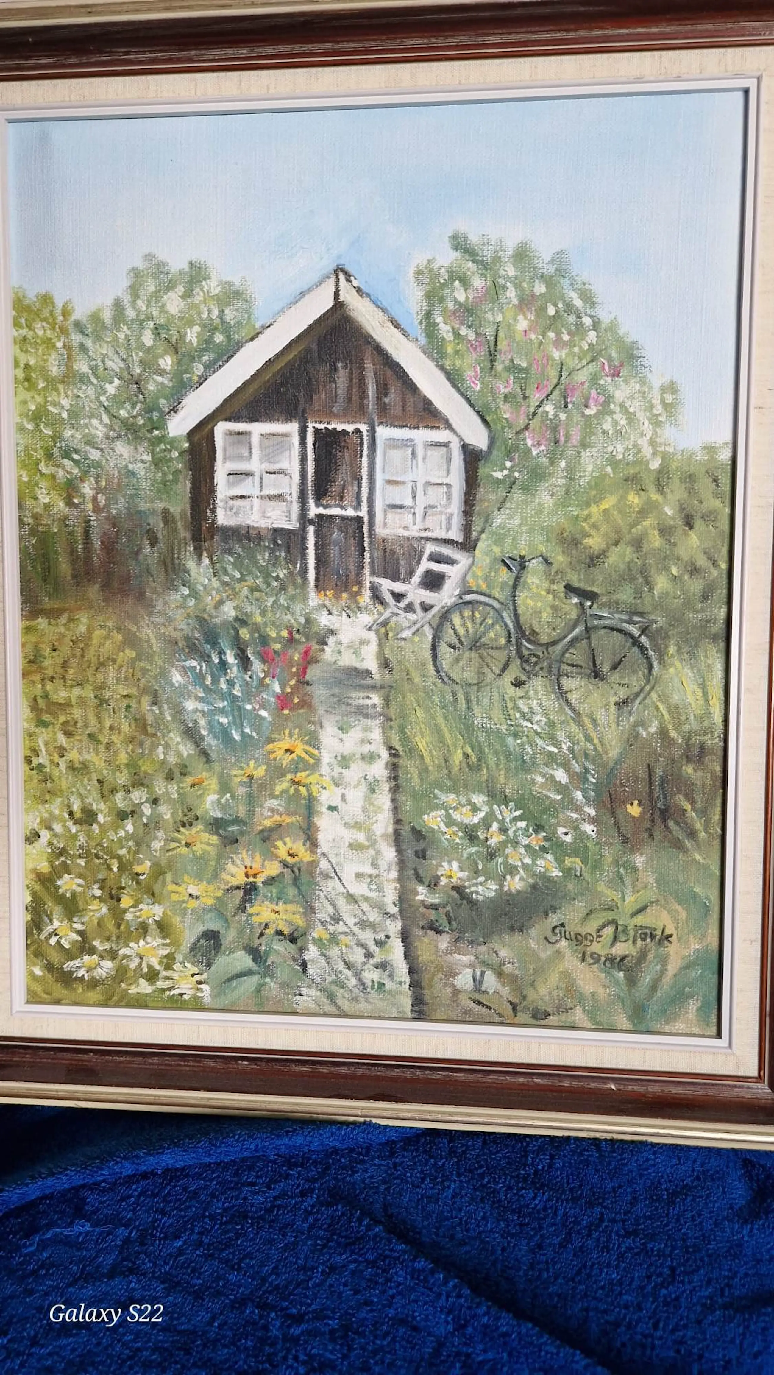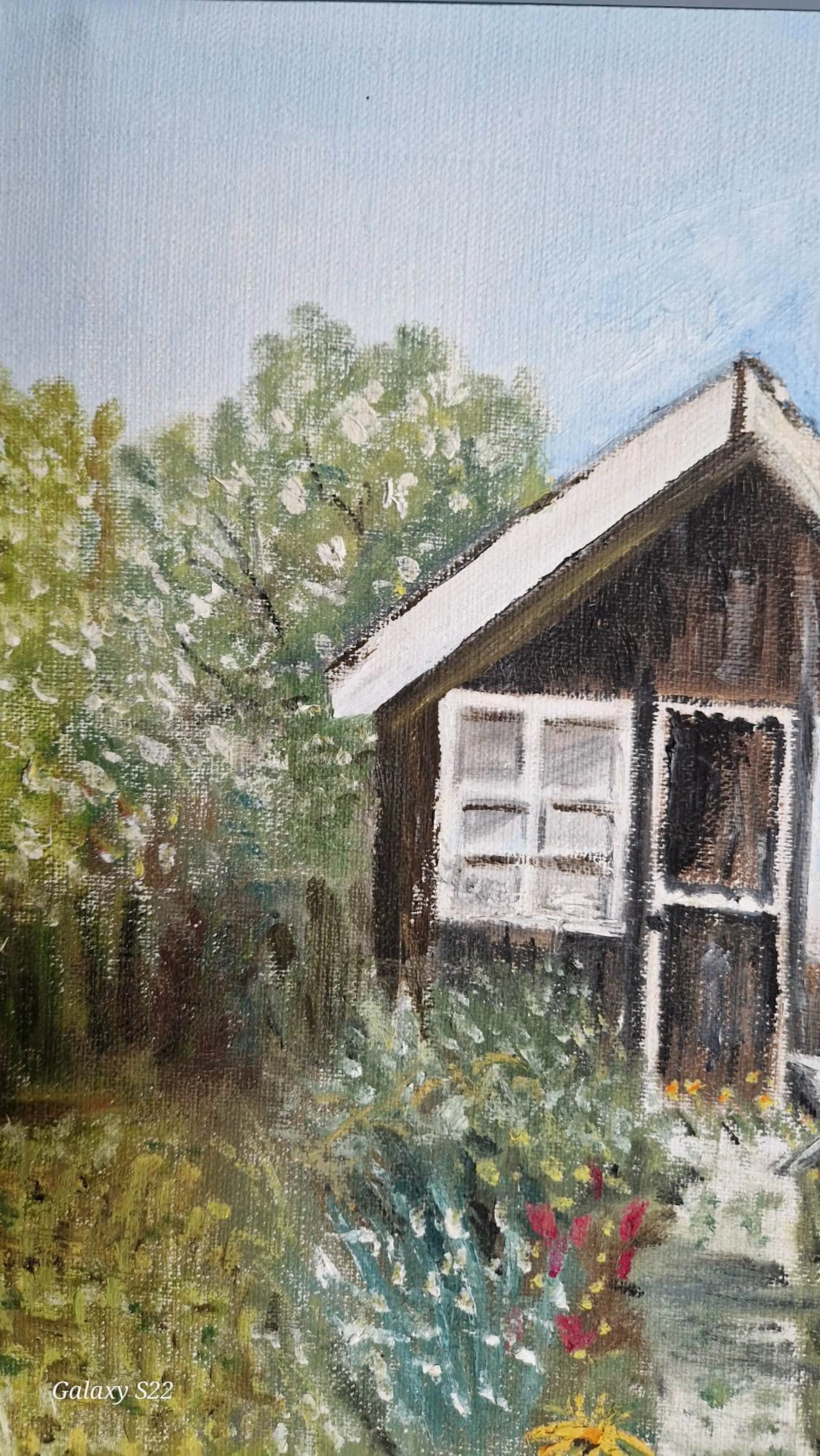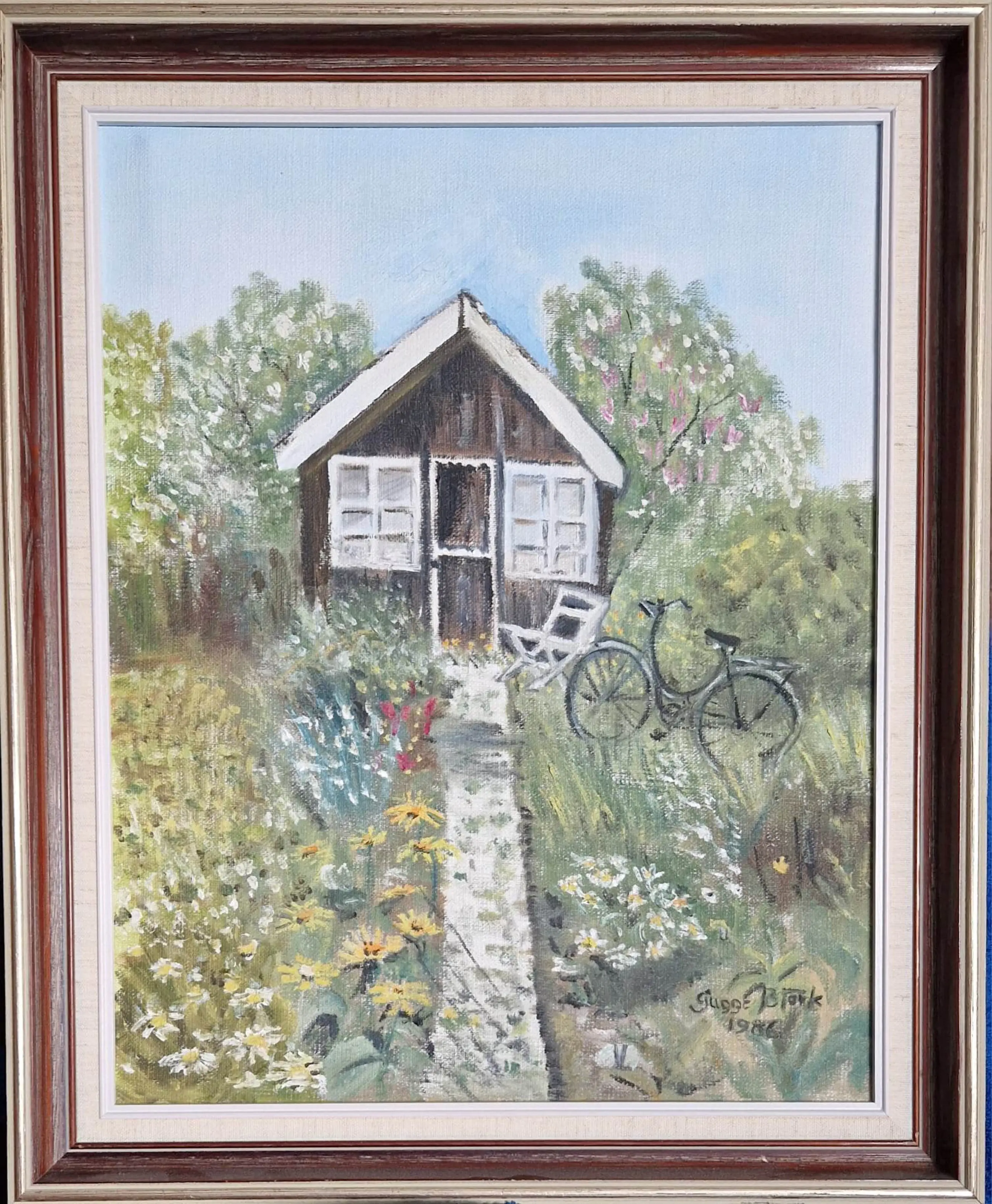 Een prachtige foto "Een stadsstraat" Scandinavische sportschool Olieverf op doek, houten lijst. Mogelijk eerste helft 20e eeuw. Afmetingen zonder lijst, hoogte 40 cm, breedte 30 cm