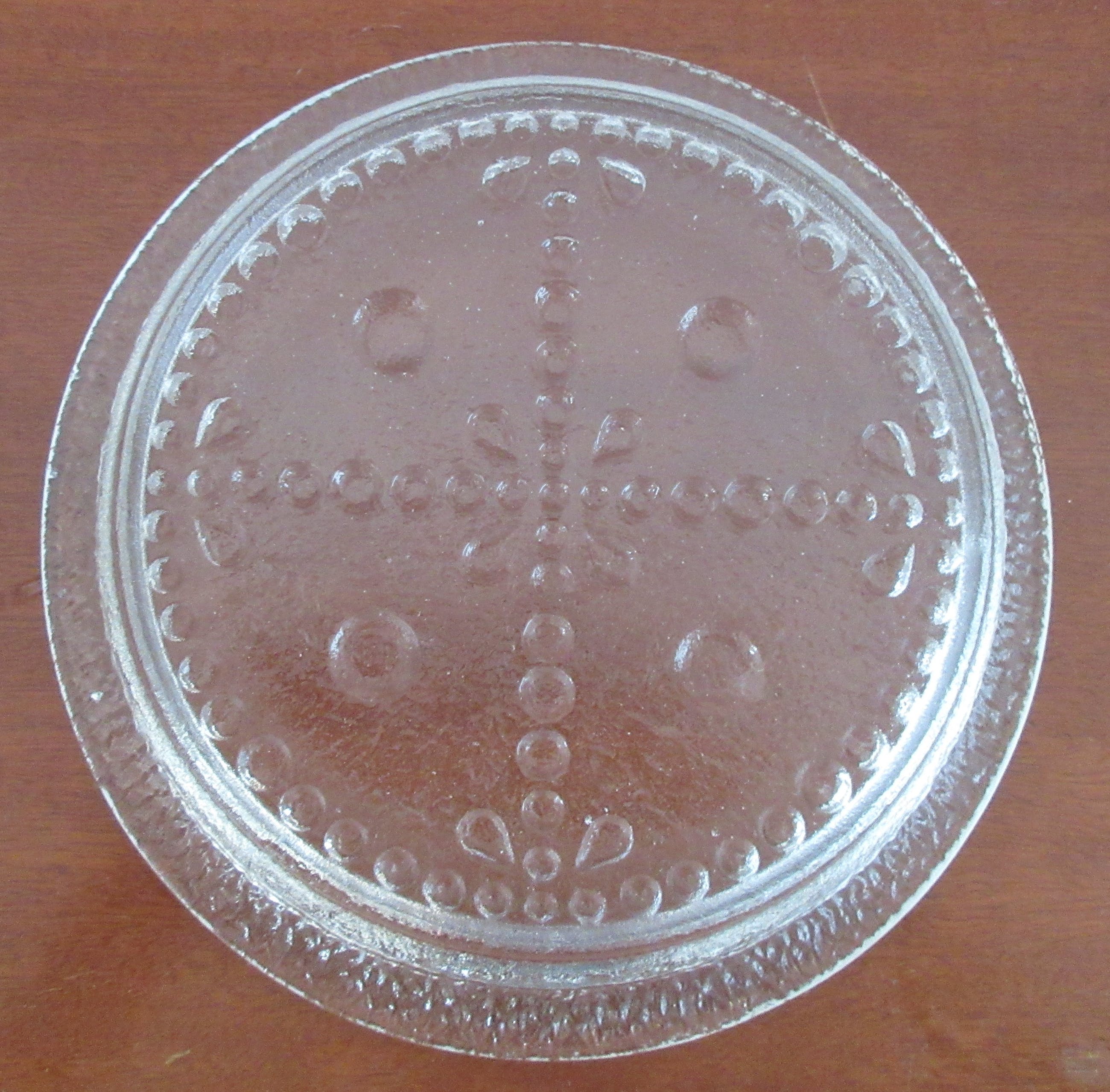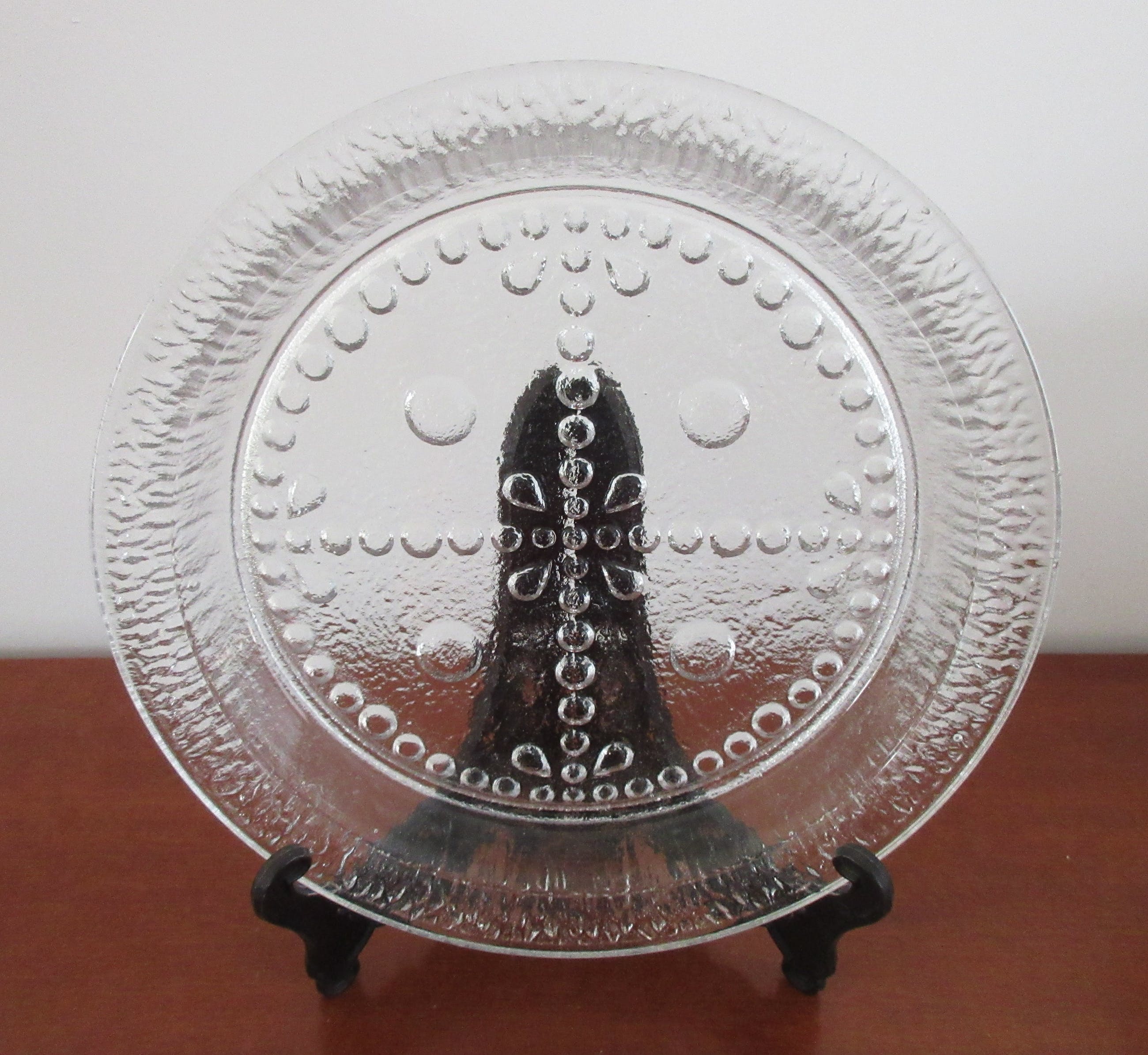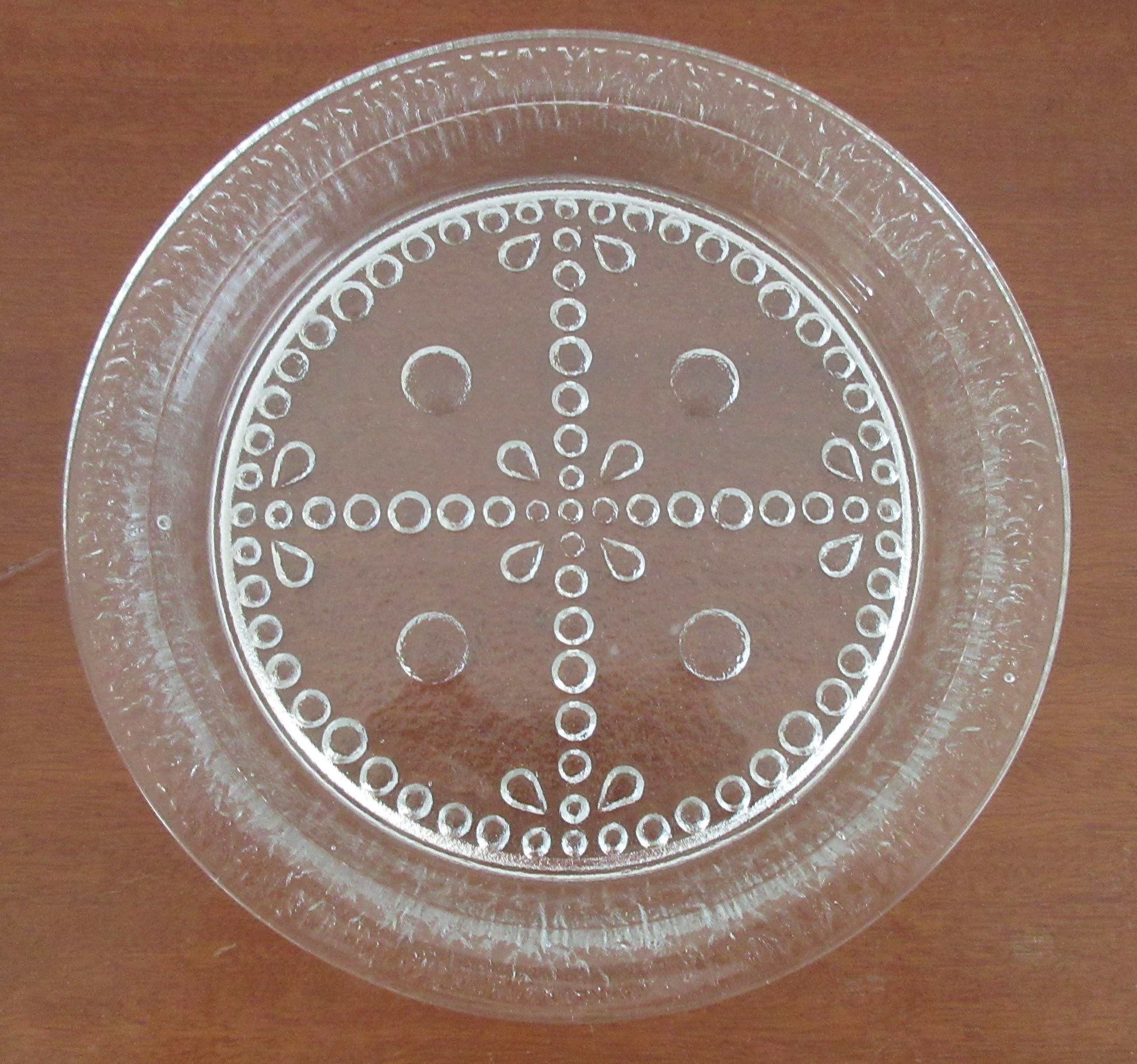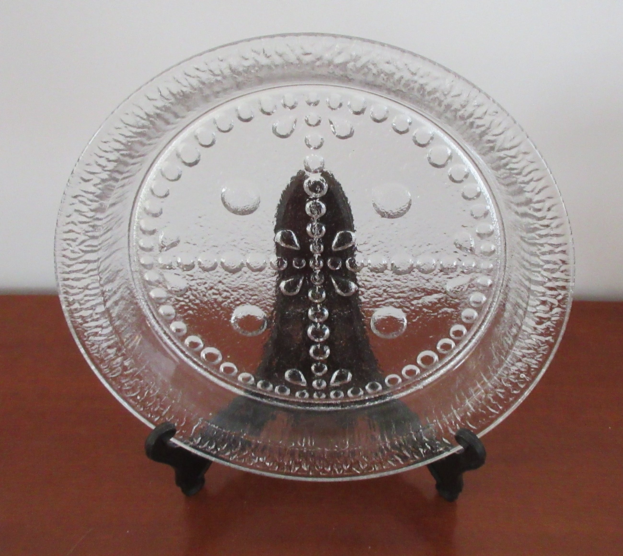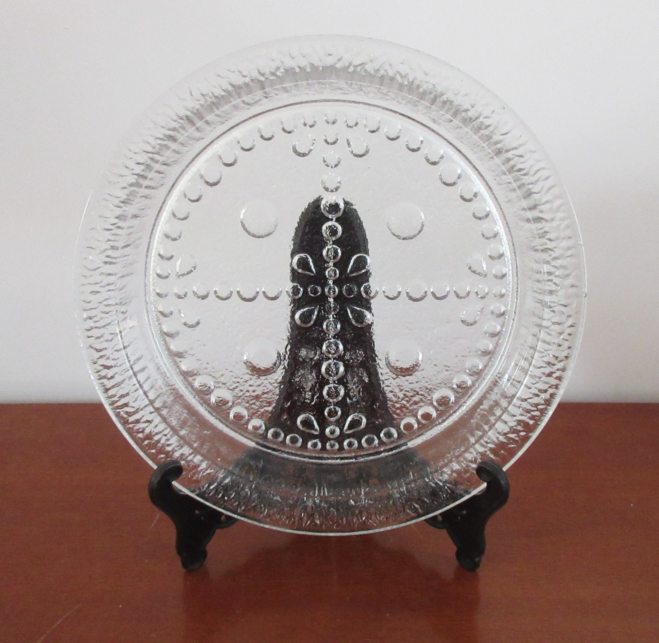 Scandinavisch vintage blankglazen schaal met retro decor. In prima onbeschadigde conditie.