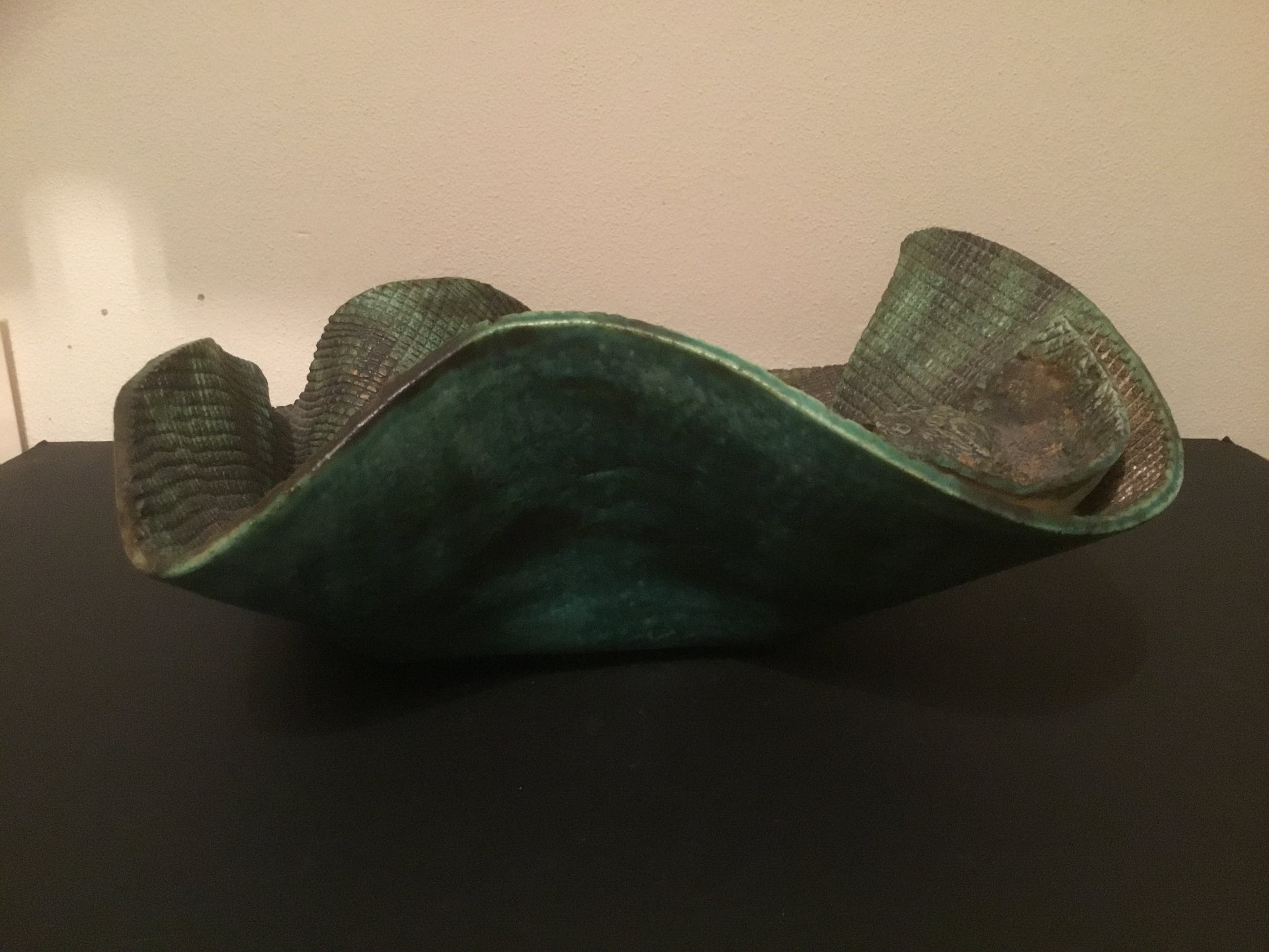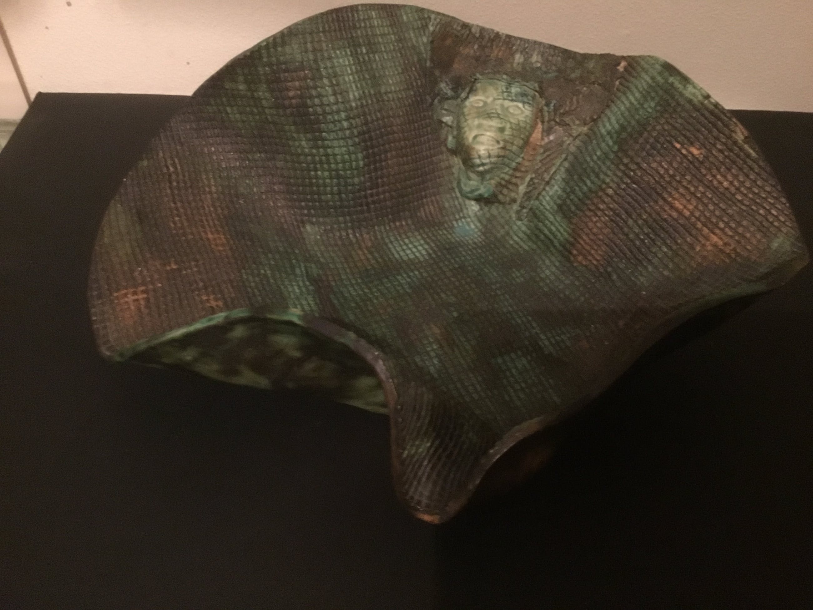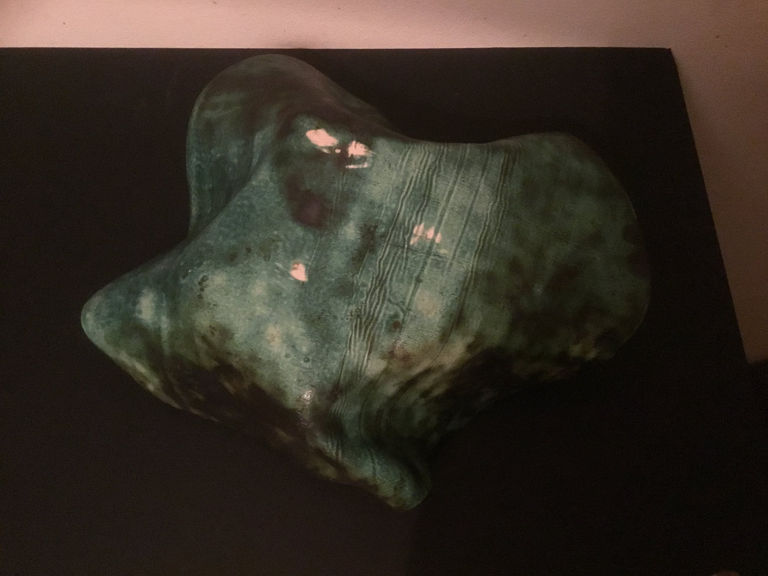 Mooie gegolfde keramieke schaal met gezicht. De schaal is in een goede staat
