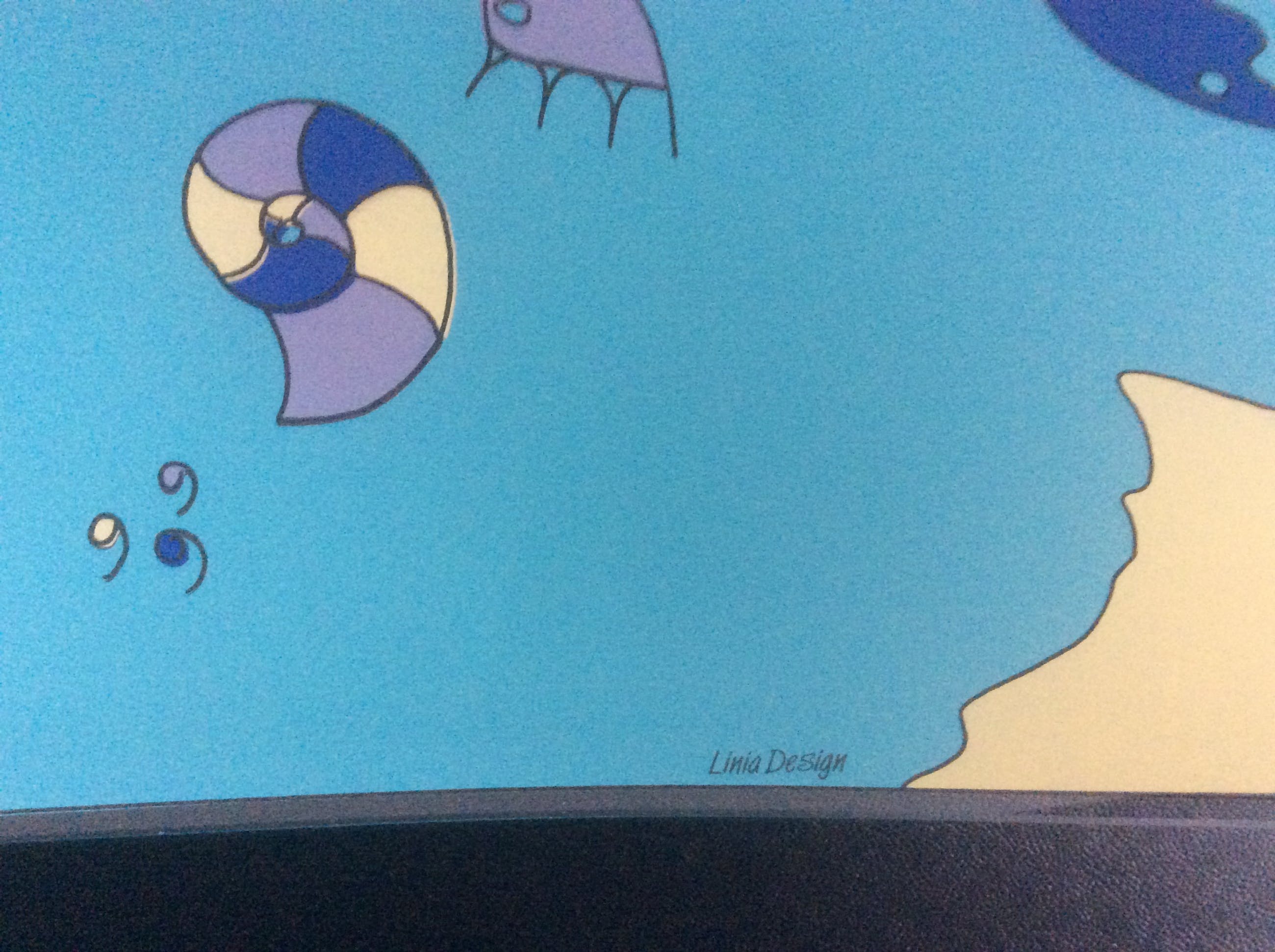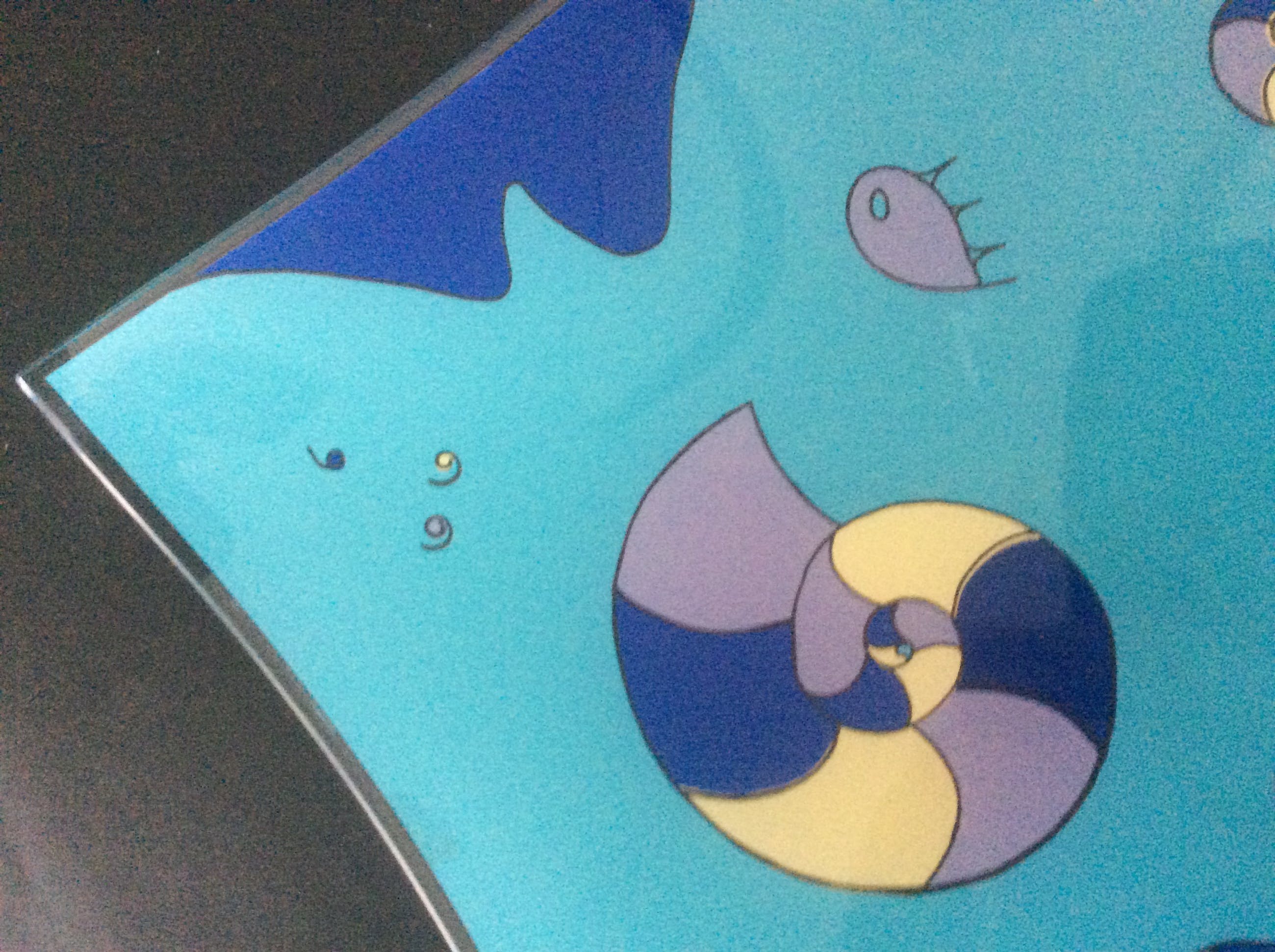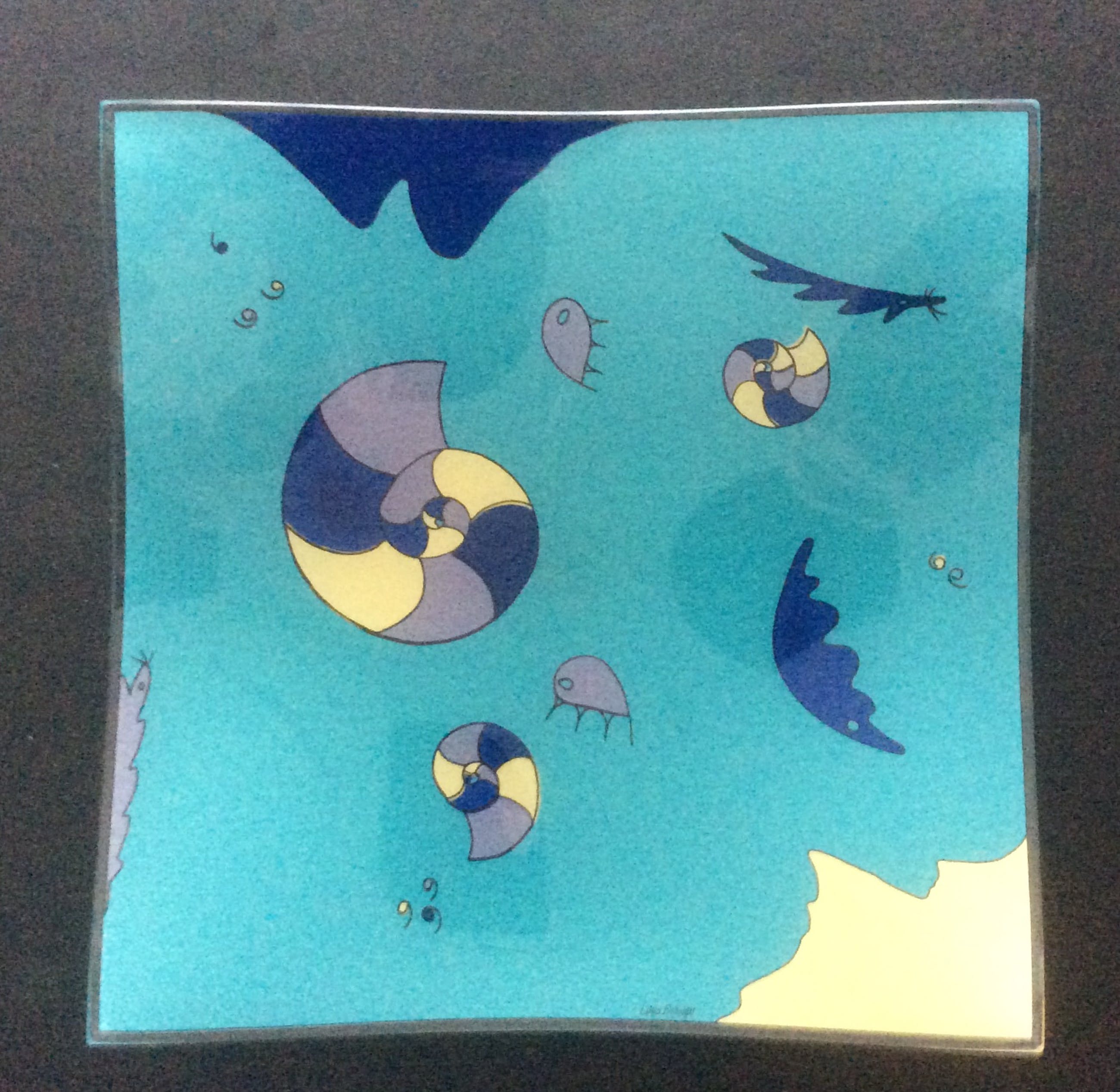 Een symbolische weergave van de zee op glas van een halve centimeter dik met omhooglopende hoeken.