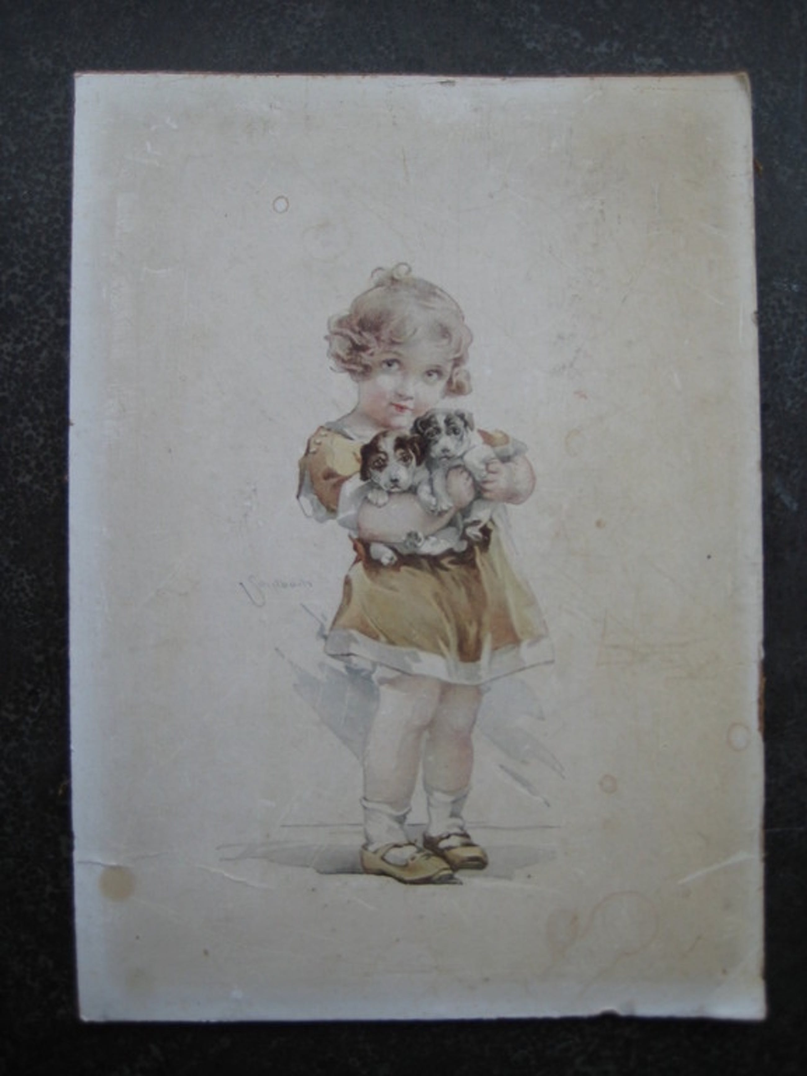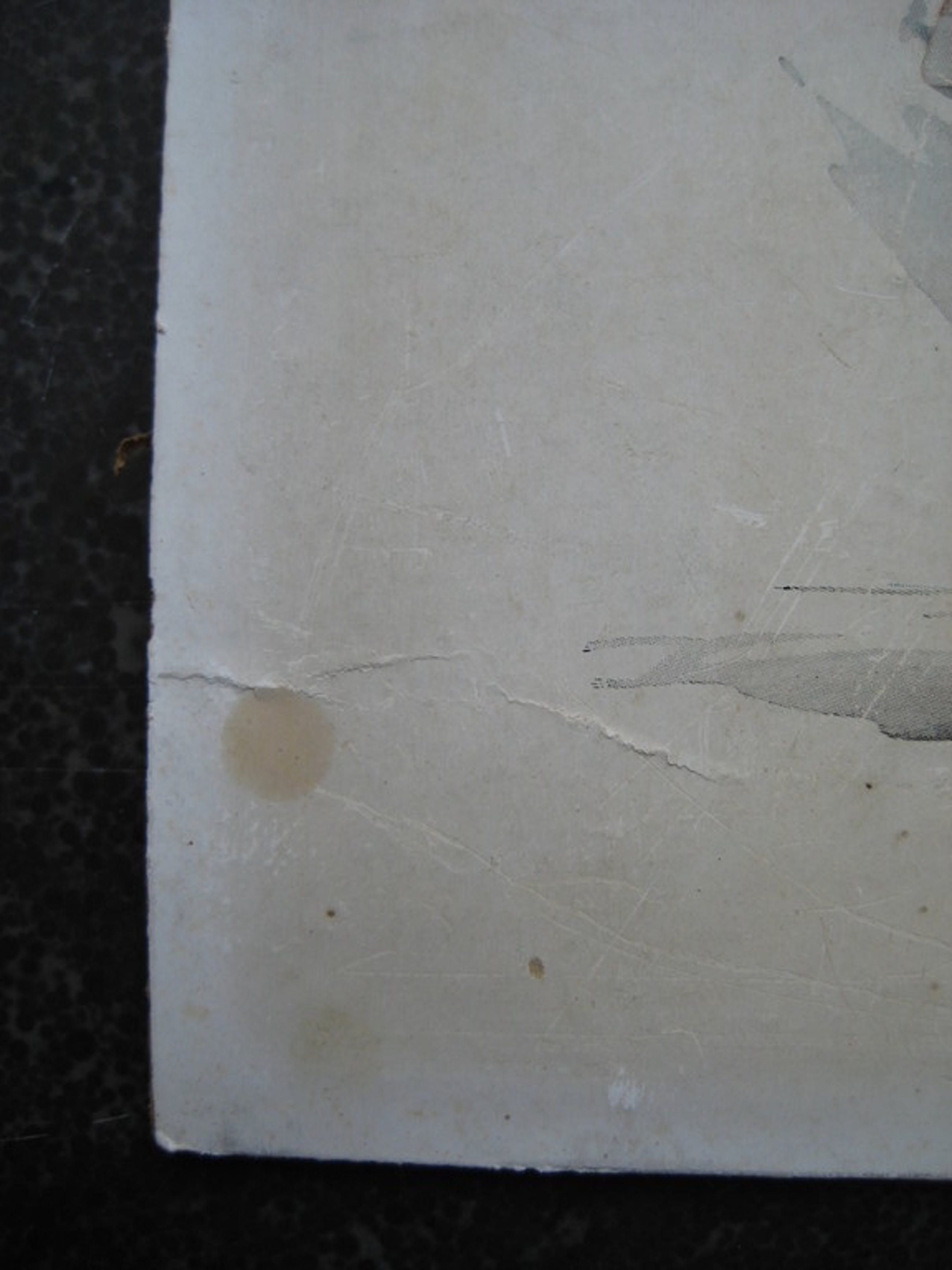 Tekening heeft vlekken en is verkleurd , mede omdat er geen lijstje met glas bij is.