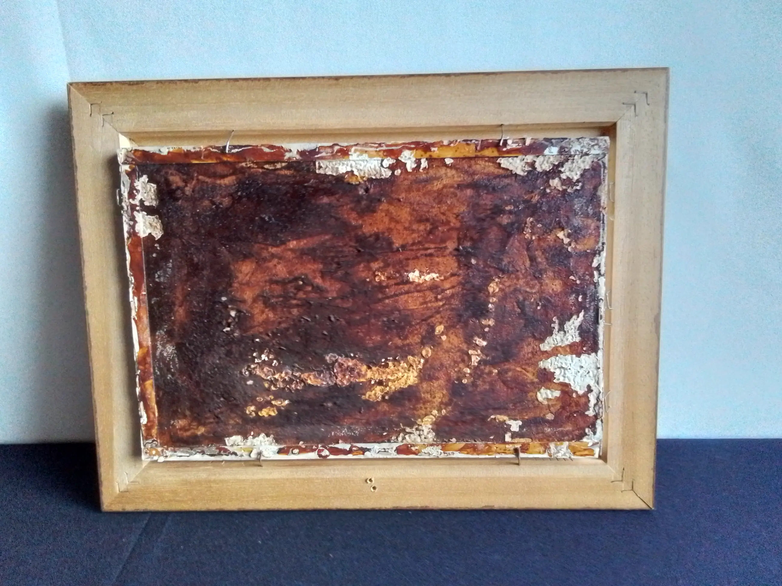 Het schilderij is 24 cm hoog en 32 cm breed inclusief de kader,