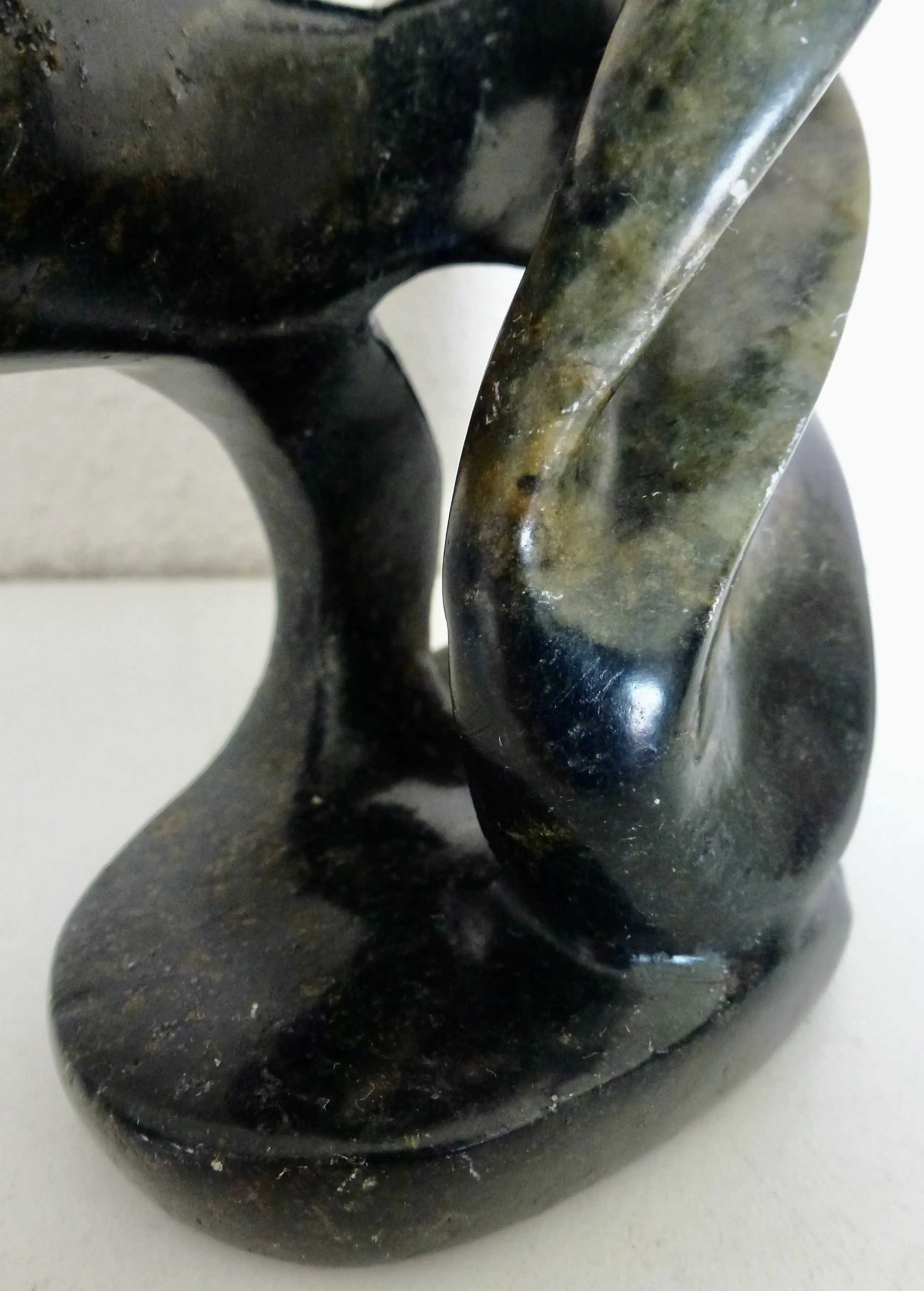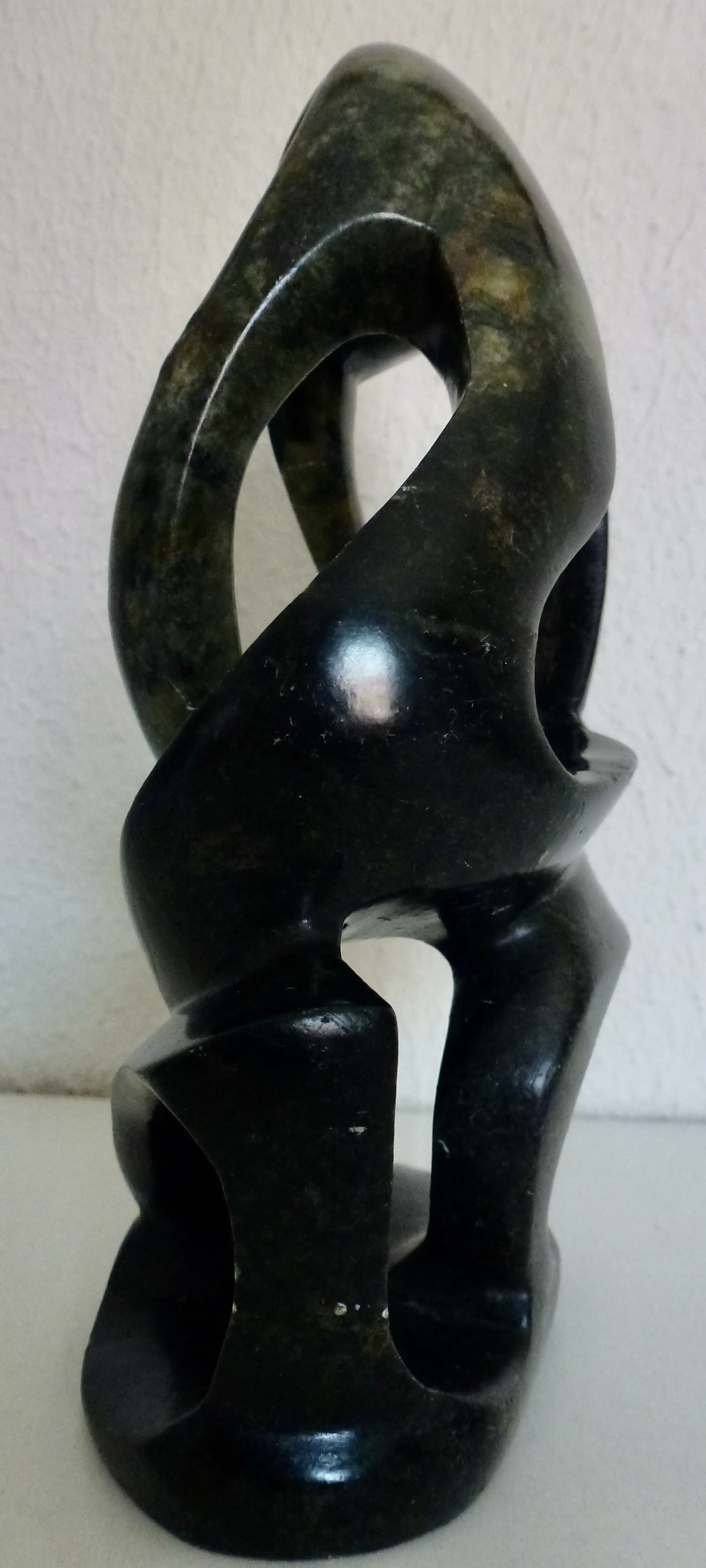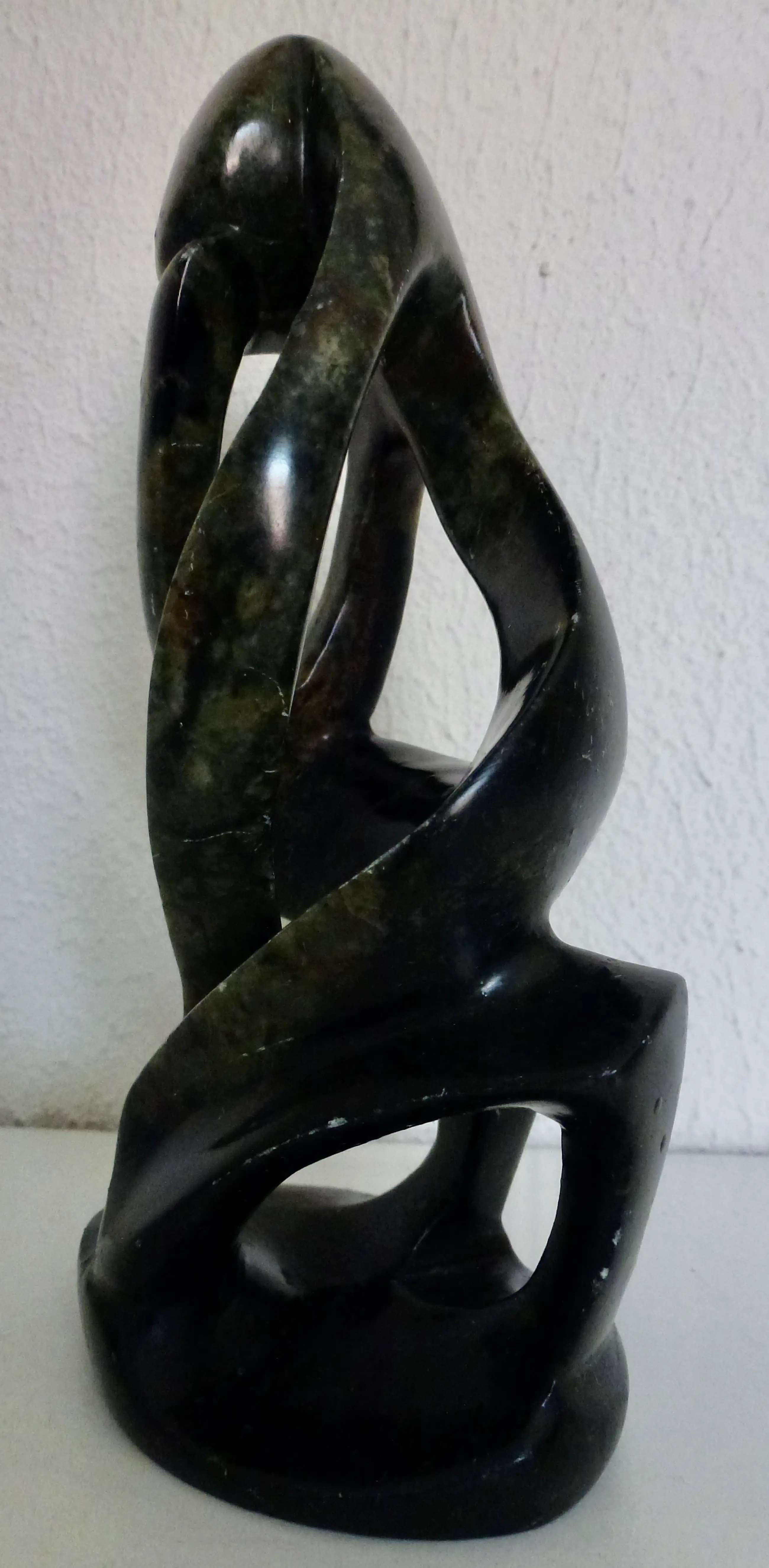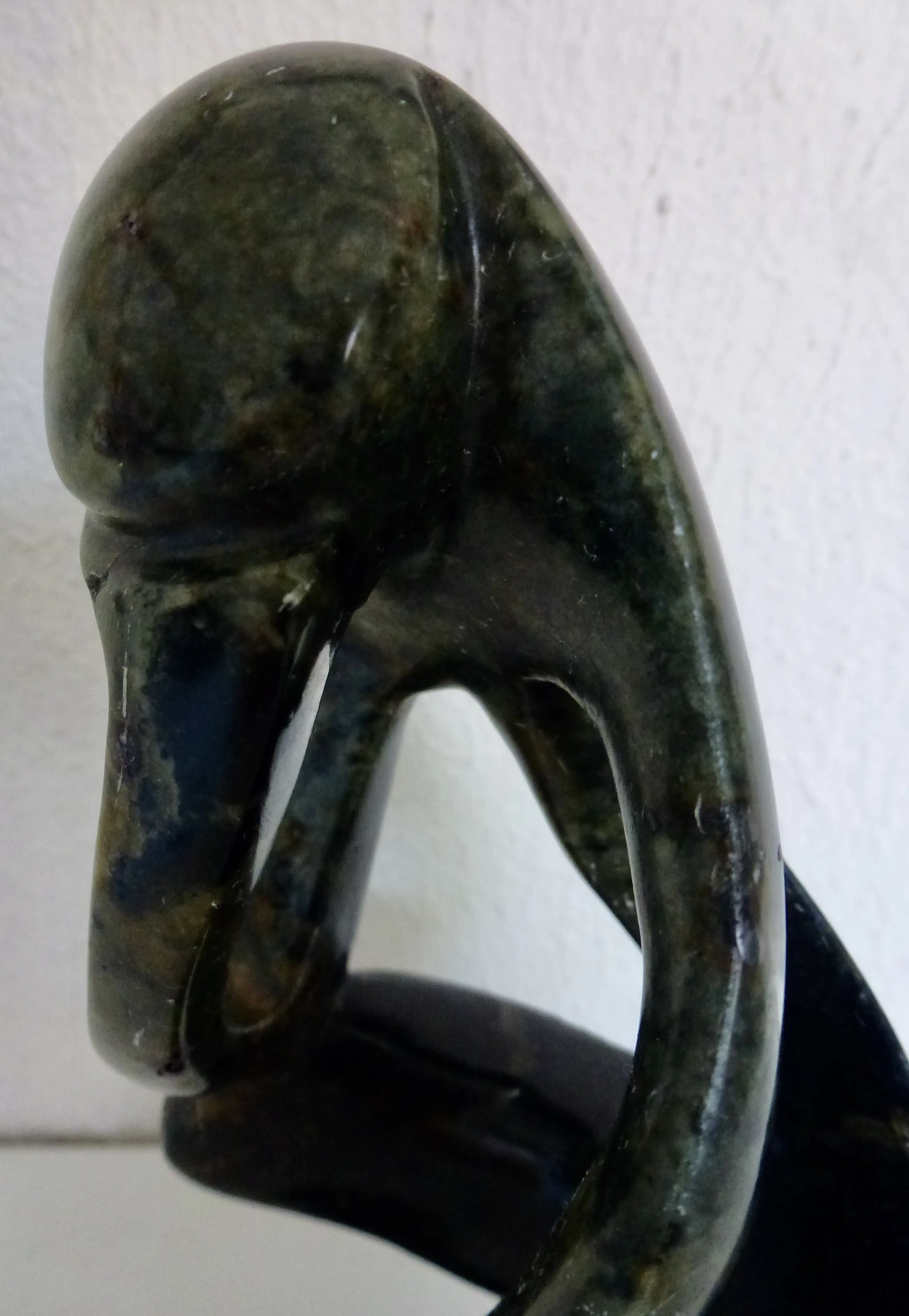 De sculptuur is zeer kwetsbaar, maar alle witte stipjes zijn geen beschadigingen, het zit in de kleur van het steen.