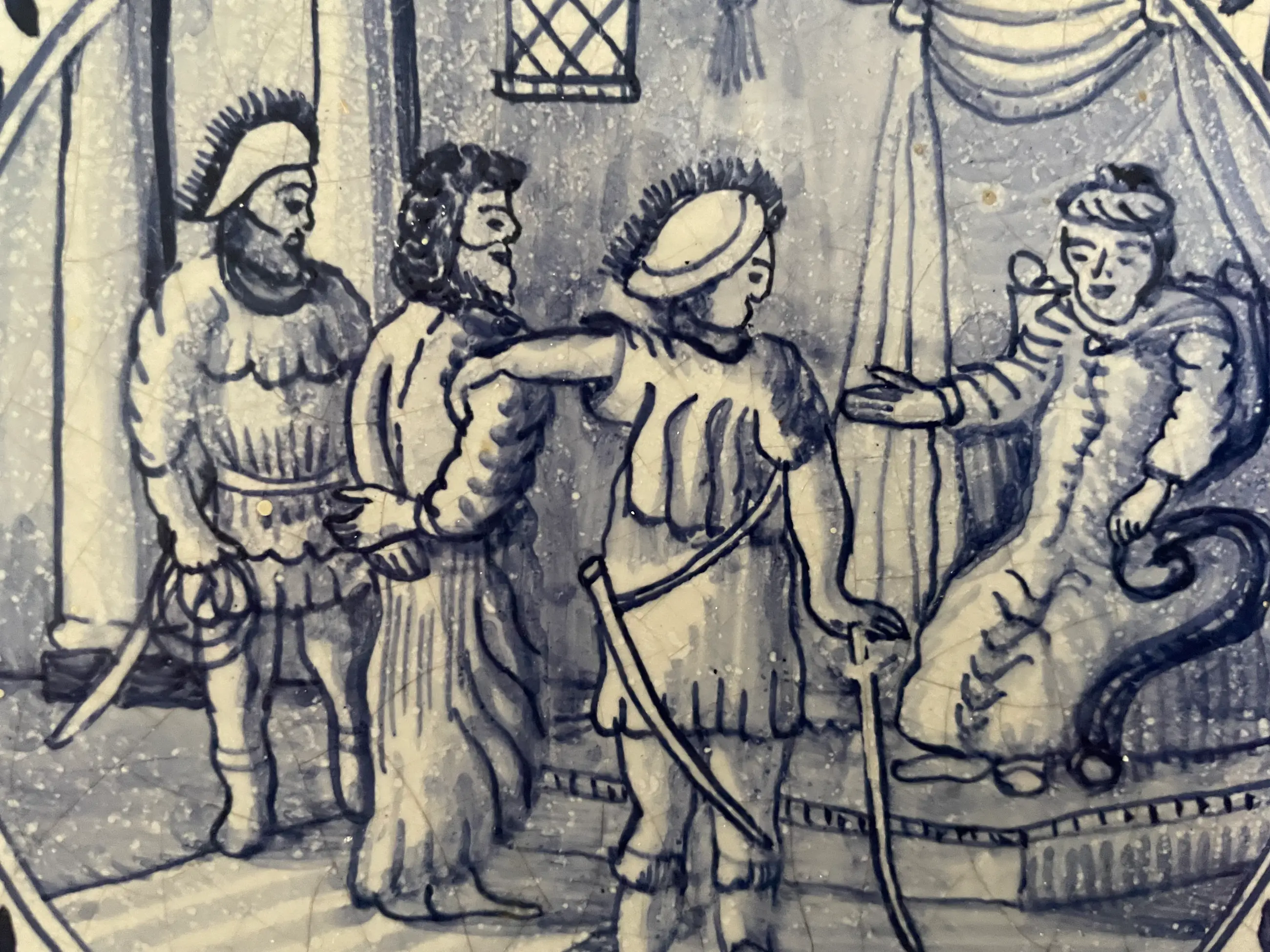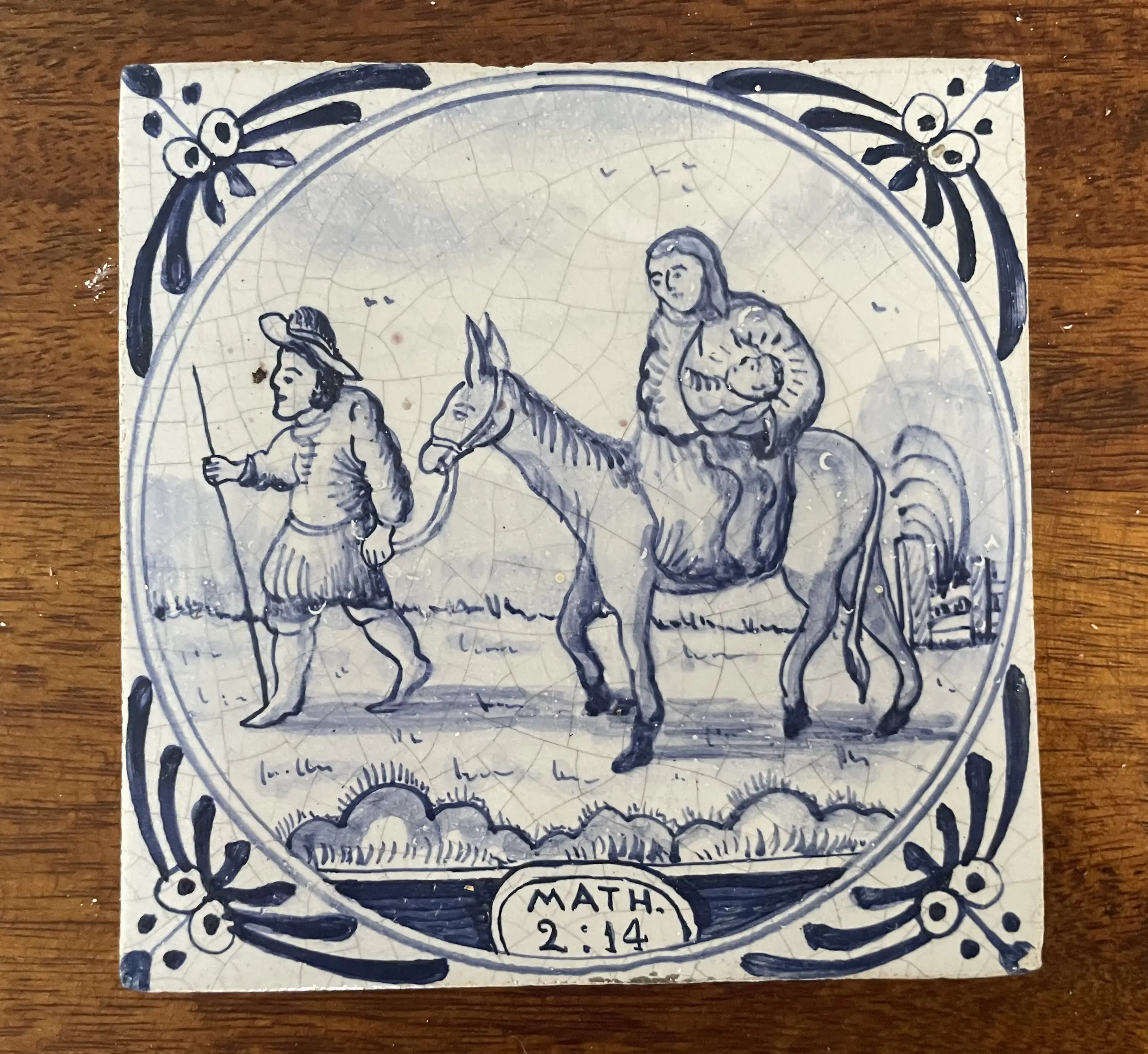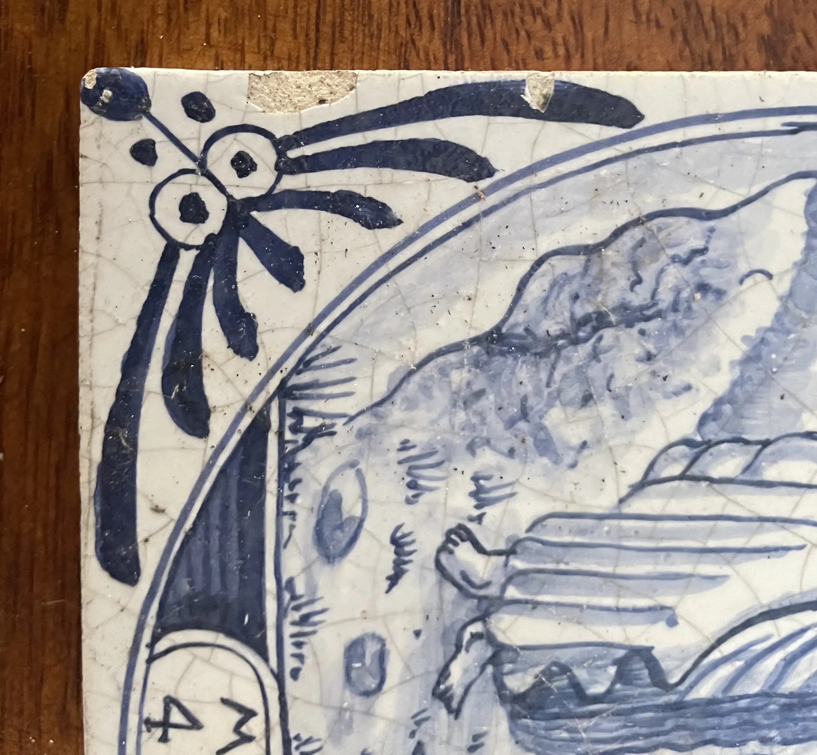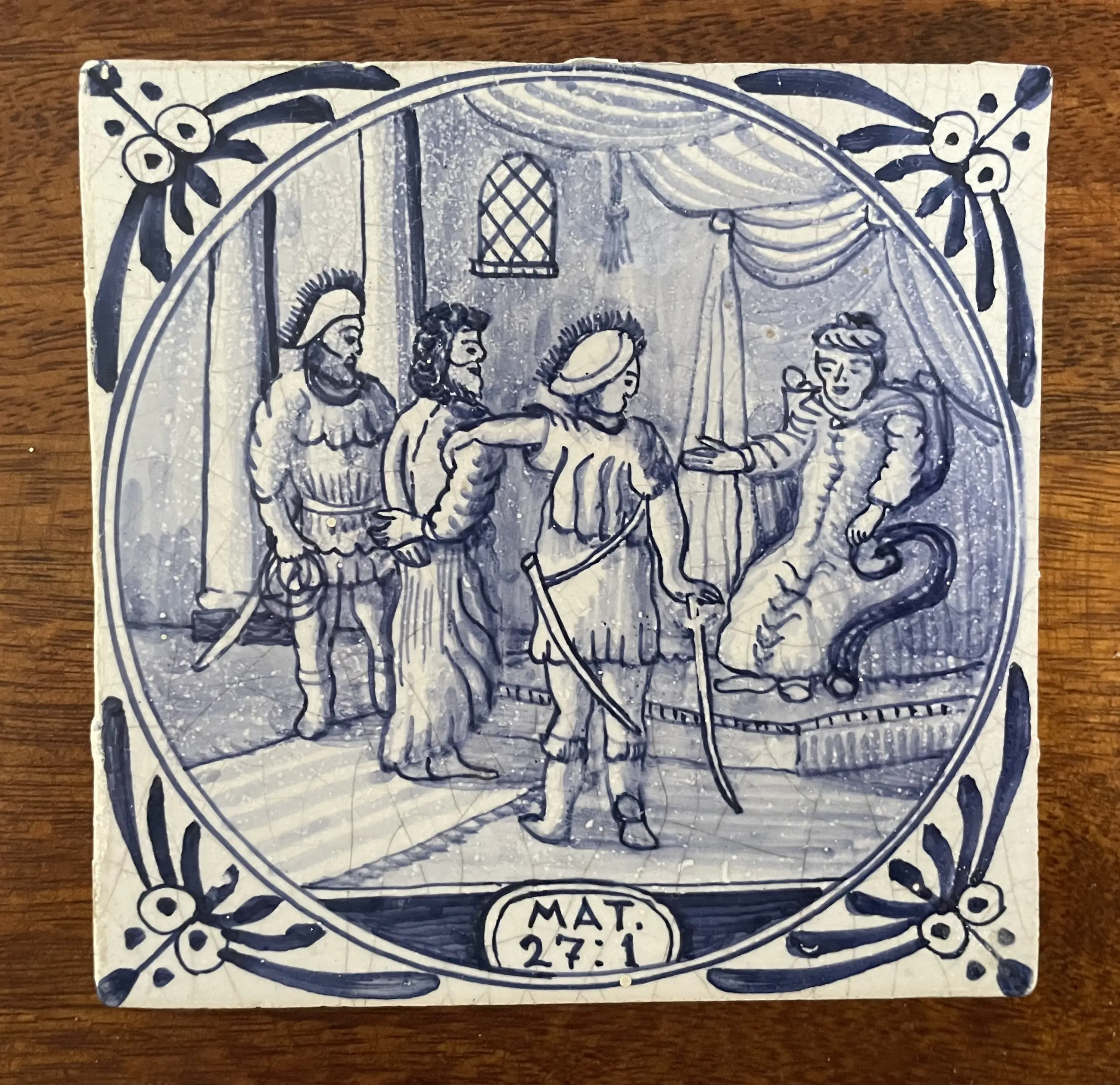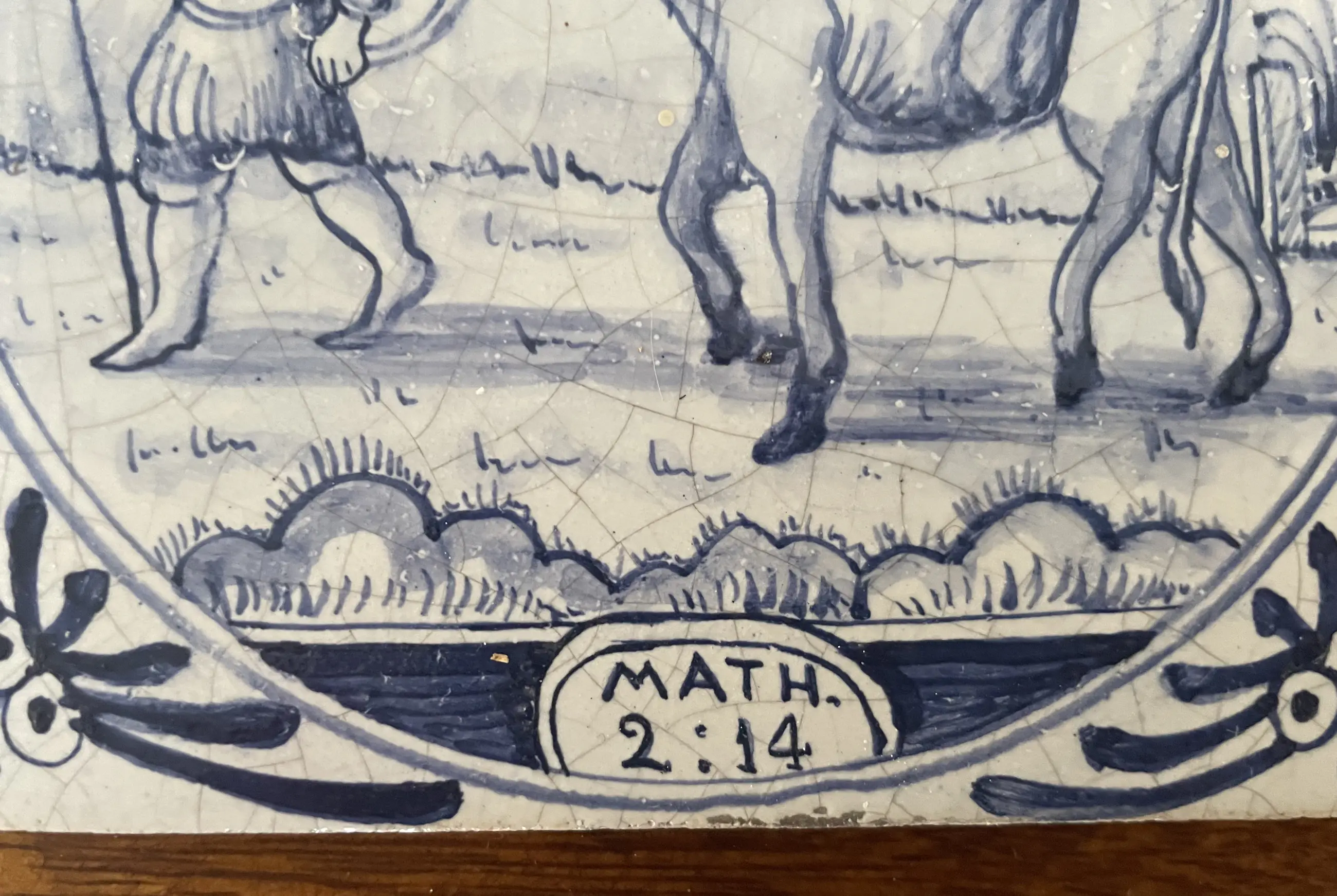 Set van 11 blauw witte handbeschilderde wandtegels met Bijbelse voorstelling uit het boek Mattheus. De tegels zijn afkomstig uit een voormalig kerkgebouw (kerkje) van het eiland Wieringerwerf. In goede conditie, sommige hebben een klein chipje.