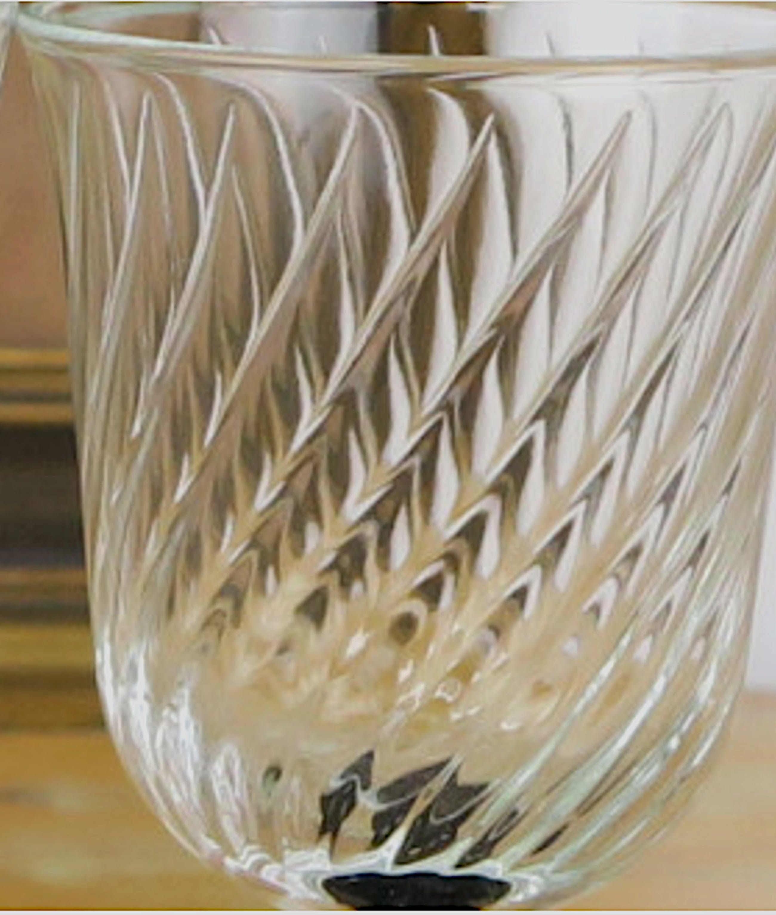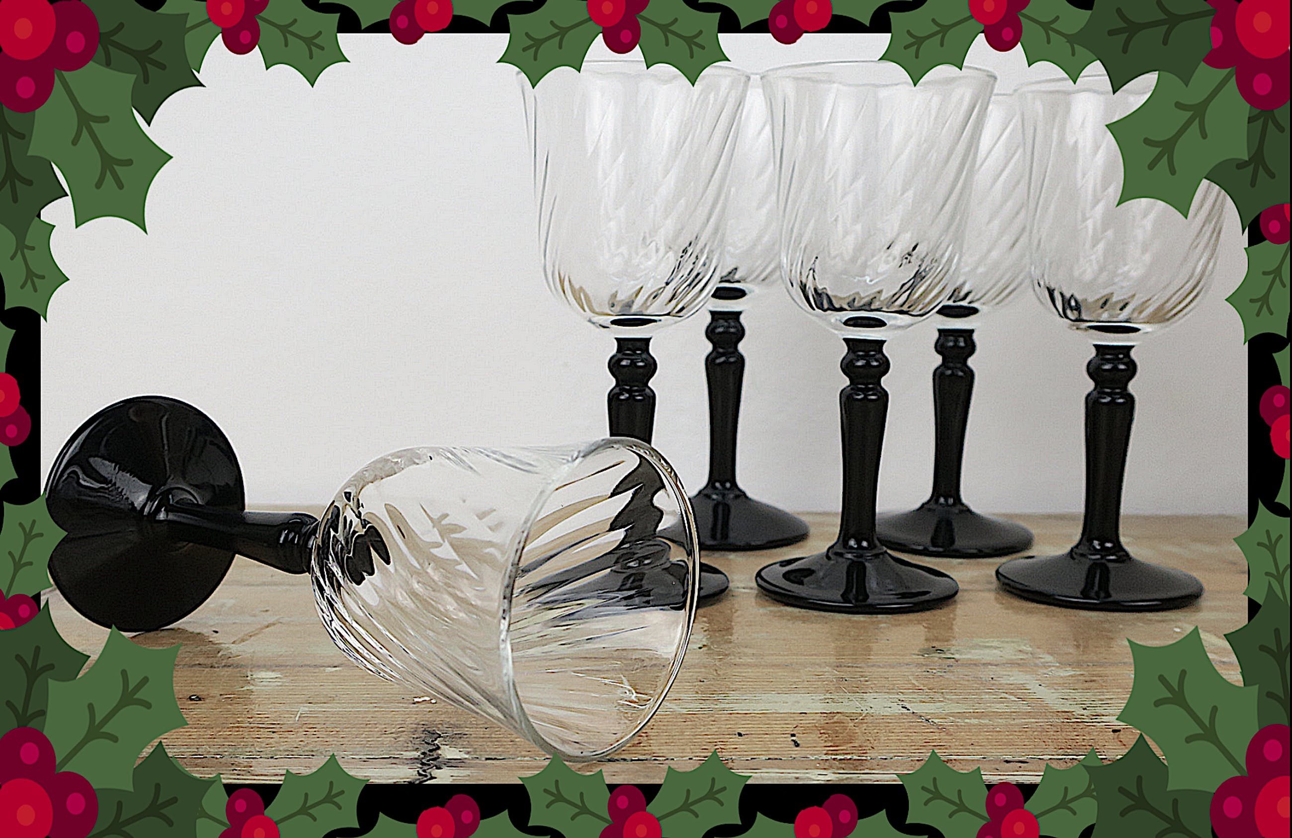 Op zwarte glazen voet en steel Bijzondere kelk met 'swirl' Conditie: uitstekend, gecontroleerd en gegarandeerd zonder schade of aanslag