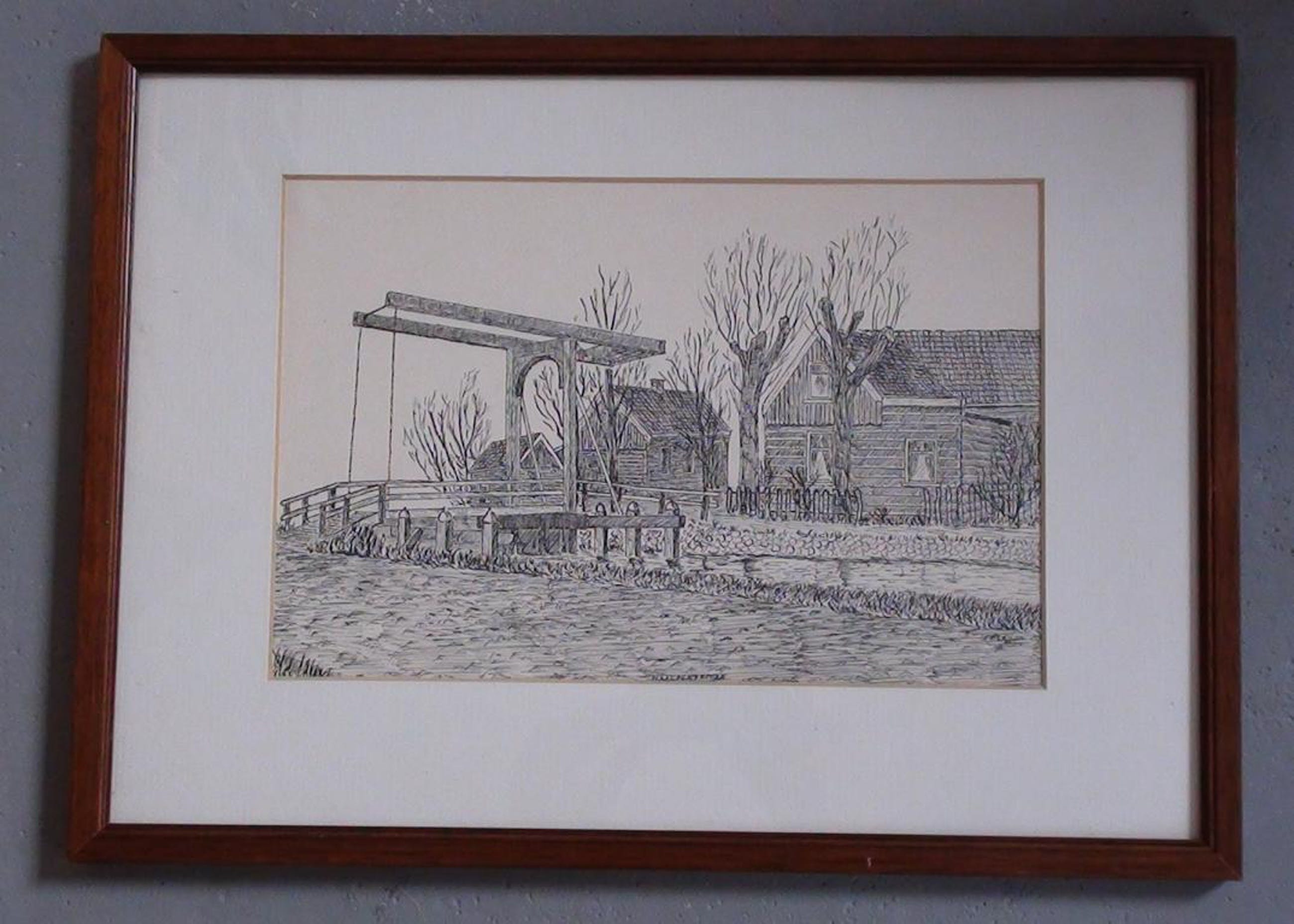 Netjes ingelijst achter passe-partout door 't Kwassie Zaandam. Zowel tekening als inlijsting zijn in prima conditie.