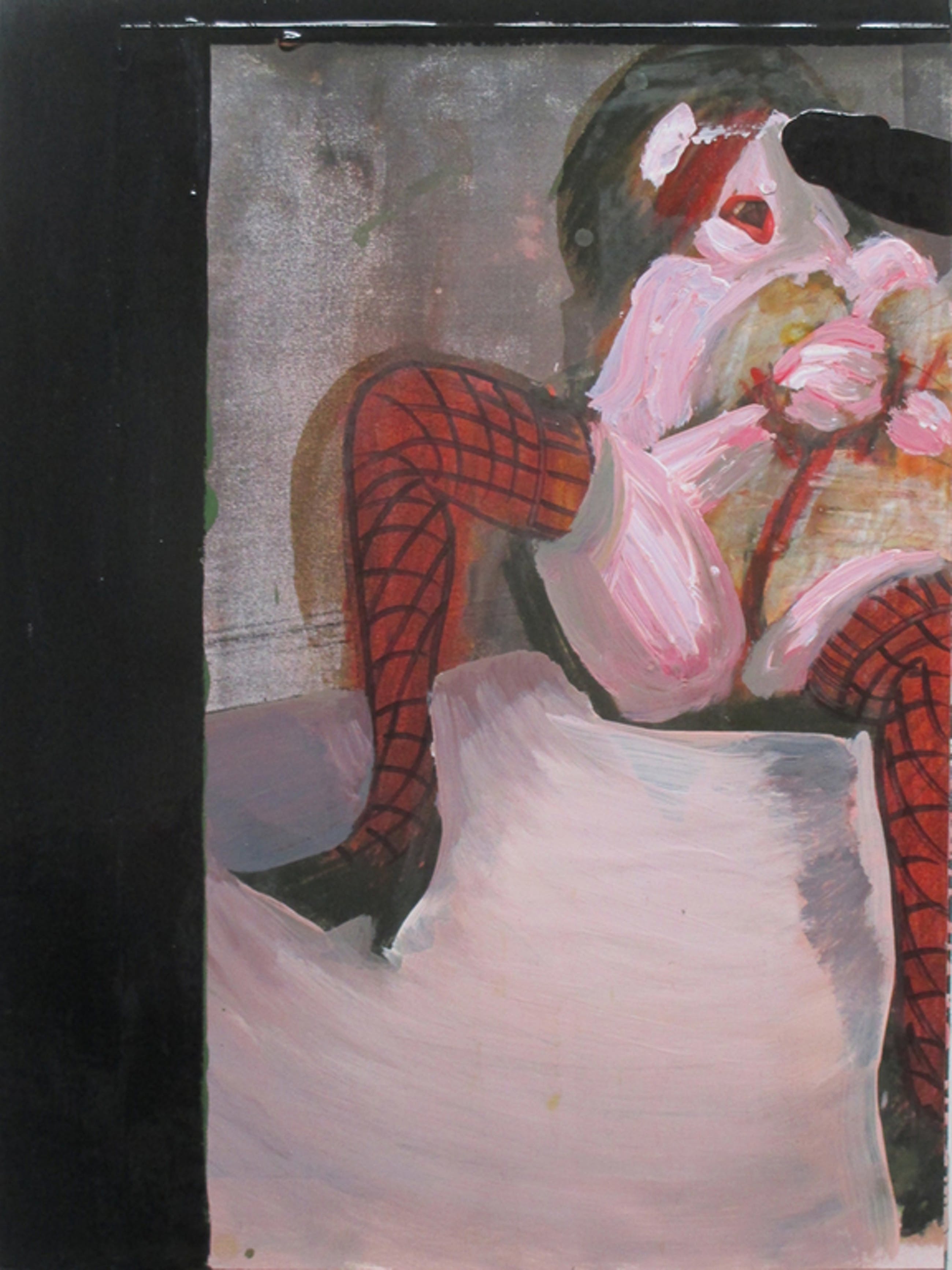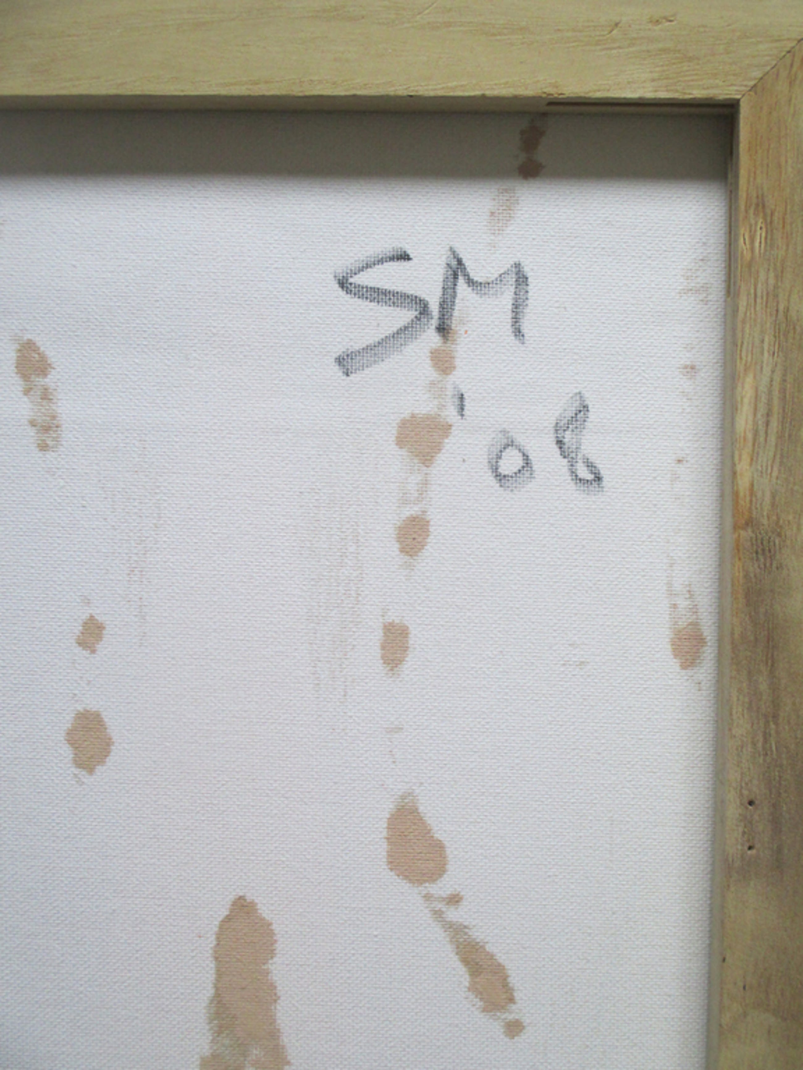 Drie schilderijen in een gemengde techniek op papier (pastelkrijt, vernis, lakverf, acrylverf) bevestigd op doek.