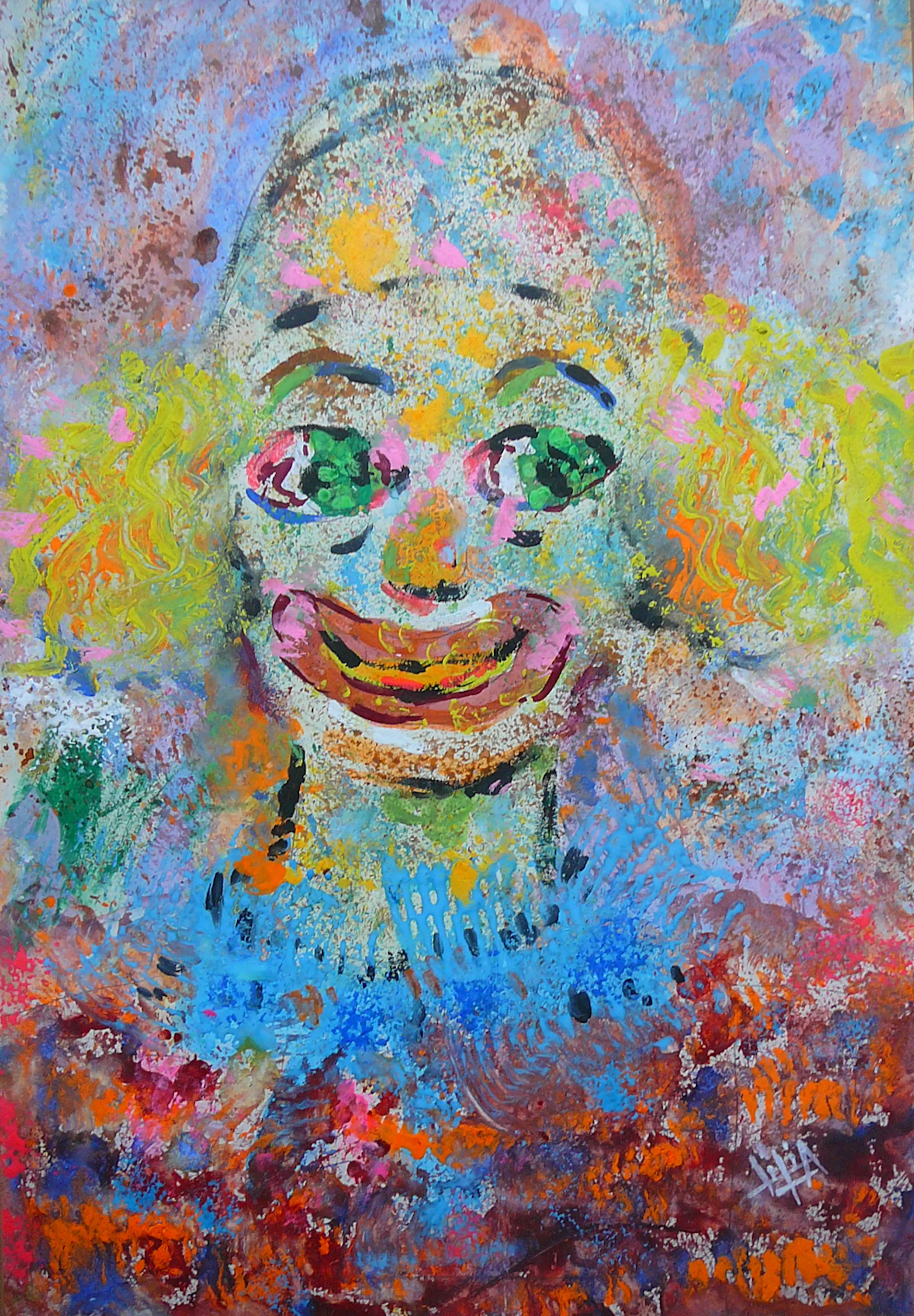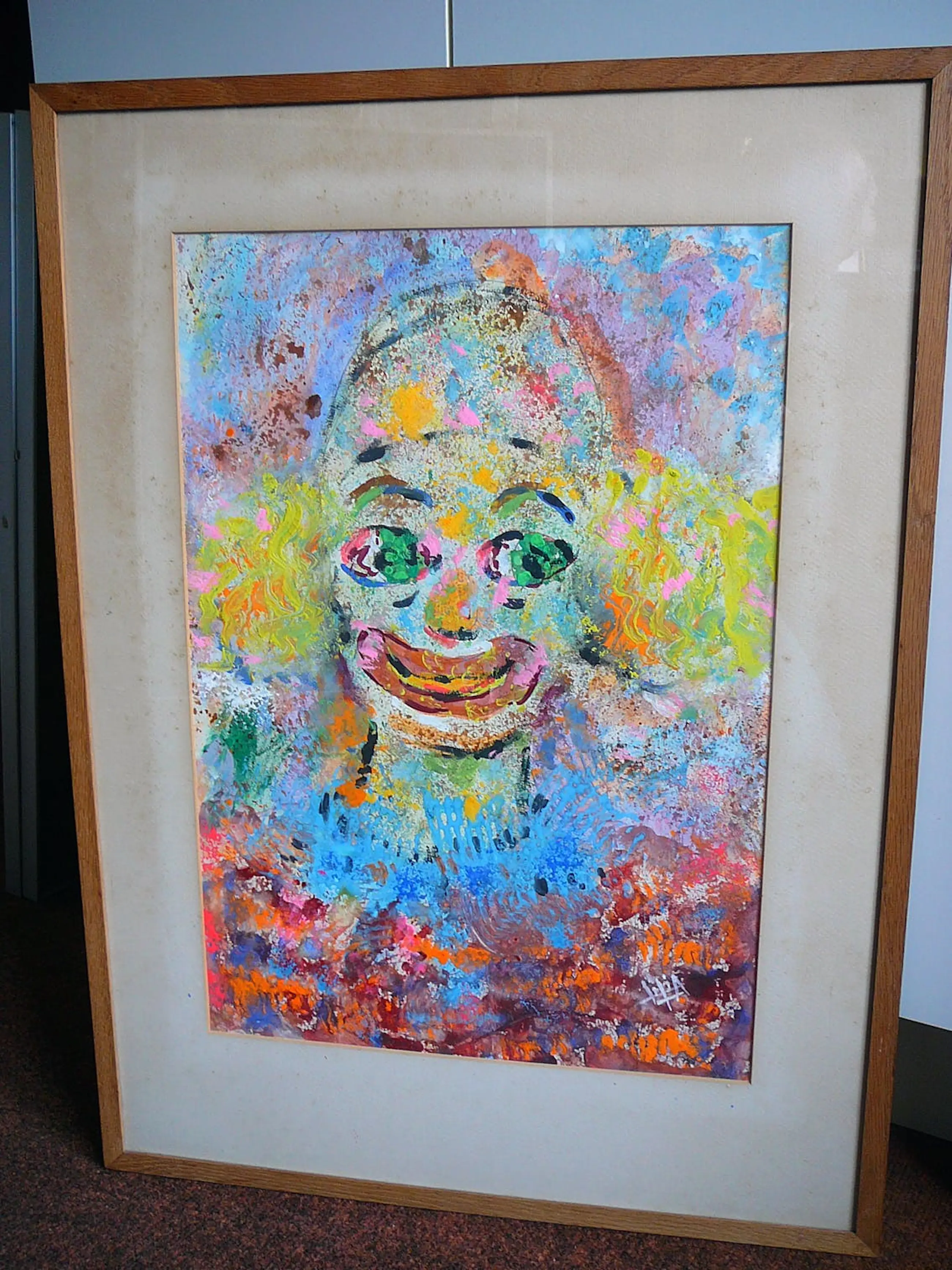 Kleurrijk portret van een clown. Gesigneerd rechtsonder in de gouache. Herkomst galerie JAS te Utrecht Het werk verkeert in zeer goede conditie, incl de fluoricerende kleurstelling, passepartout verkleurd door de jaren heen. Datering circa 1965.