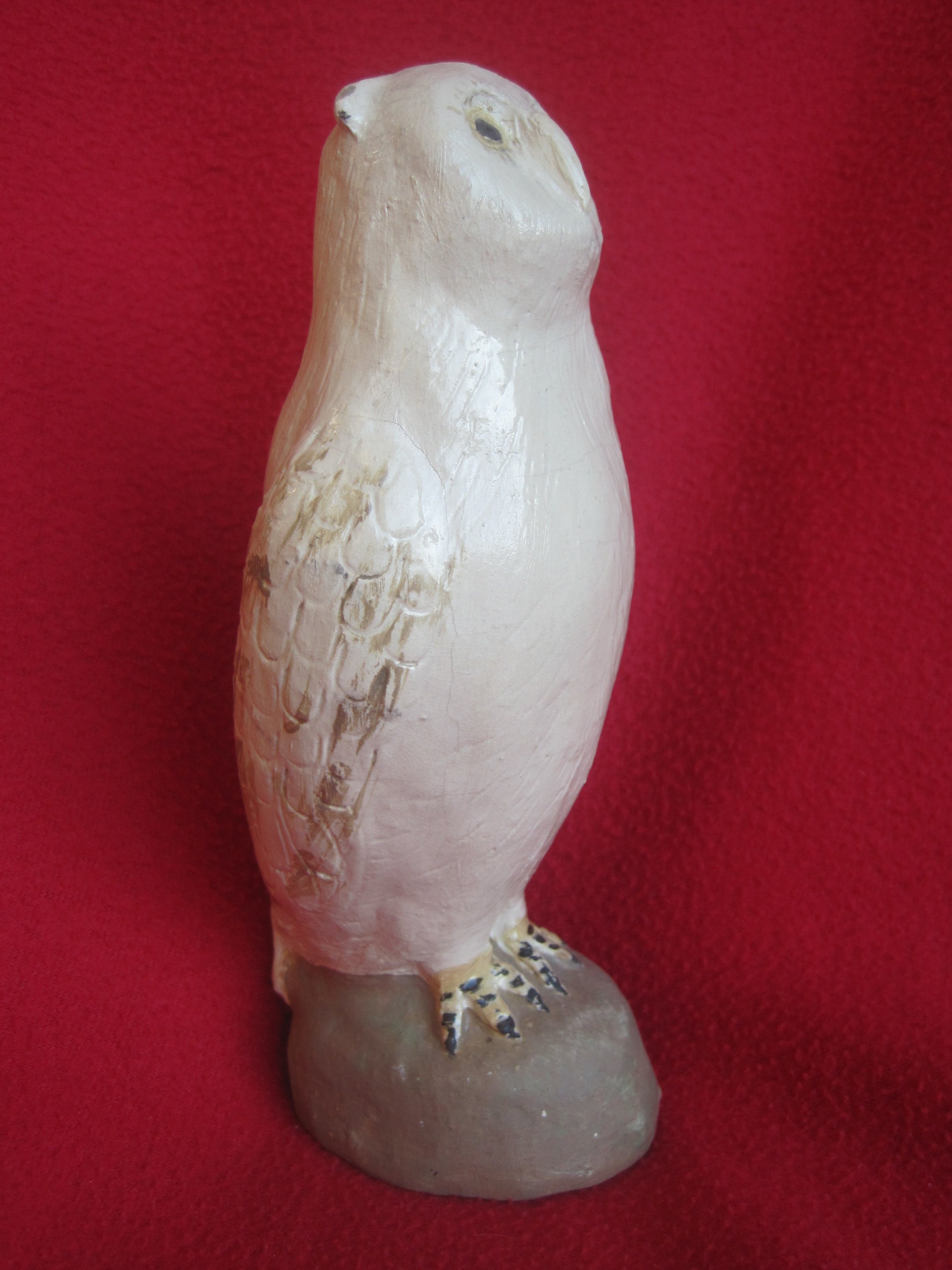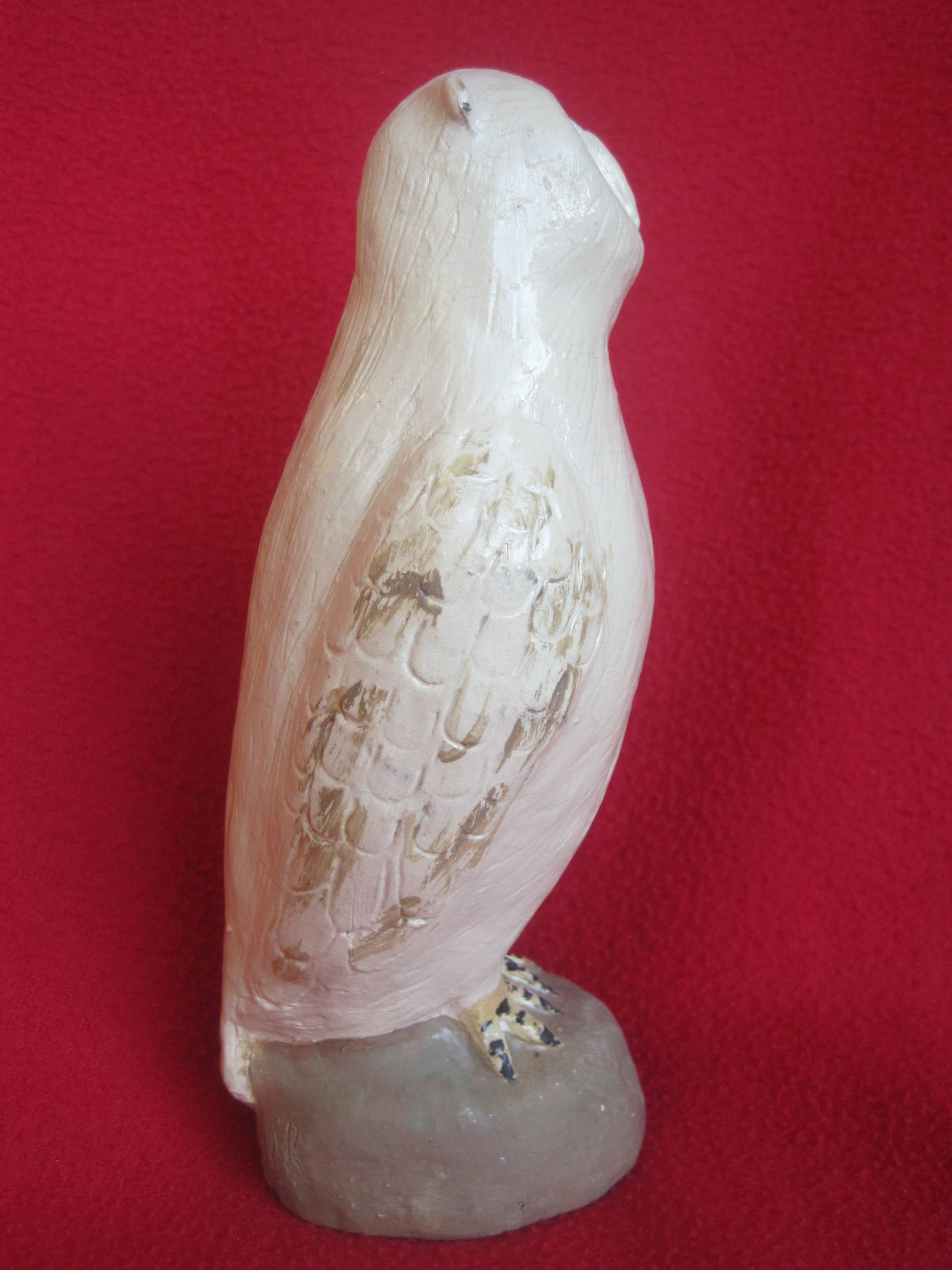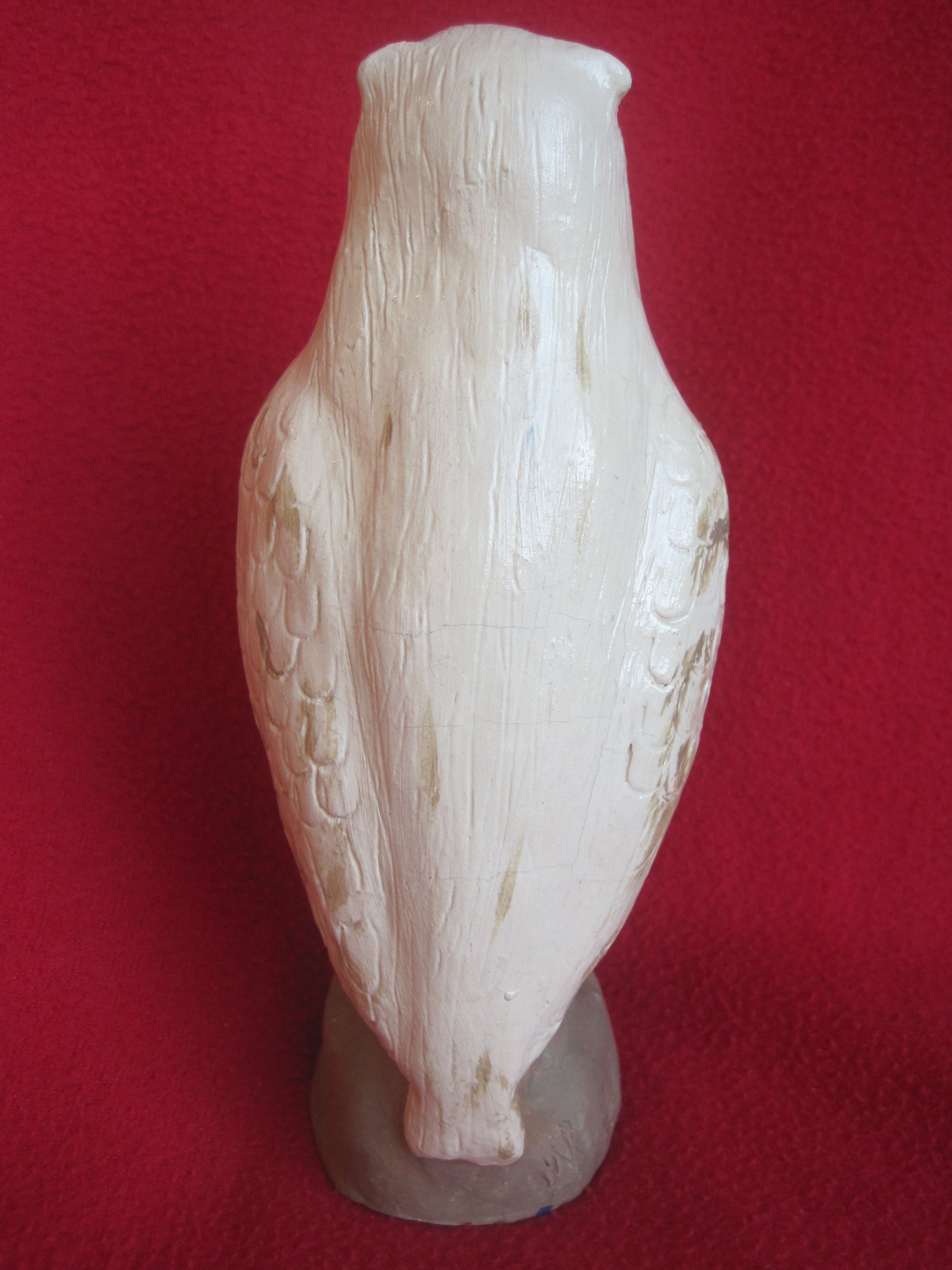 Een prachtig en natuurgetrouw beeldje van een sneeuw uil. Het beeld is gemaakt van klei en daarna beschilderd. Het beeldje is heel gaaf, geen beschadigingen. Aan de achterkant ziet u heel fijne haarlijntjes. Het is gesigneerd WR. Aan de onderkant ziet u dat het het professioneel is gemaakt, er zitten stalen pennen in.