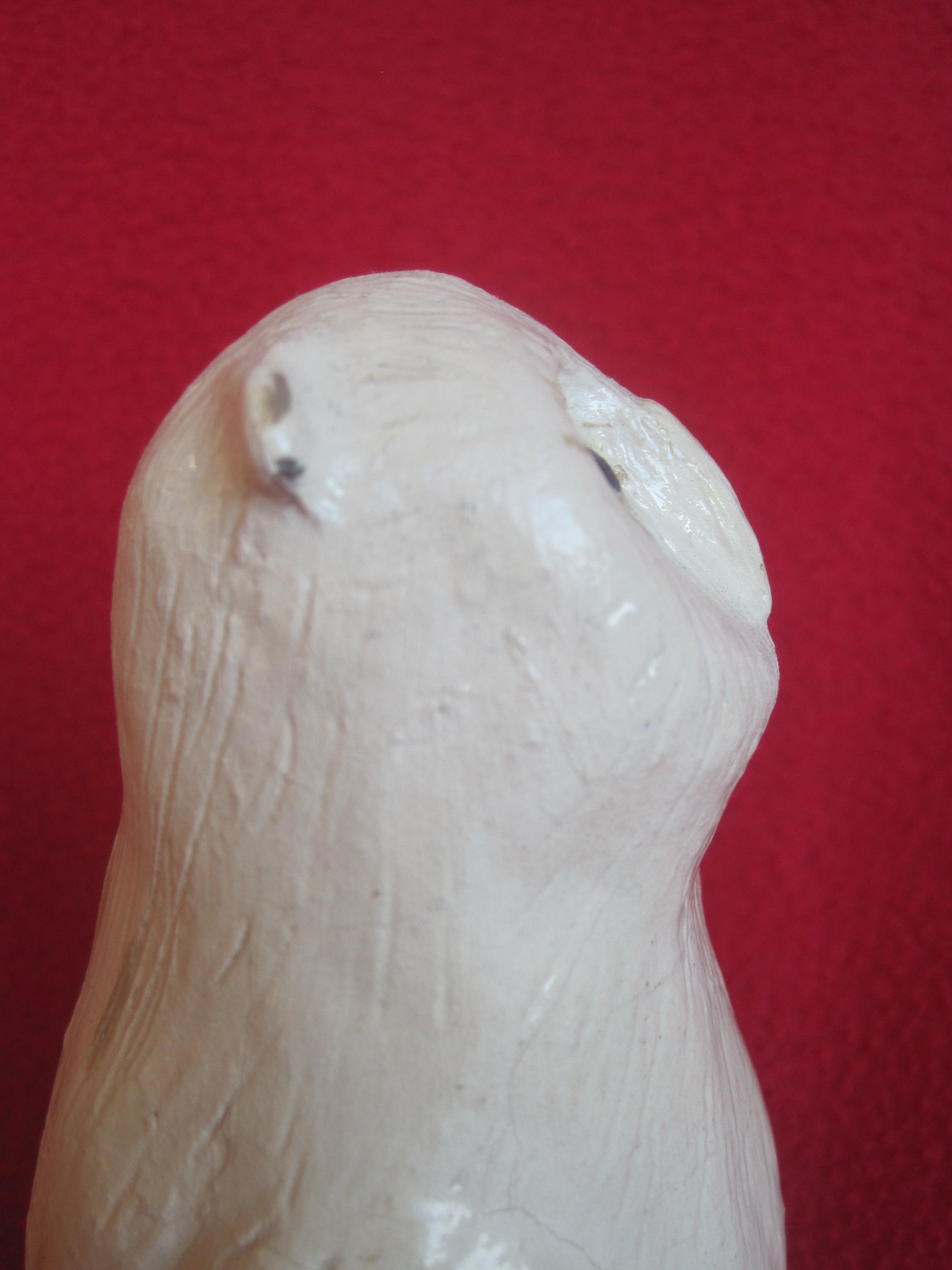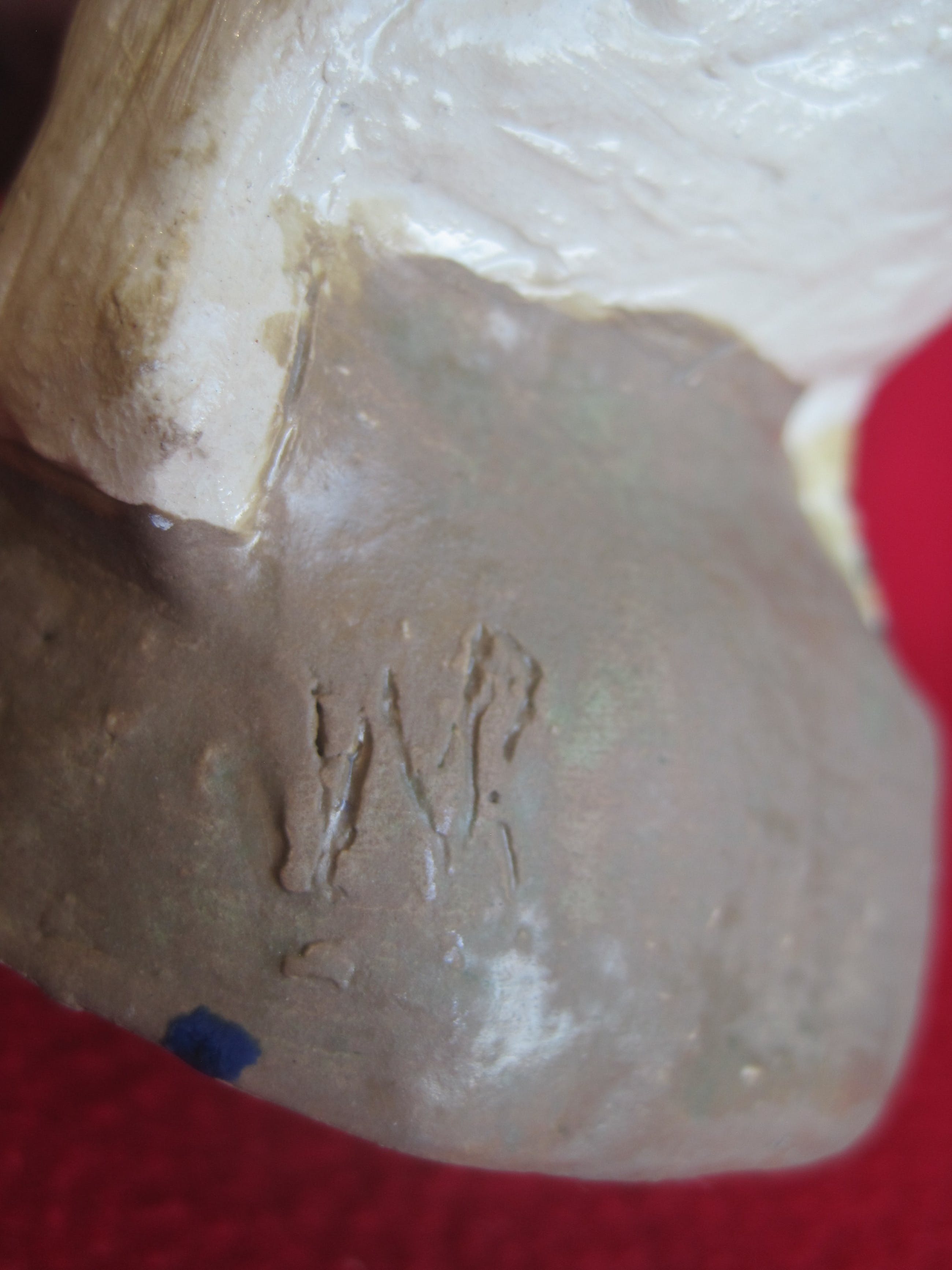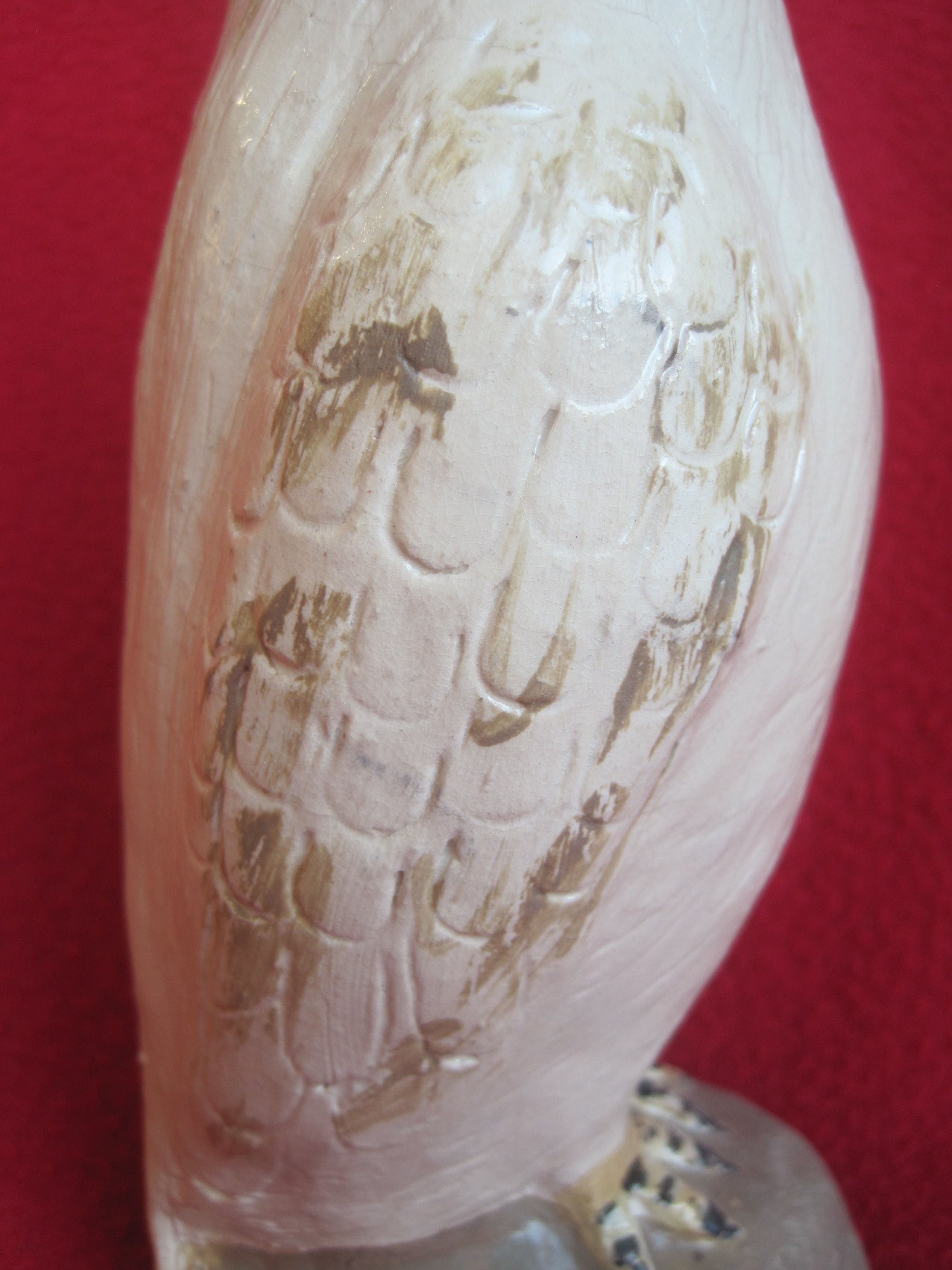 Een prachtig en natuurgetrouw beeldje van een sneeuw uil. Het beeld is gemaakt van klei en daarna beschilderd. Het beeldje is heel gaaf, geen beschadigingen. Aan de achterkant ziet u heel fijne haarlijntjes. Het is gesigneerd WR. Aan de onderkant ziet u dat het het professioneel is gemaakt, er zitten stalen pennen in.