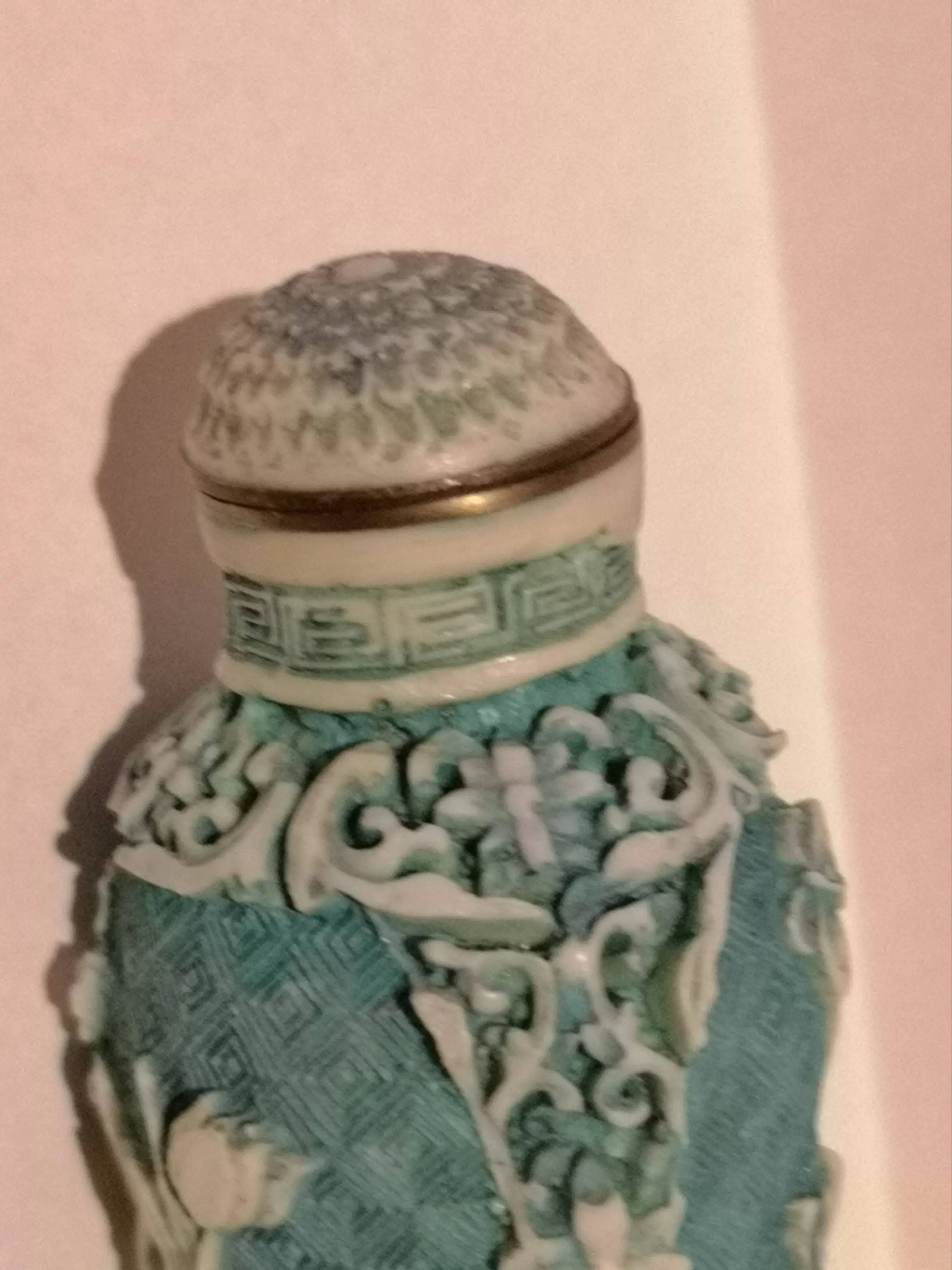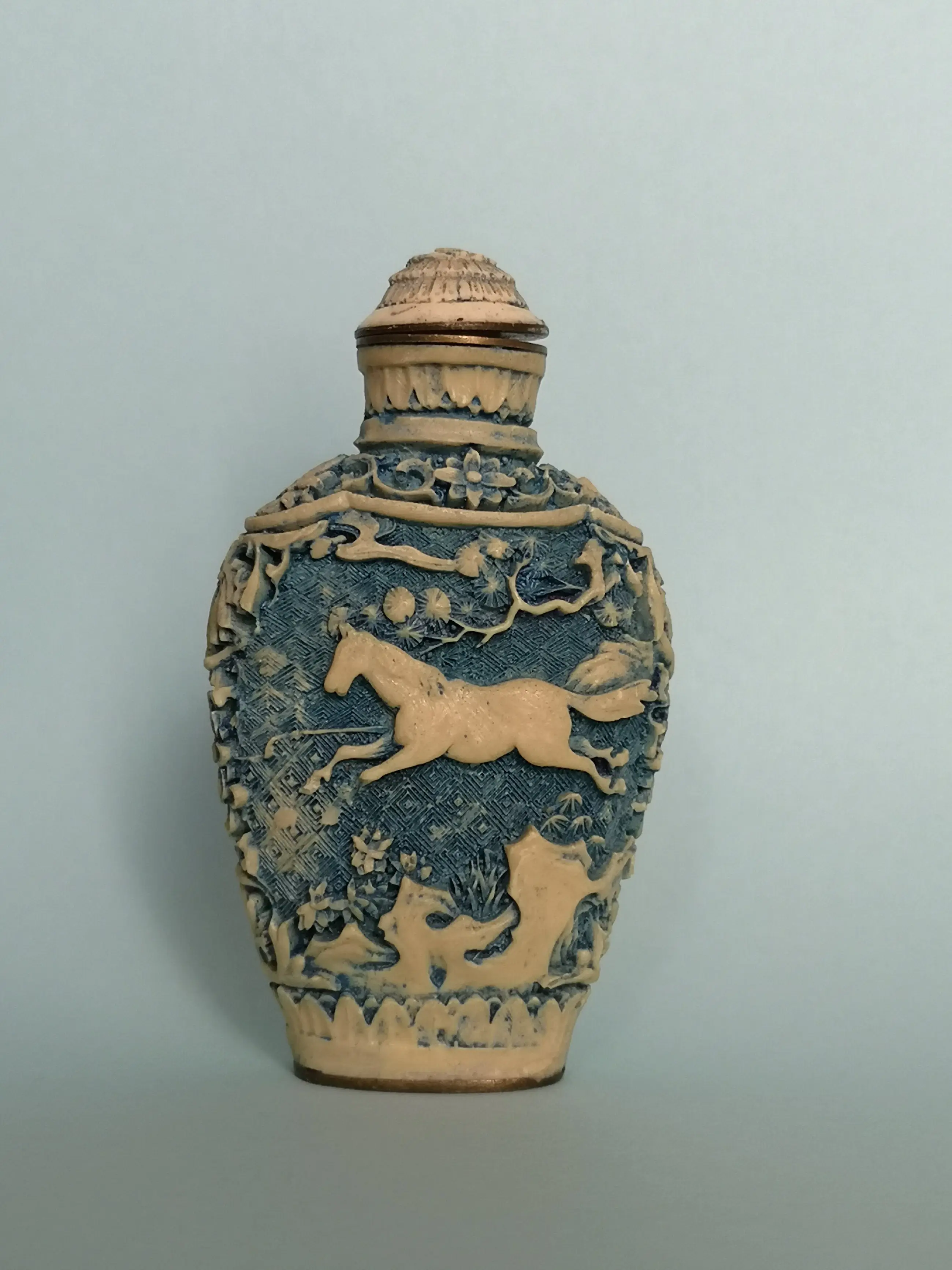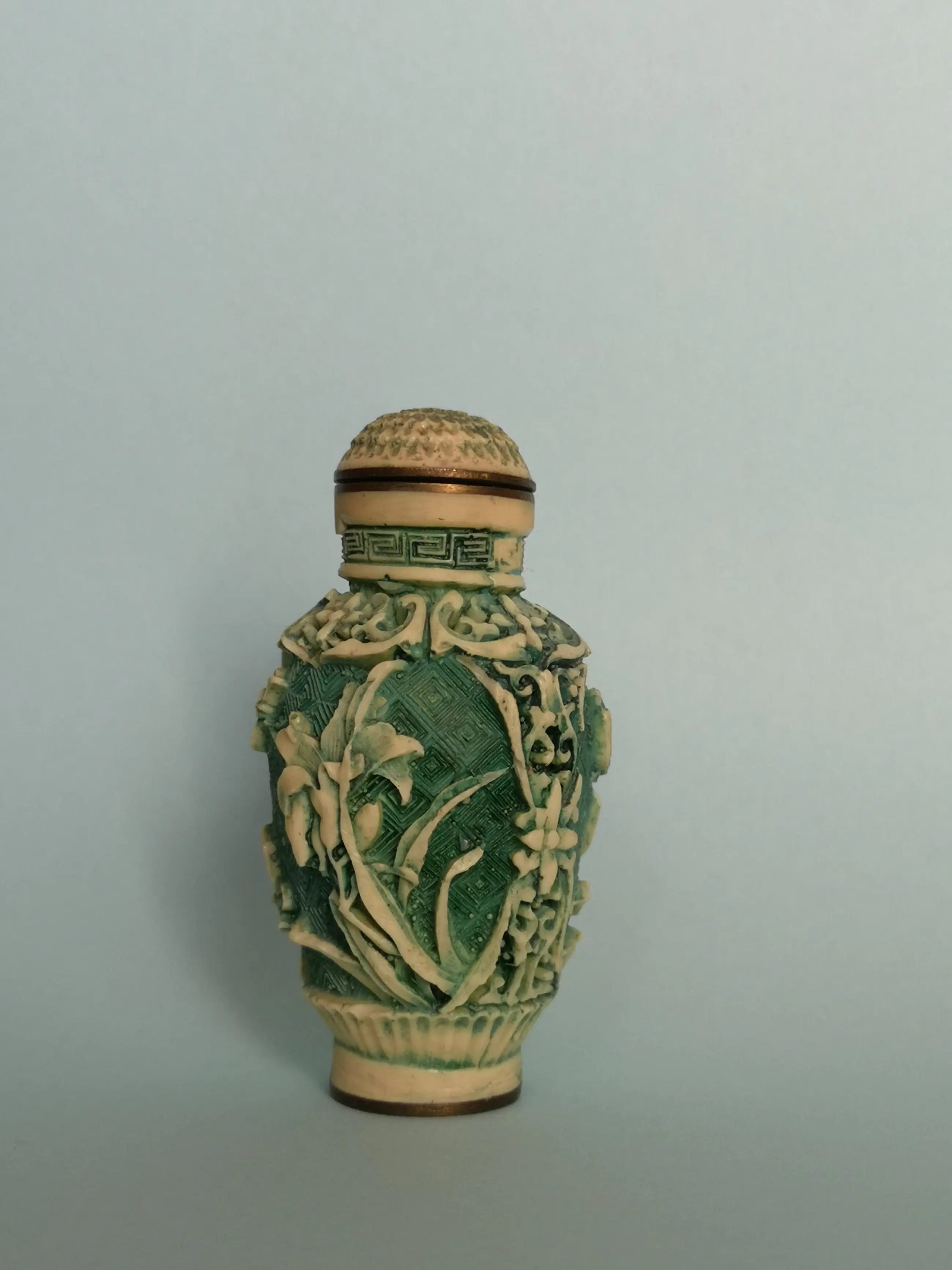Aangeboden word een snuifflesje, Bekijk goed de foto's. Let op de jarenlange slijtage die het oppervlak van dit object tot een zachte en luxueuze glans heeft gebracht. Aan de onderkant een vier merkenteken.