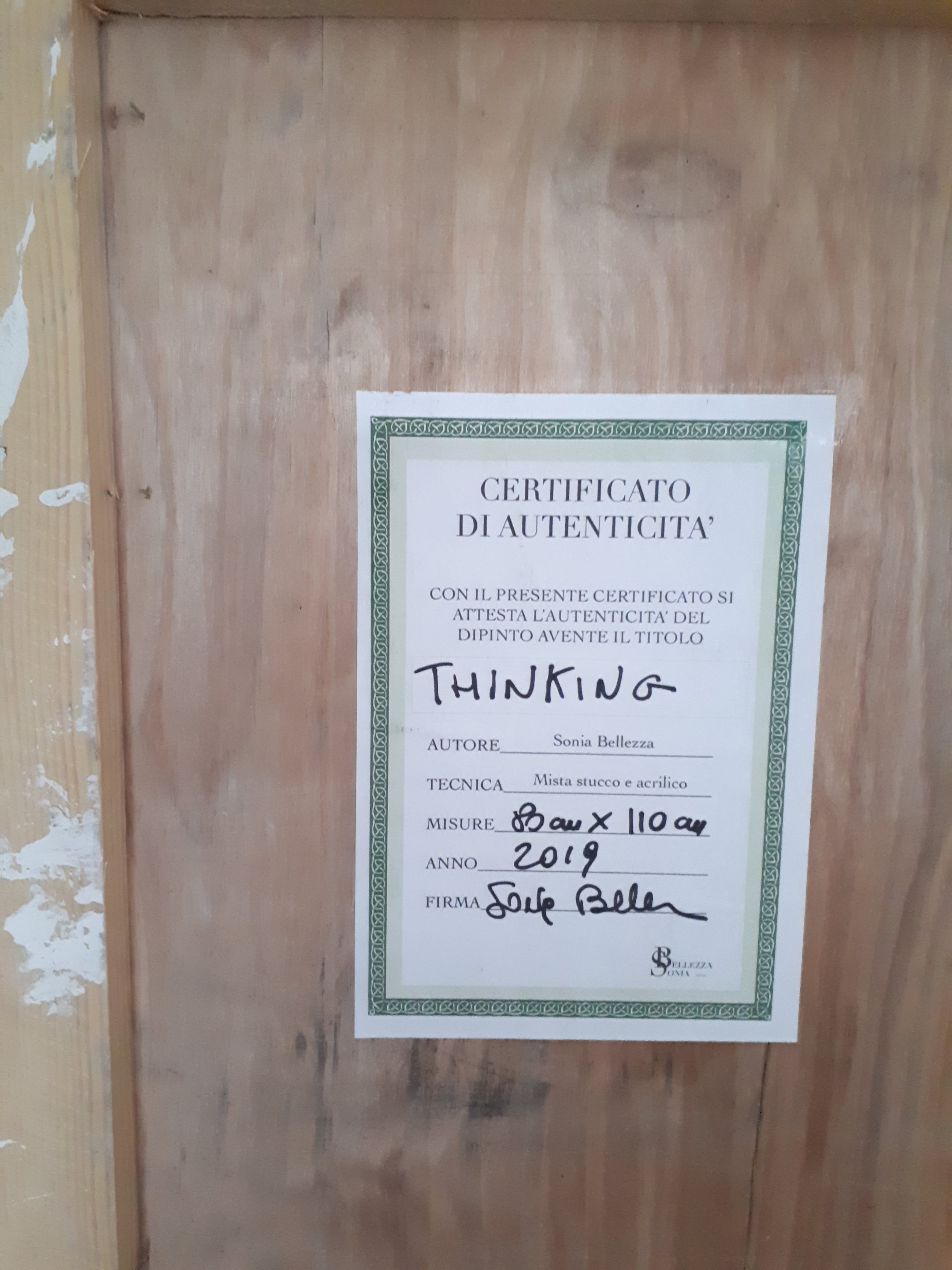 Uniek werk van de Italiaanse kunstenares Sonia Bellezza. Het is gemaakt in haar unieke techniek: menging van verf en stuc.