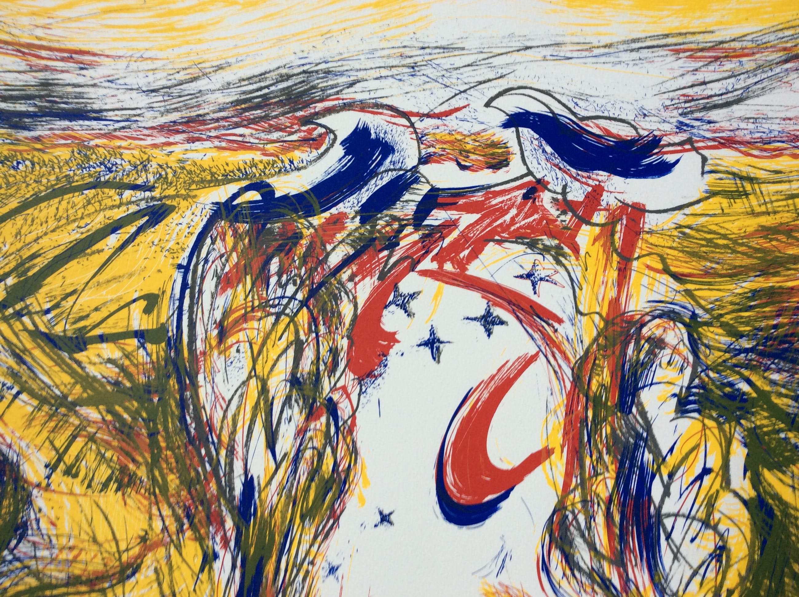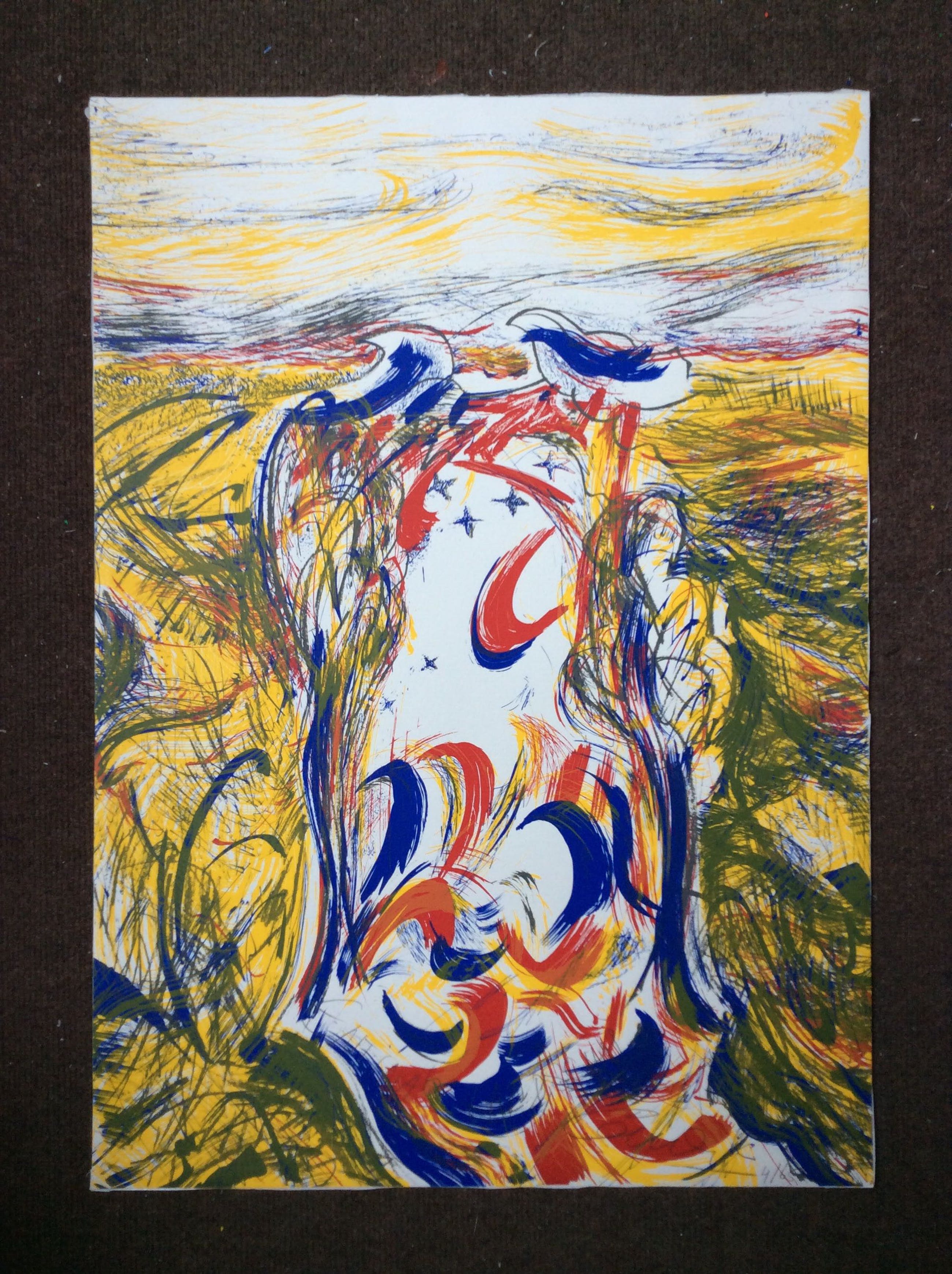 Lithografie van onbekende kunstenaar, getiteld in potlood: Entinas landschap. Gesigneerd r.o. Oplage 4/65. Formaat incl. 70 x 50 cm.
