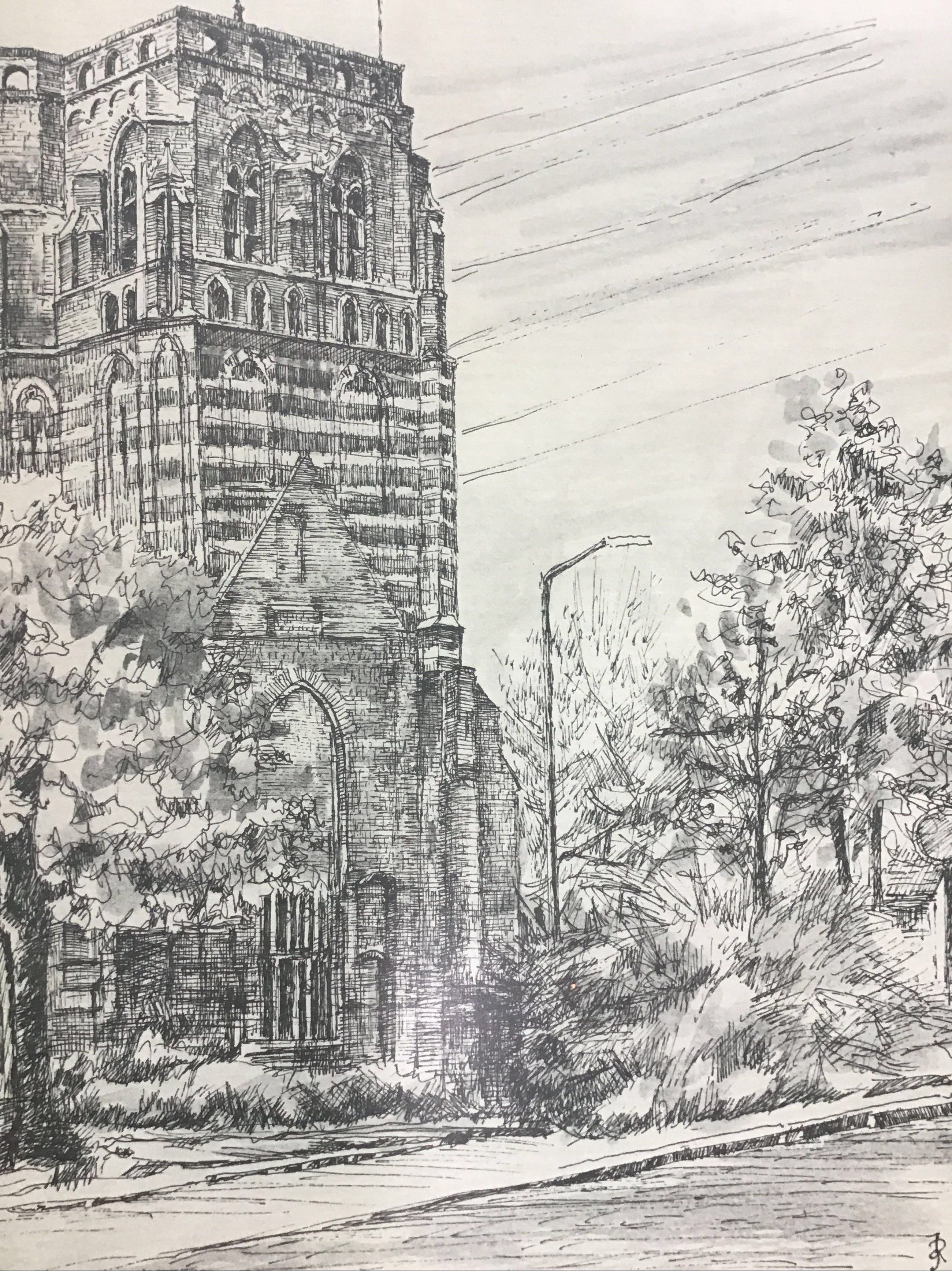 Gemengde techniek, pentekening/aquarel. Rechtsonder het jaartal en datum plus de initialen JR of RJ.