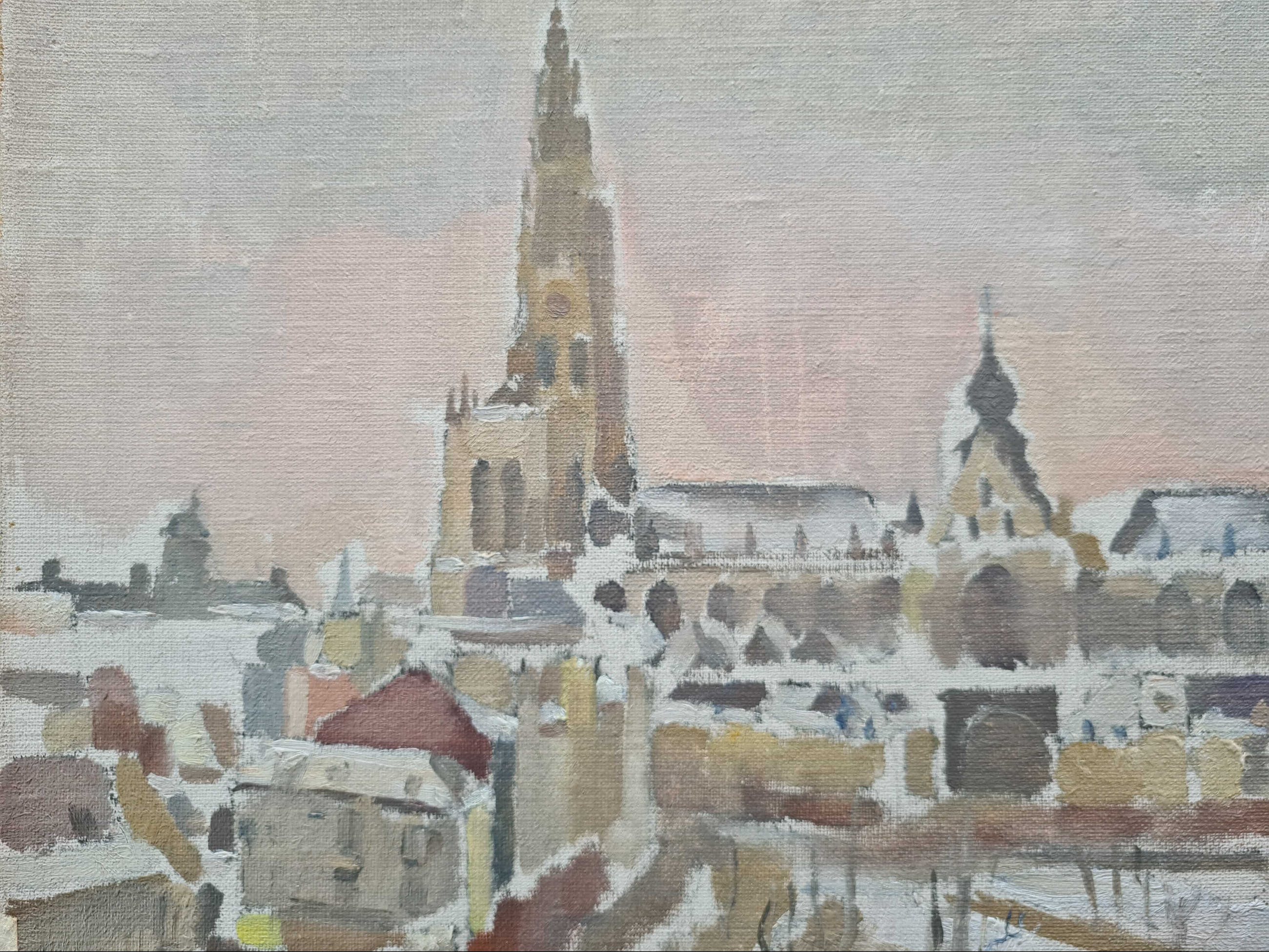 Onbekend - Stadsgezicht in de Sneeuw - Verkocht