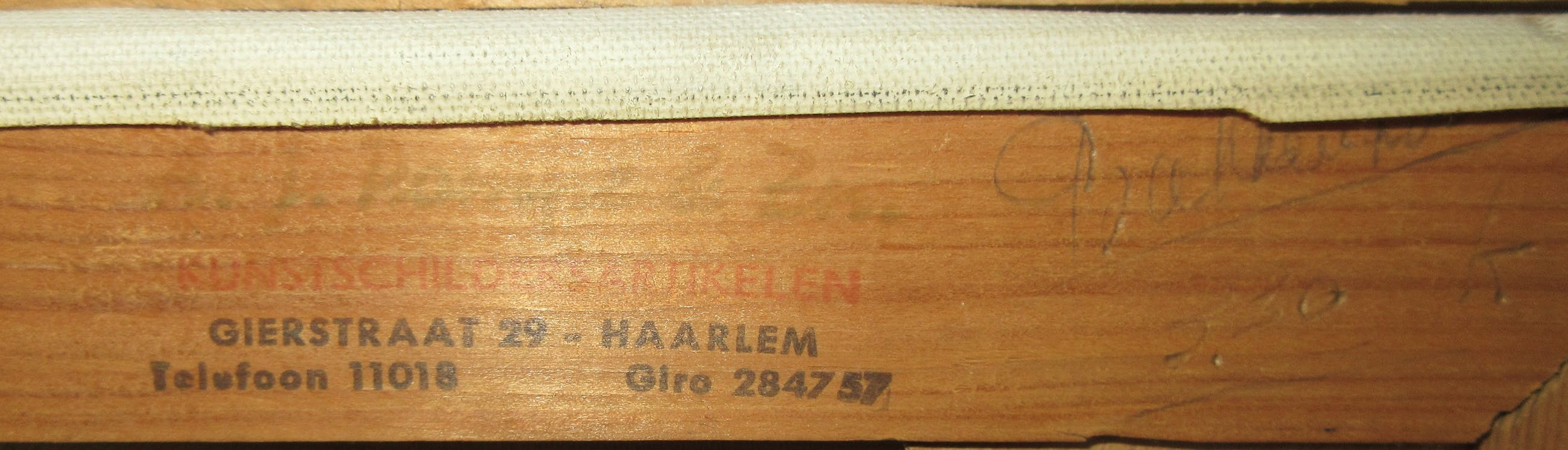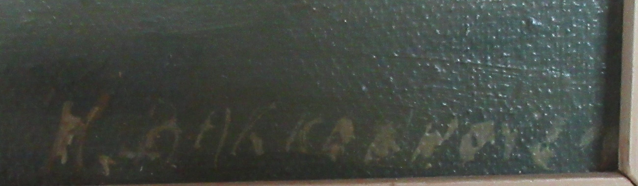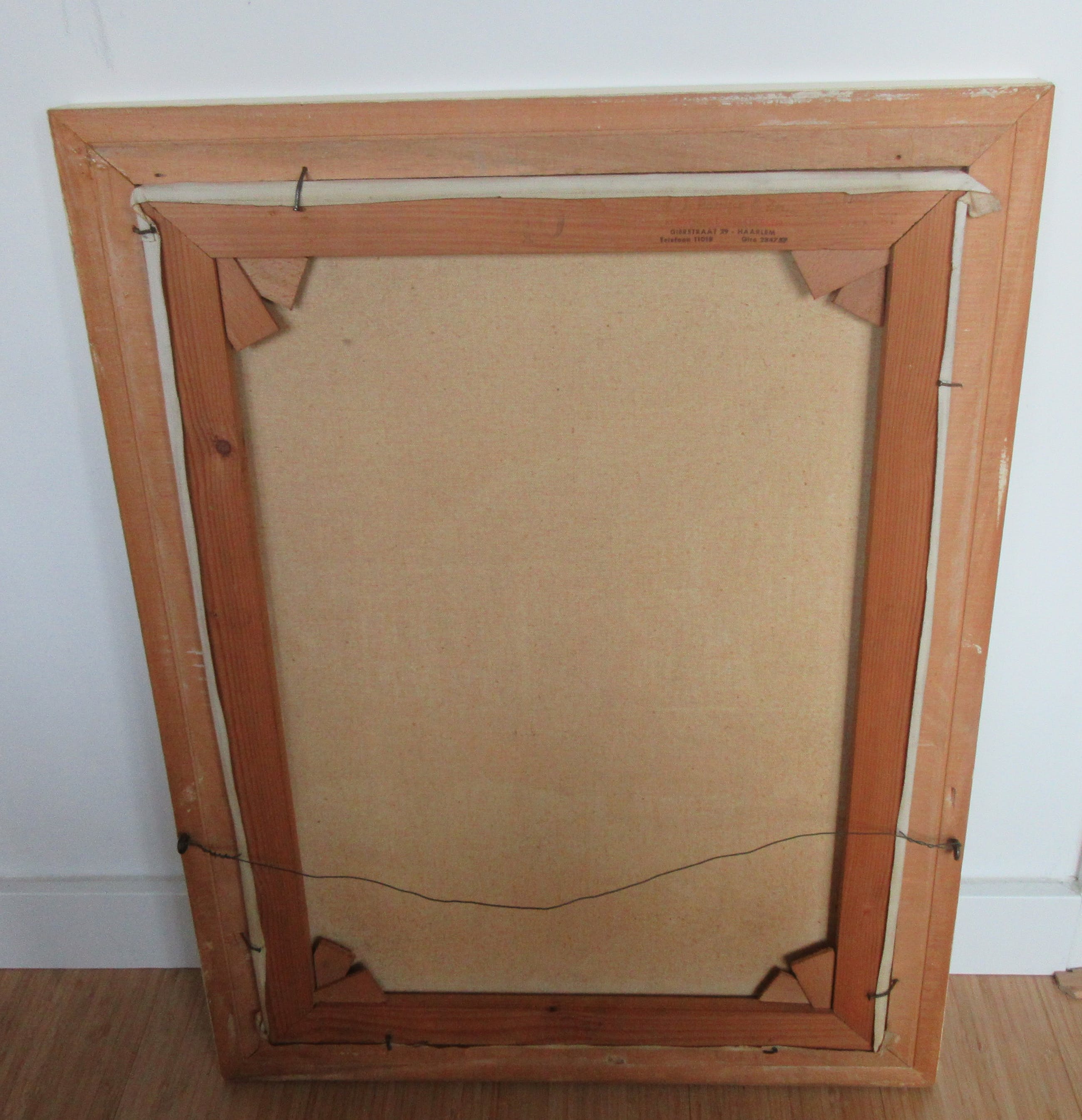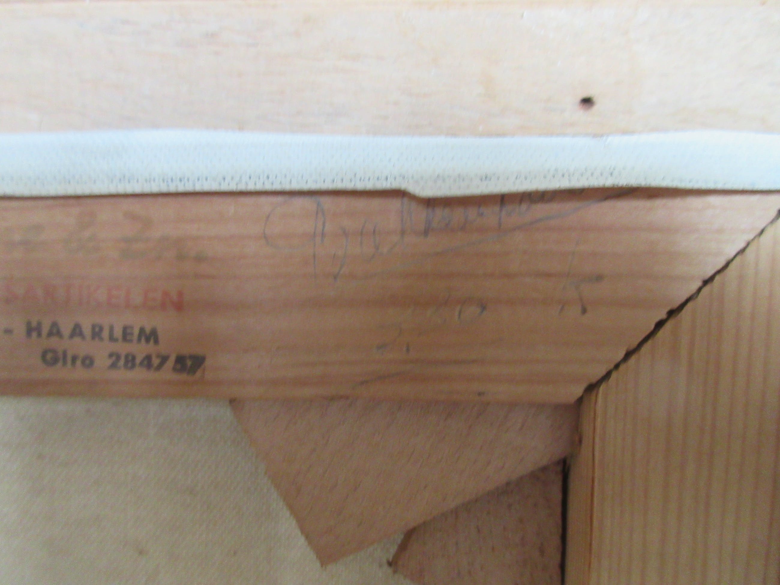 Stadsgezicht van een onbekende Hollandse stad, mogelijk Haarlem. Het schilderij is rechtsonder gesigneerd H. Bakkershaven of hoven, mij een onbekende kunstenaar. Het schilderij en de lijst zijn in zeer goede staat maar wel wat vuil, hebben in rokerige omgeving gehangen. Op de achterzijde de stempel van een oude kunsthandel uit Haarlem en met potlood nogmaals de naam van de kunstenaar. Vandaar de mogelijk verwijzing naar de stad Haarlem.