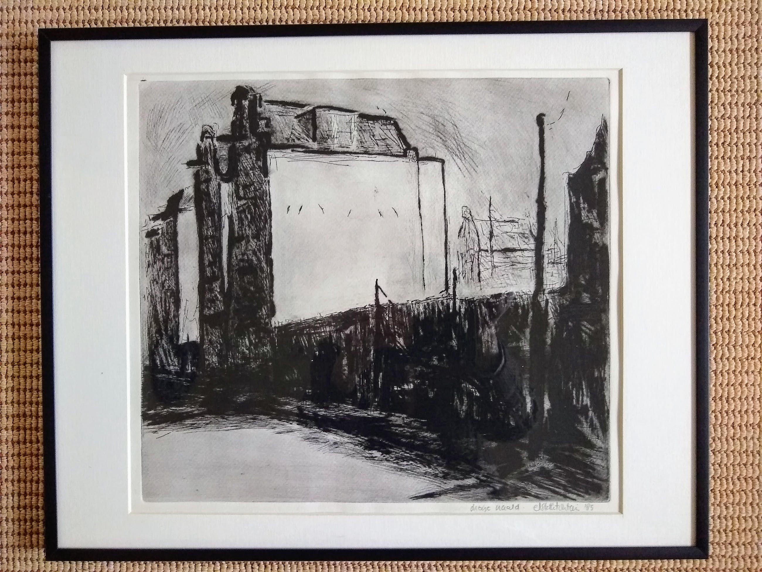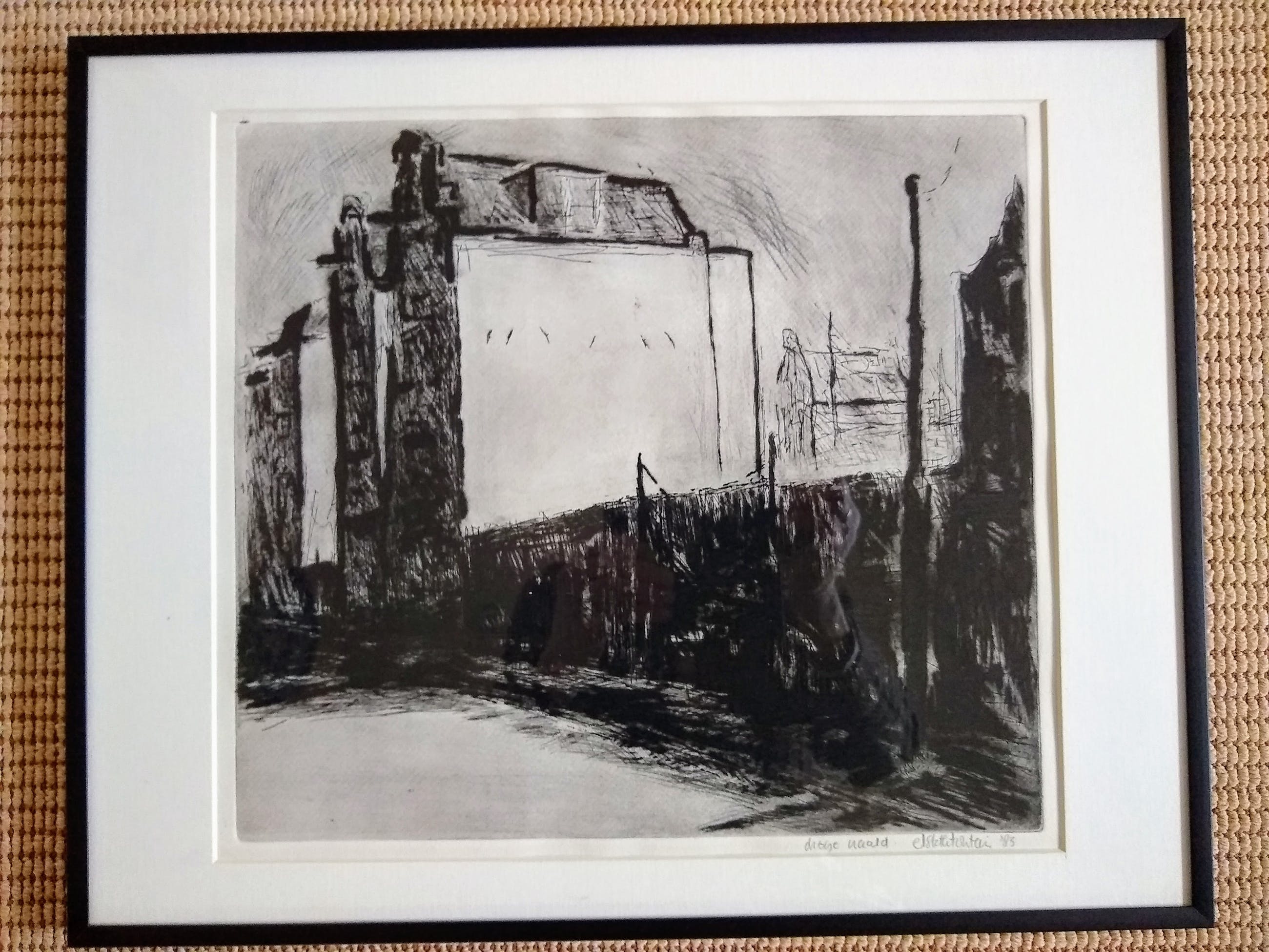 Prachtige ets in droge naald. Naar alle waarschijnlijkheid een unicum. Dik papier, mooi passe-partout, goede passende lijst. Eersteklas druk.