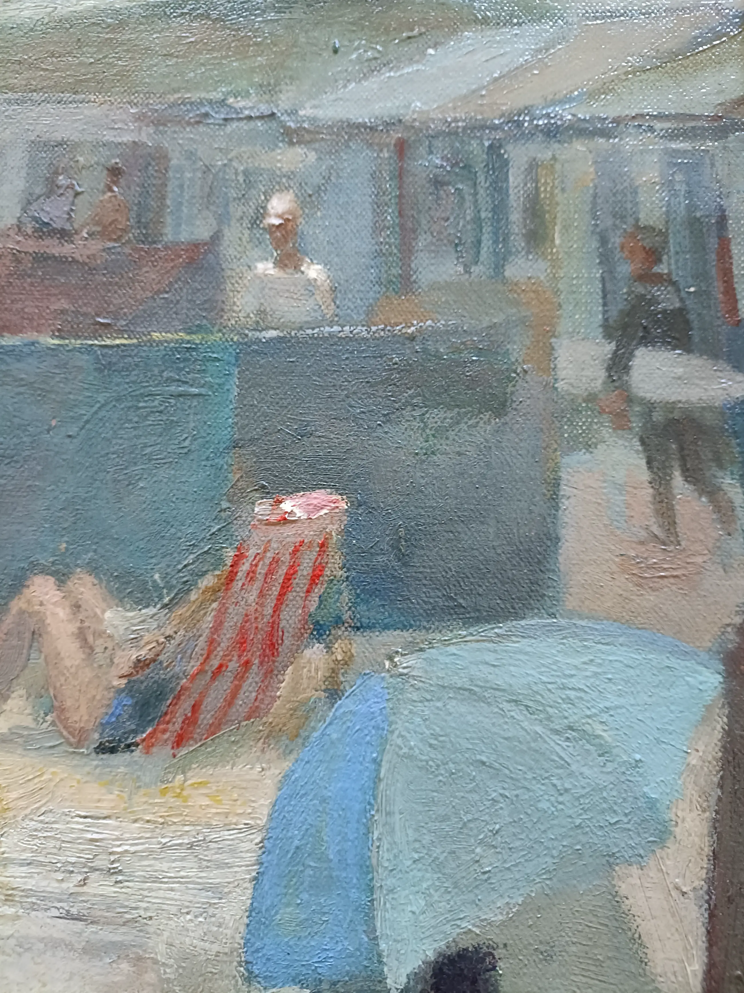 Strandgezicht, kleurrijk, in impressionistische stijl.