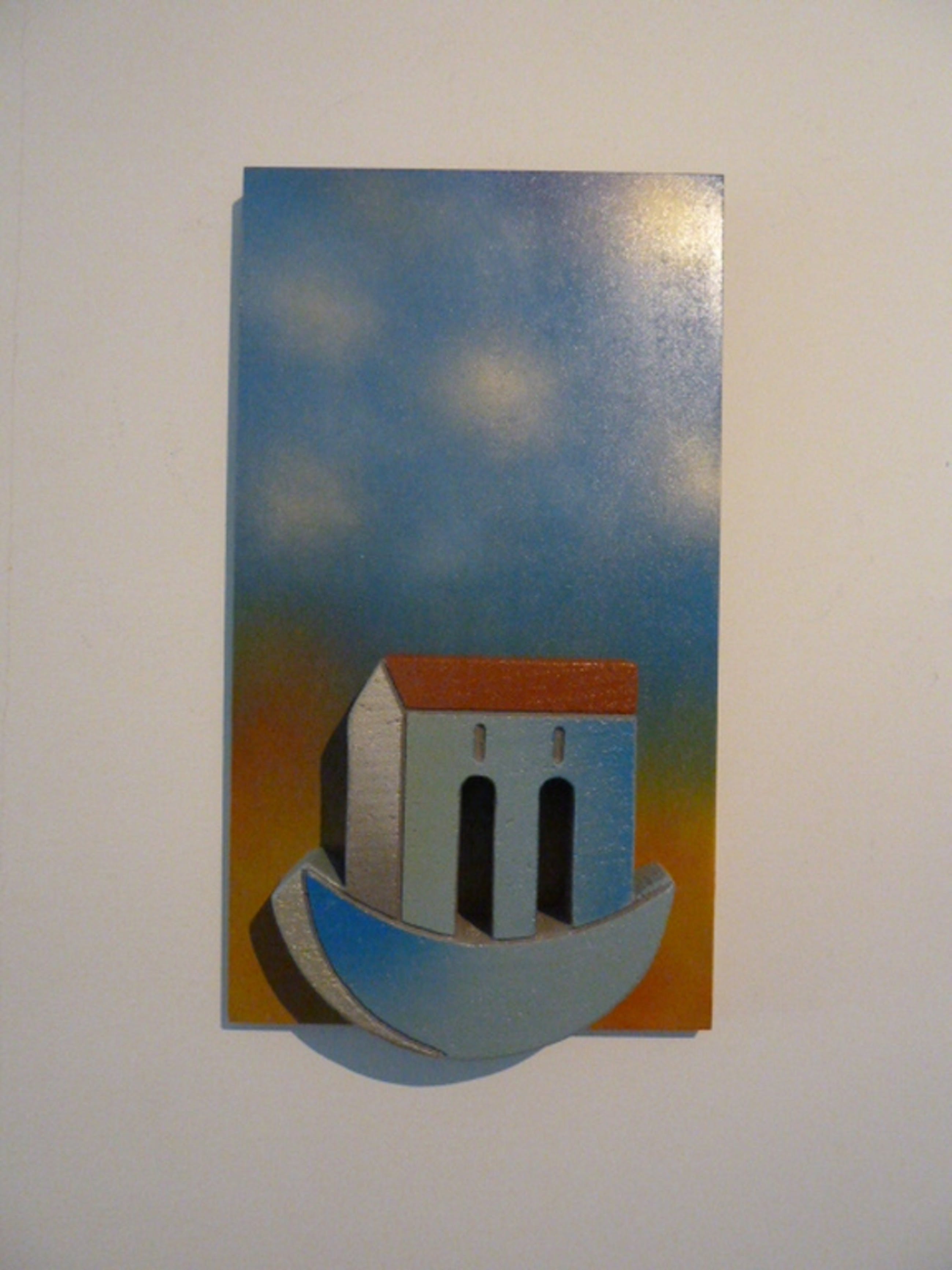 Kunstobject kan staand worden geplaatst of aan wand worden gehangen (ophangvoorziening (D-ring) op achterzijde paneel aangebracht).