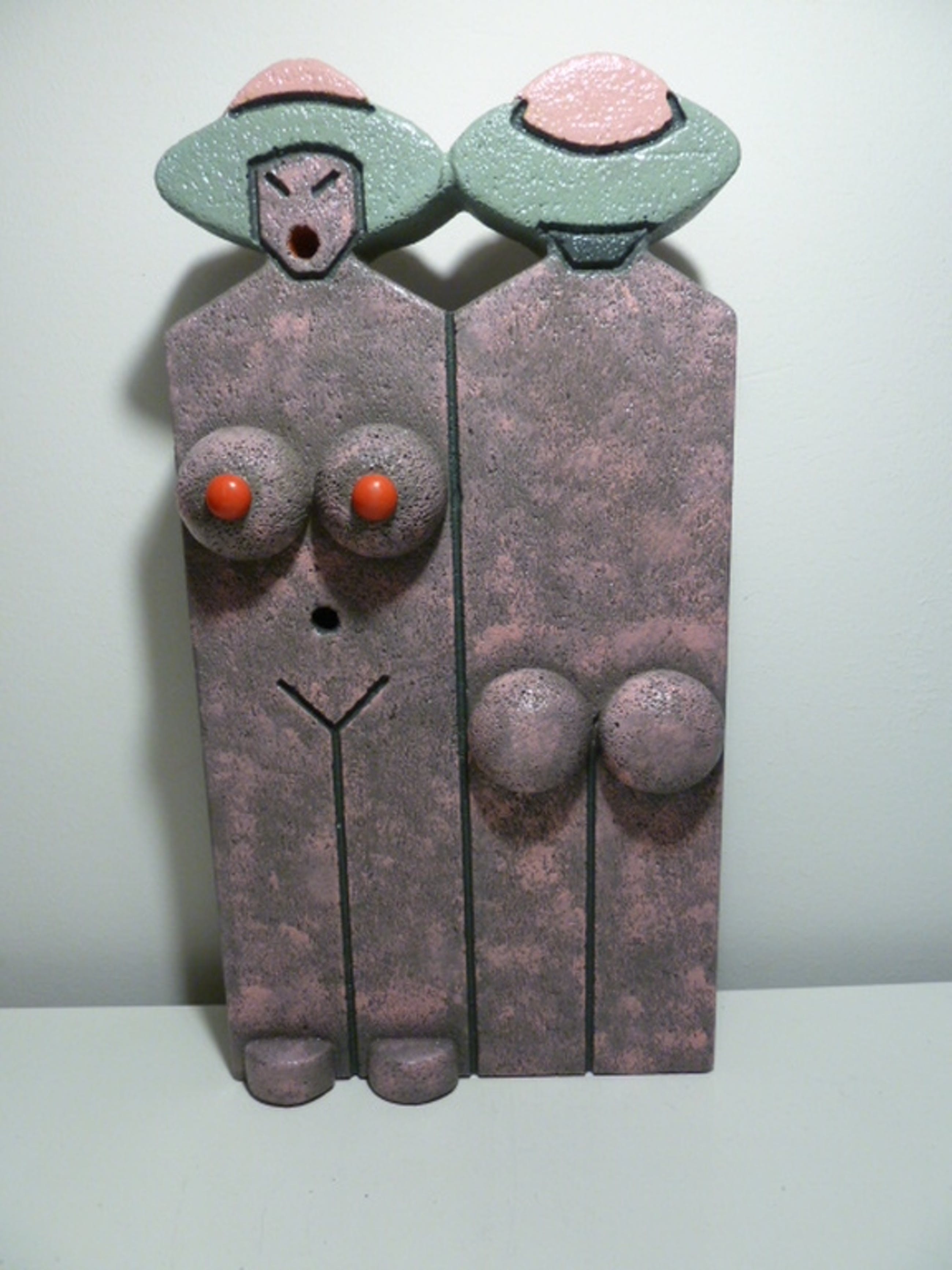 Werk is gesigneerd en kan staand of aan wand worden geplaatst (D-ring voor ophanging aangebracht)