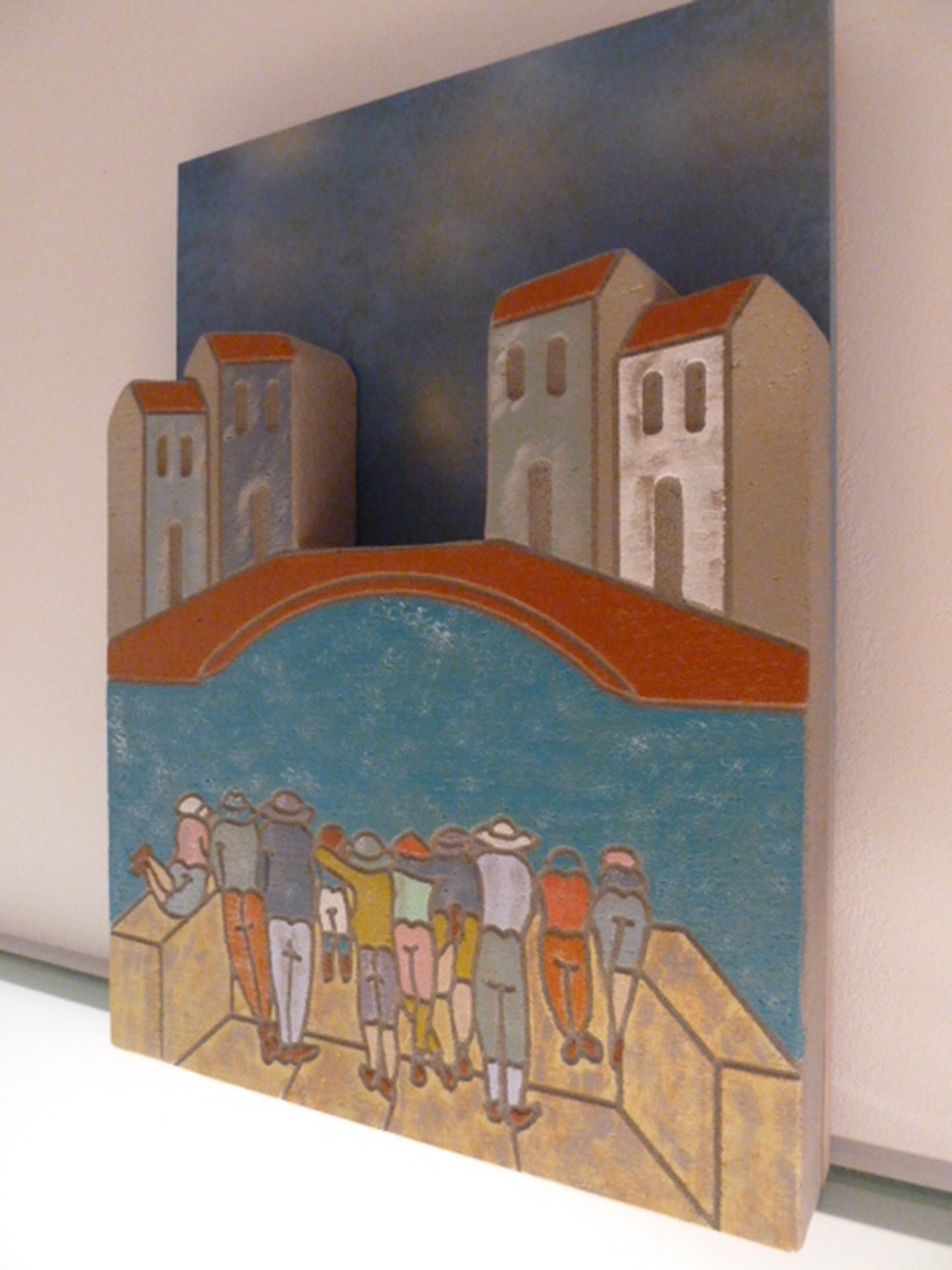 Het werk kan zowel aan de muur worden gehangen (ophangsysteem D-ring aanwezig)