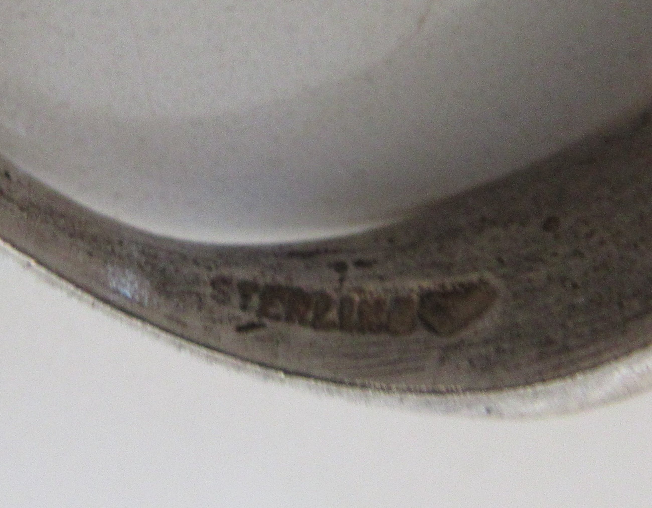 Mooie art deco zilveren ring met smaragd groene en zwarte emaille decoratie. Voorzien van gehalte merk (Sterling Silver). De ring lijkt licht ontzet. Ringmaat 5.75.