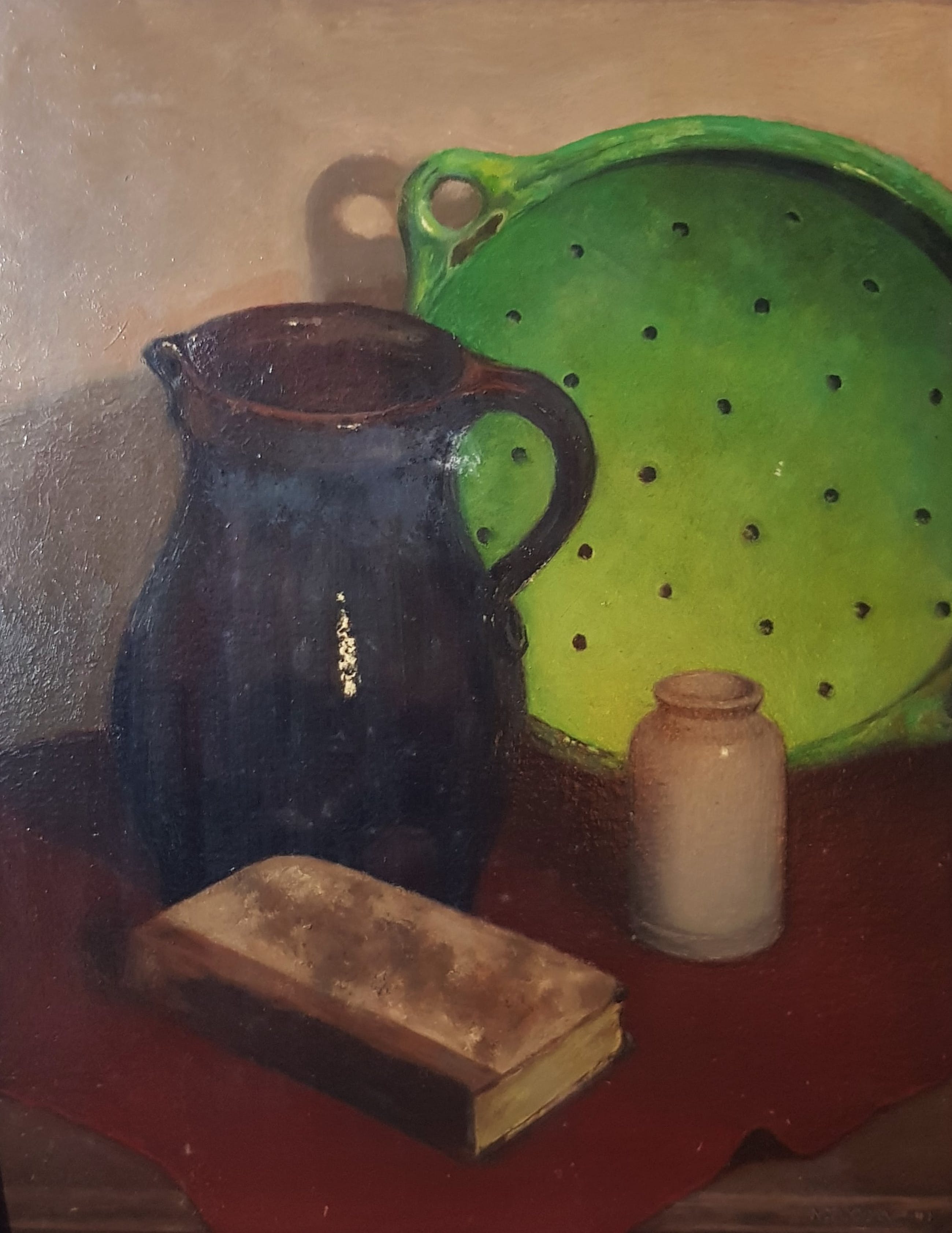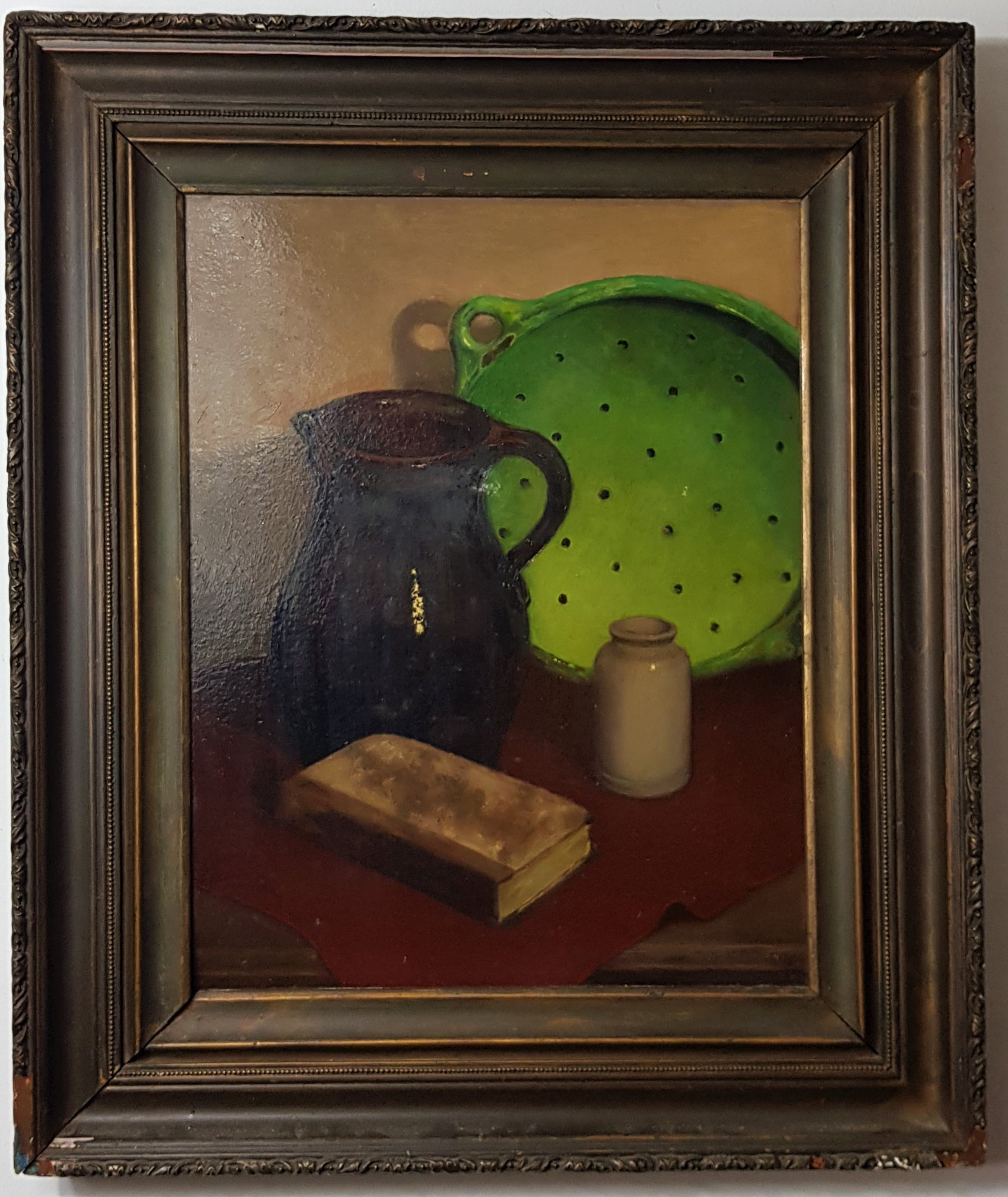 Hollandse school Stilleven met melkkan Onlesbaar gesigneerde in goede staat - gebruikt met kleine tekenen en lijst beschadig - zie - foto's