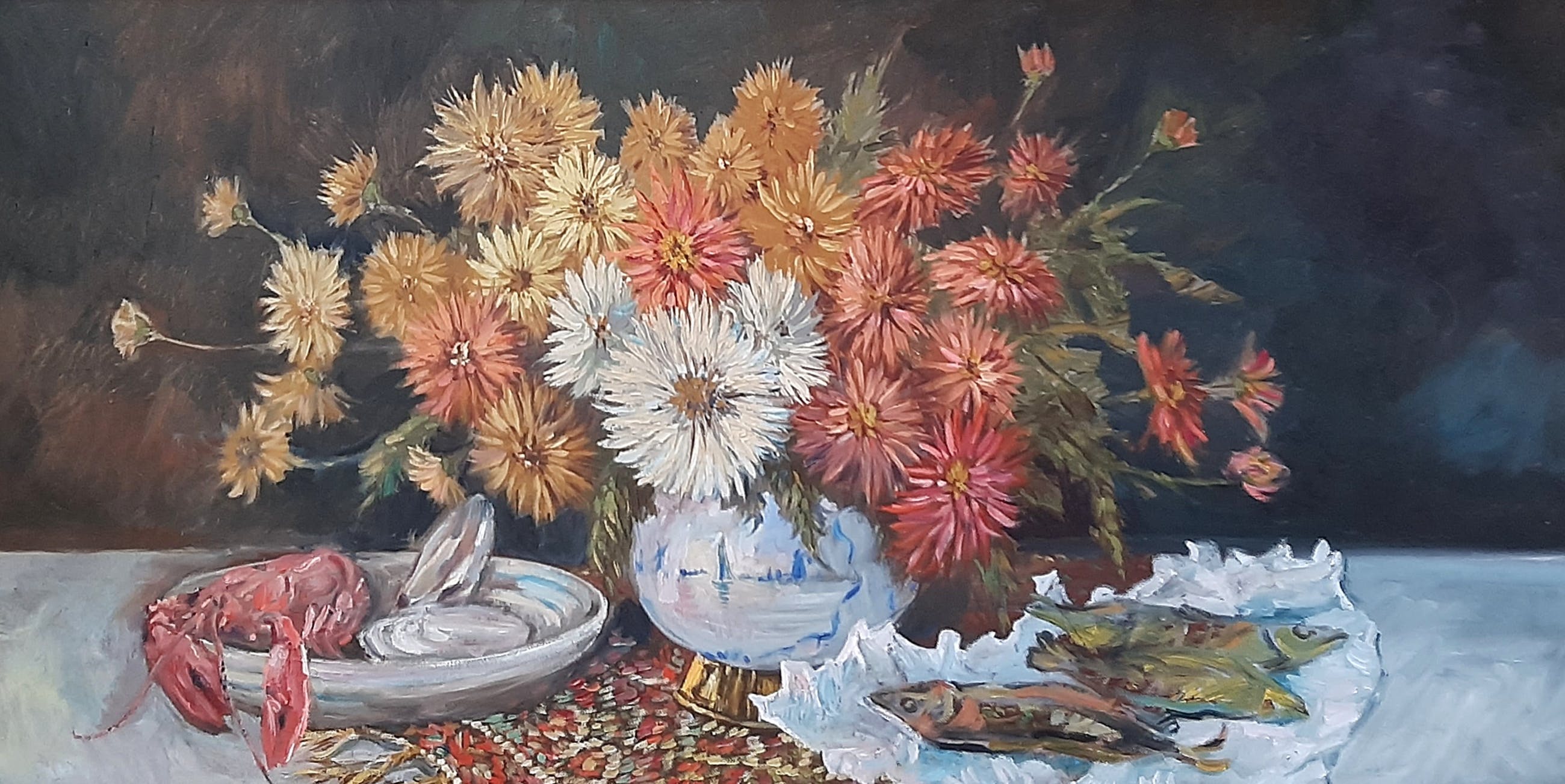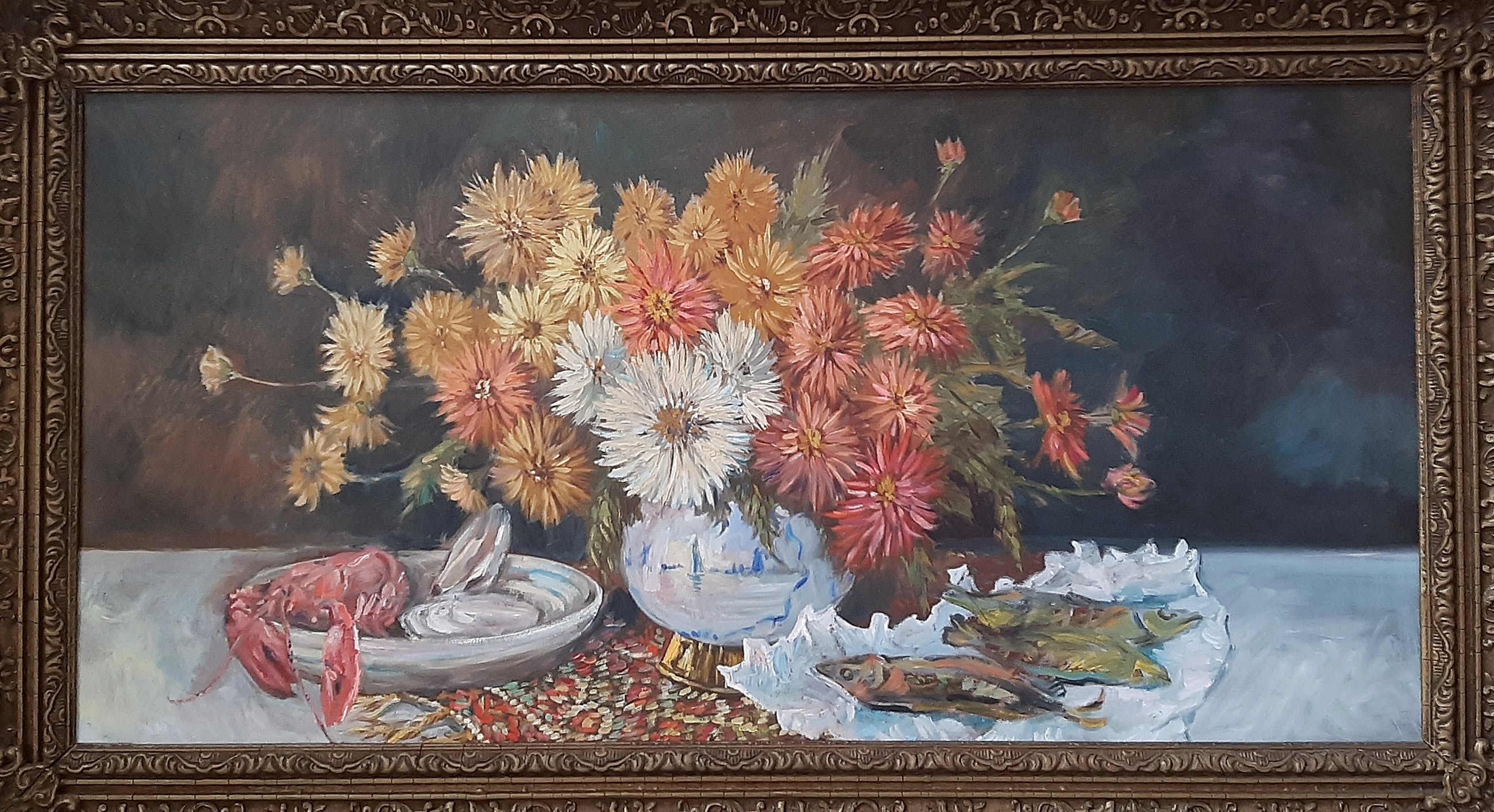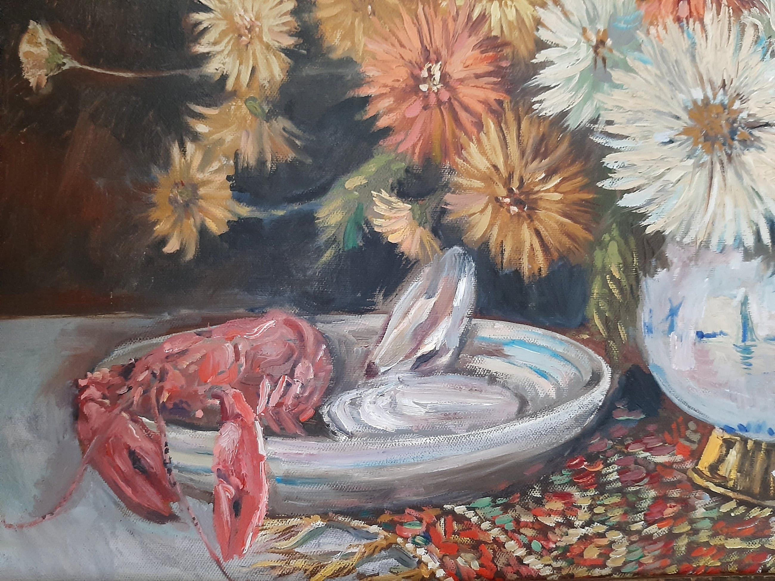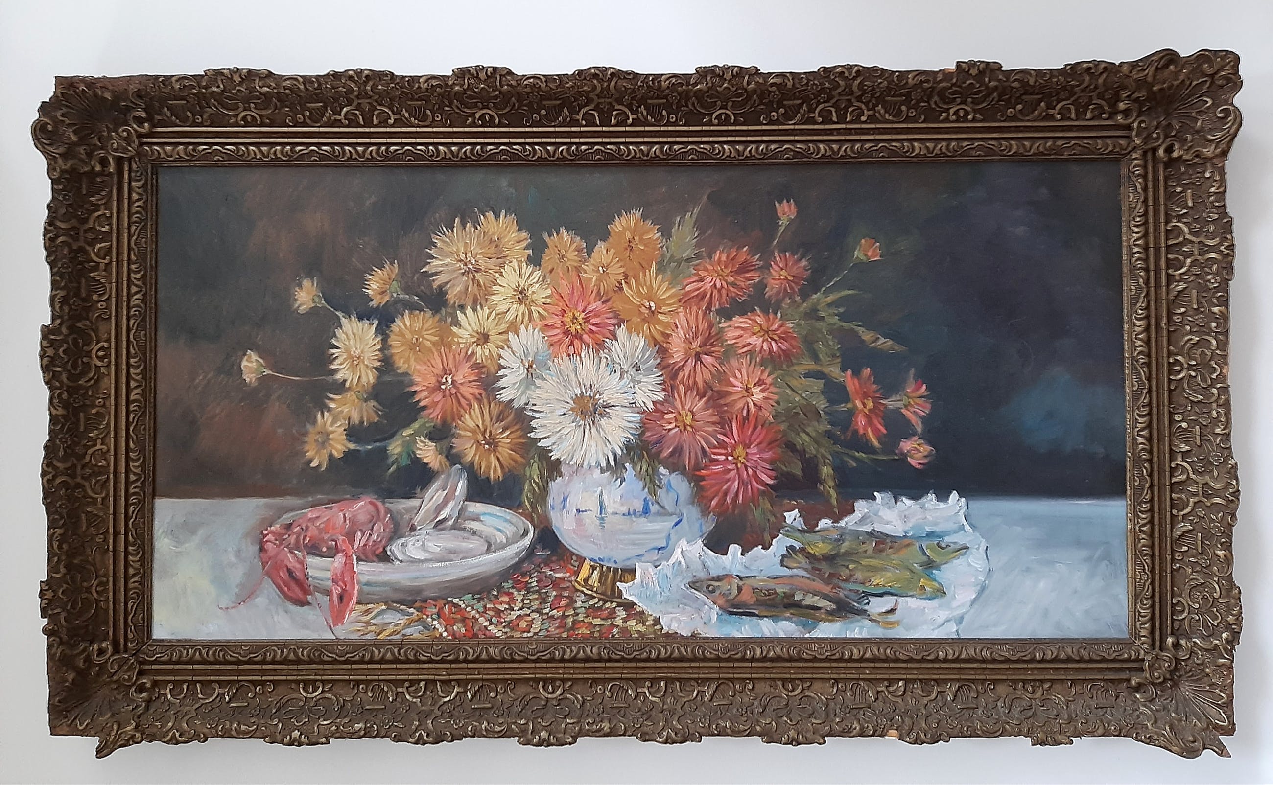 Aangeboden prachtig stilleven. Schilderij zit in goede staat. Lijst moet worden gerestaureerd-zie fotos. Kan ophalen in Amsterdam.