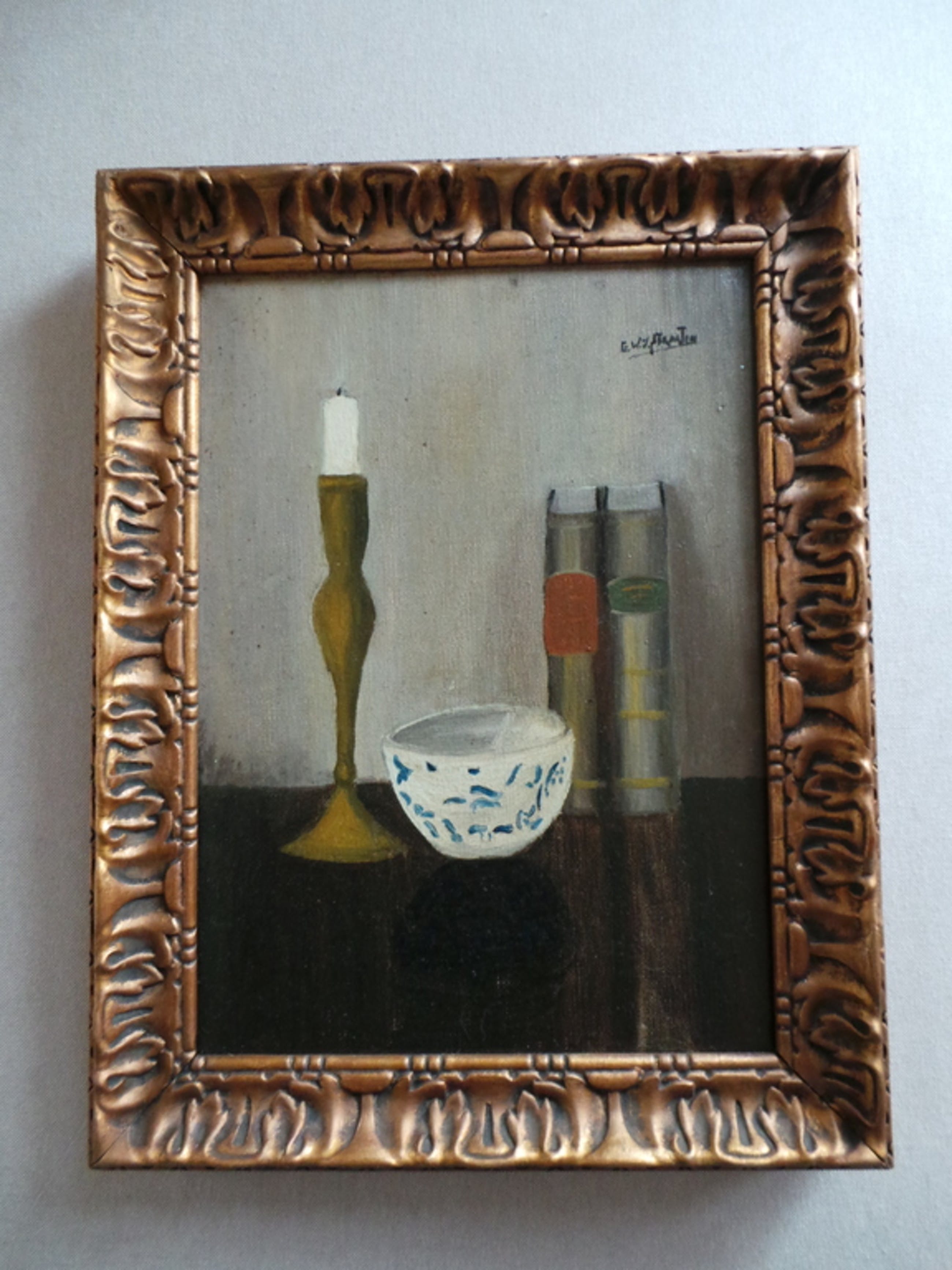 Afmeting met lijst 30.5 x 39 cm ( gelijst in een oud origineel lijstje )