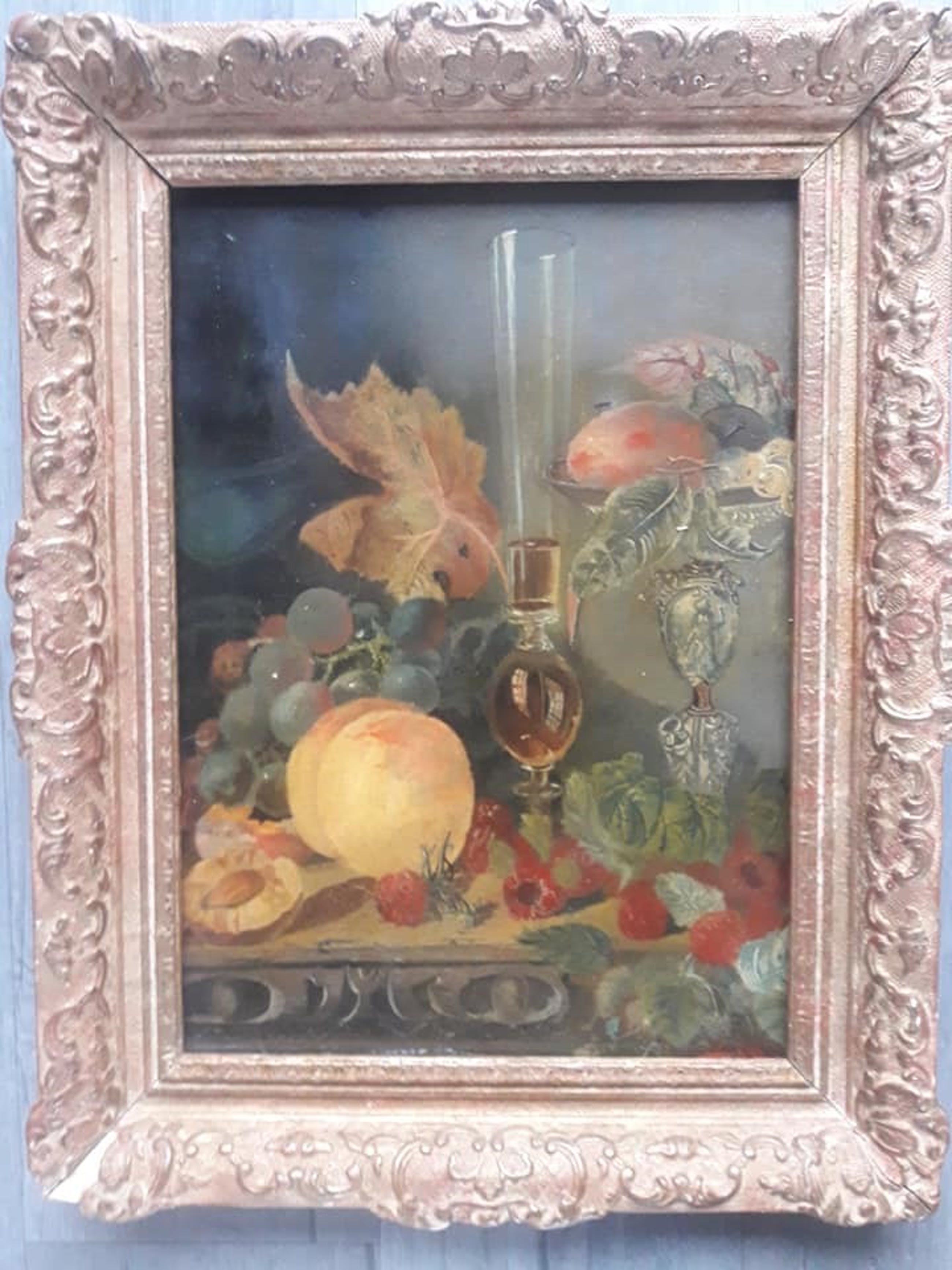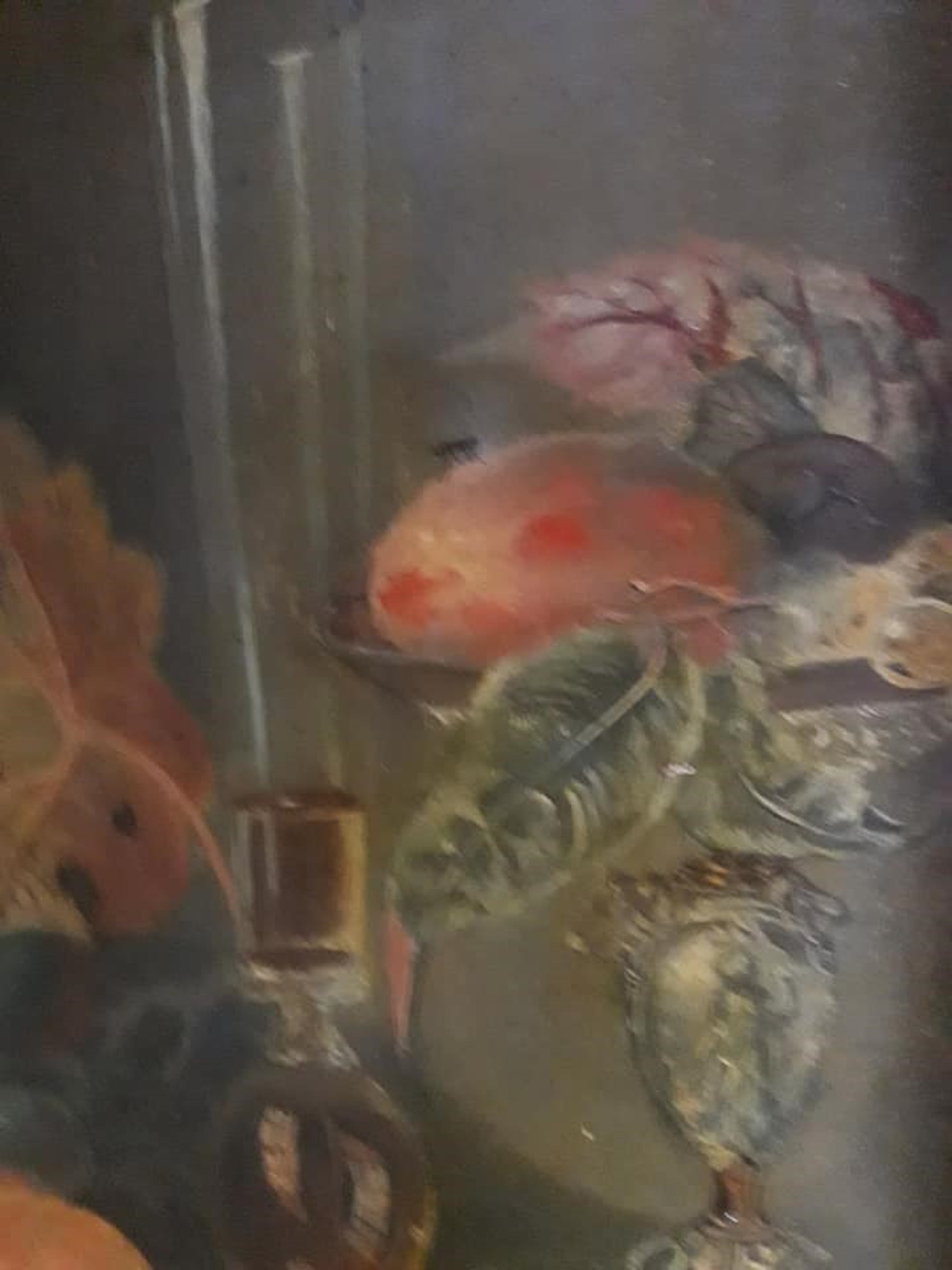 Mooi geschilderd oud stilleven. Helaas ongesigneerd. Gadateerd begin 20e eeuw. Heeft onderin heel licht wat craquele, niet hindelijk. Lijst heeft wel een beschadiging links onder. Zal worden verzonden in een op maat gemaakte kist om beschadiging te voorkomen. Kan ook worden afgehaald in Ijmuiden of Bodegraven. Verzendkosten naar Belgie 17,50.