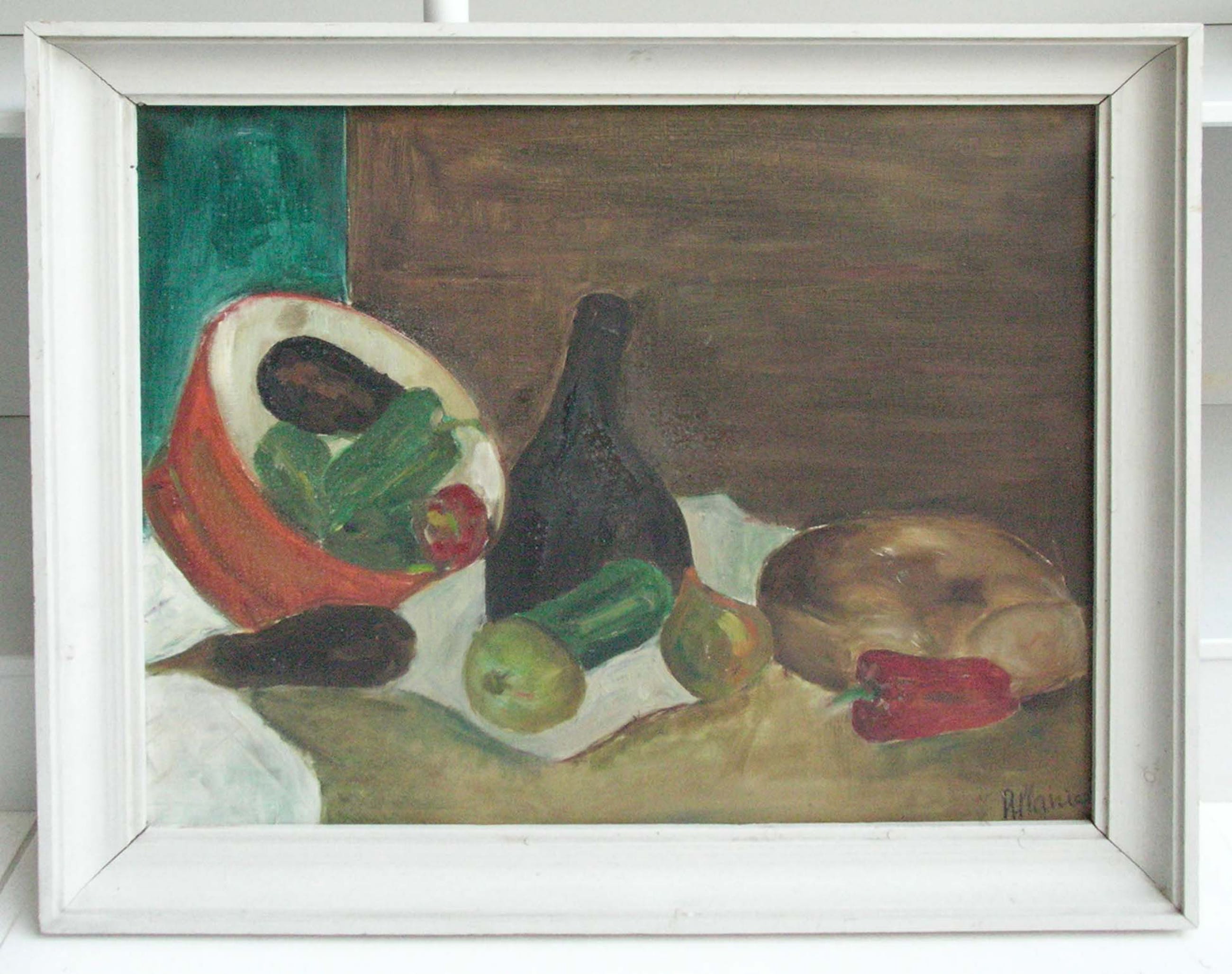 Expressief stilleven, signering onduidelijk (R. Plaisier?)