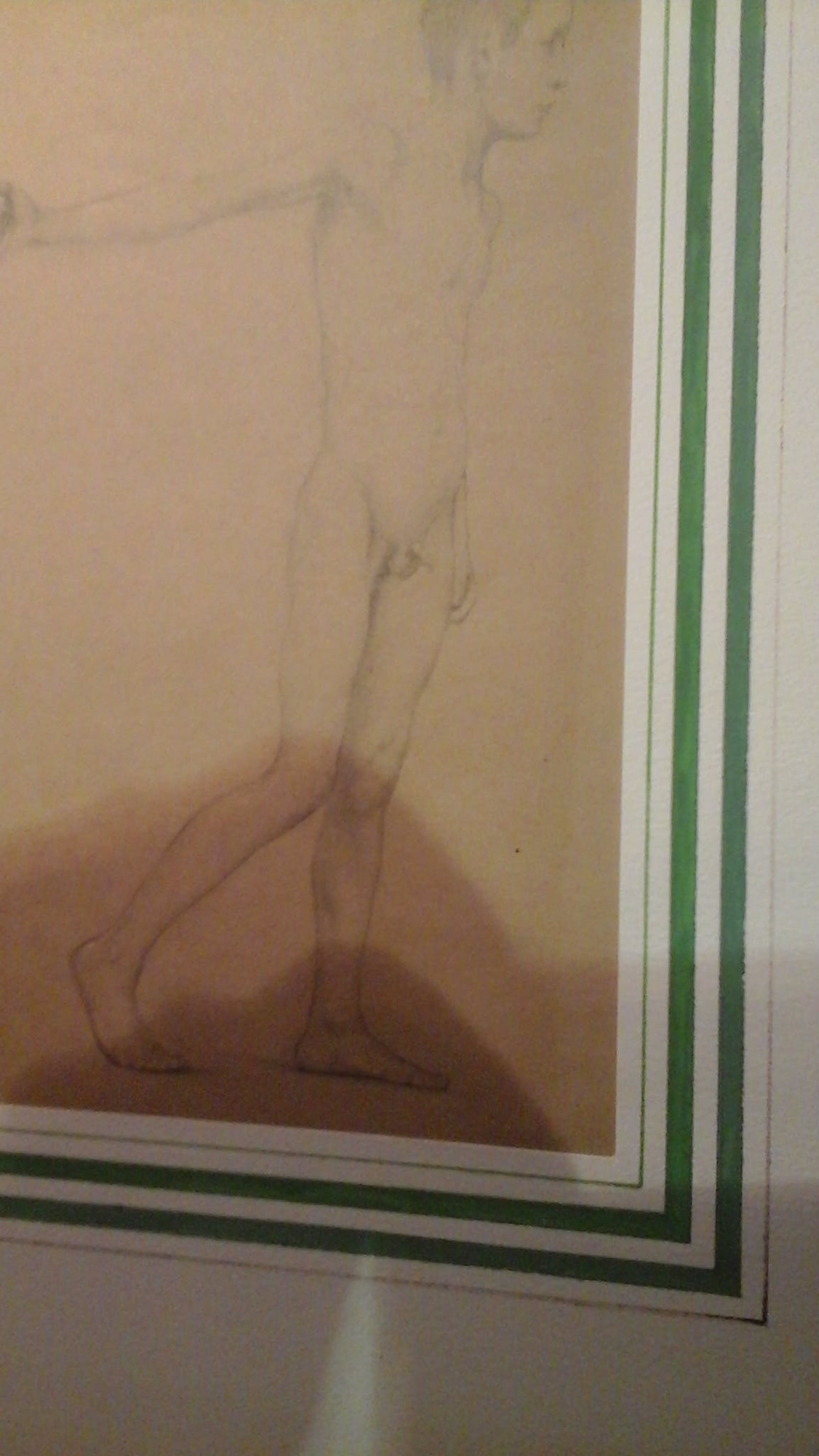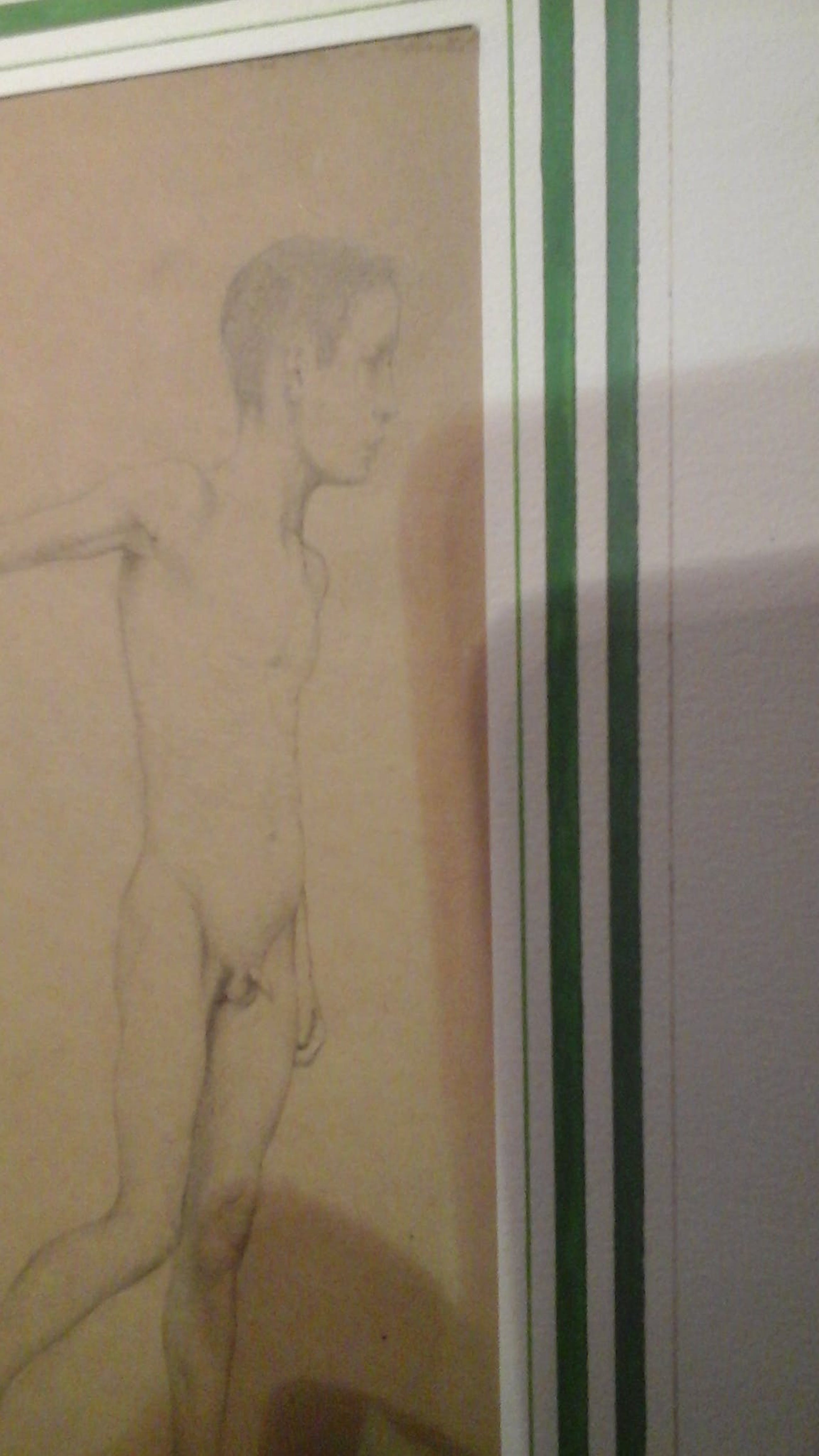 Goede studie van een mannelijk naakte, zeer realisme klassiek werk,helaas ongesigneerd,achter passepartoutkarton, in aluminium wissellijst.