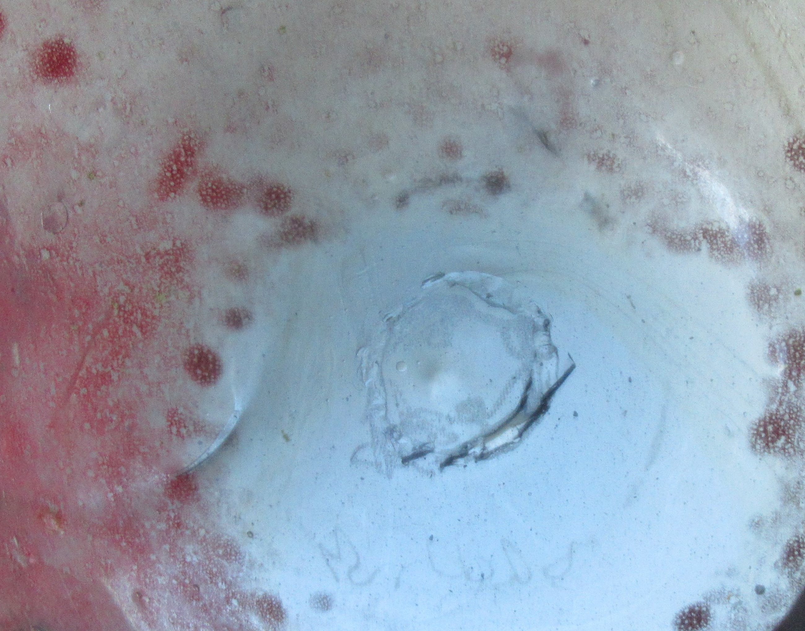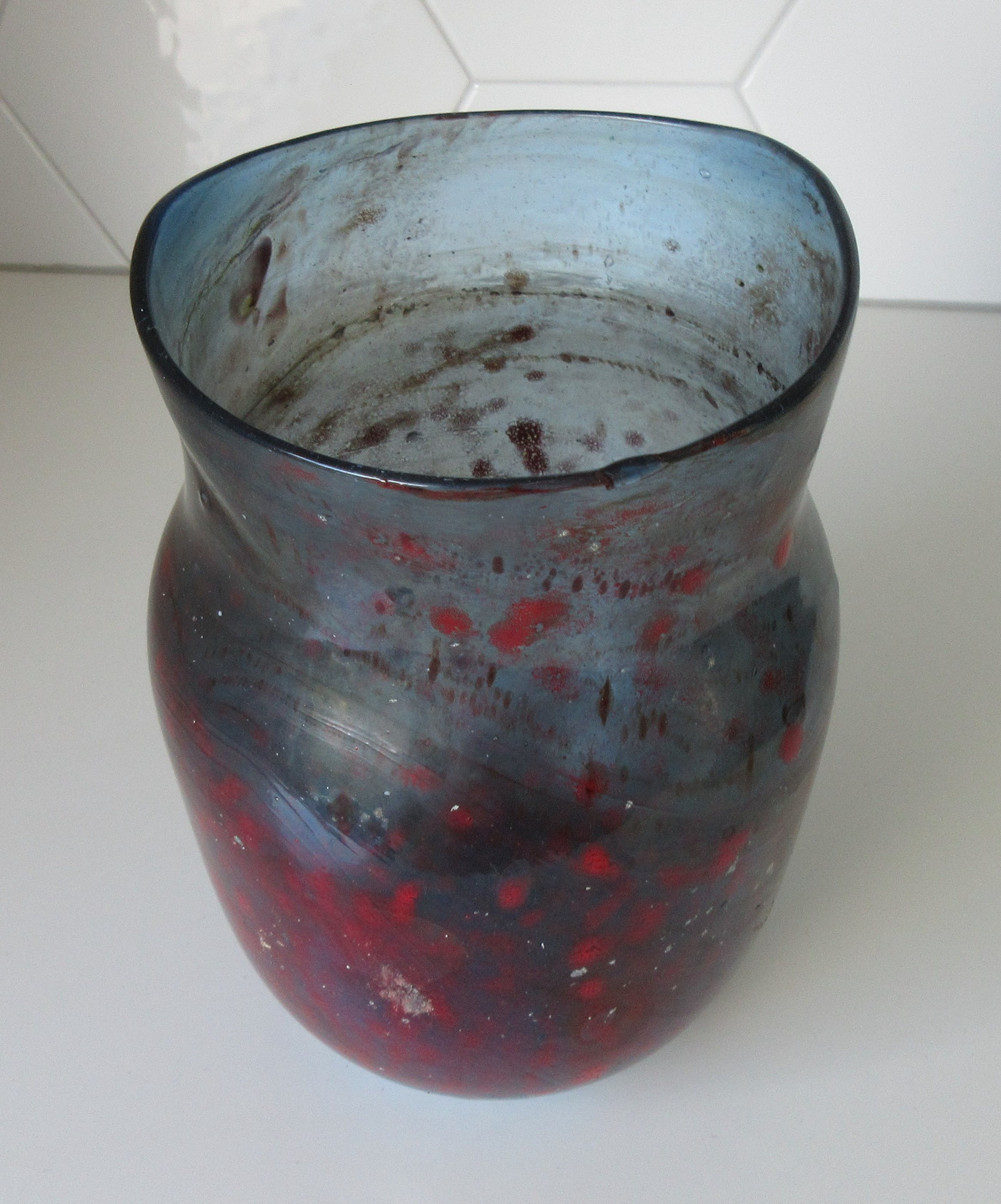 De vaas heeft ruwe plekjes en een kleine breuk bij het pontil