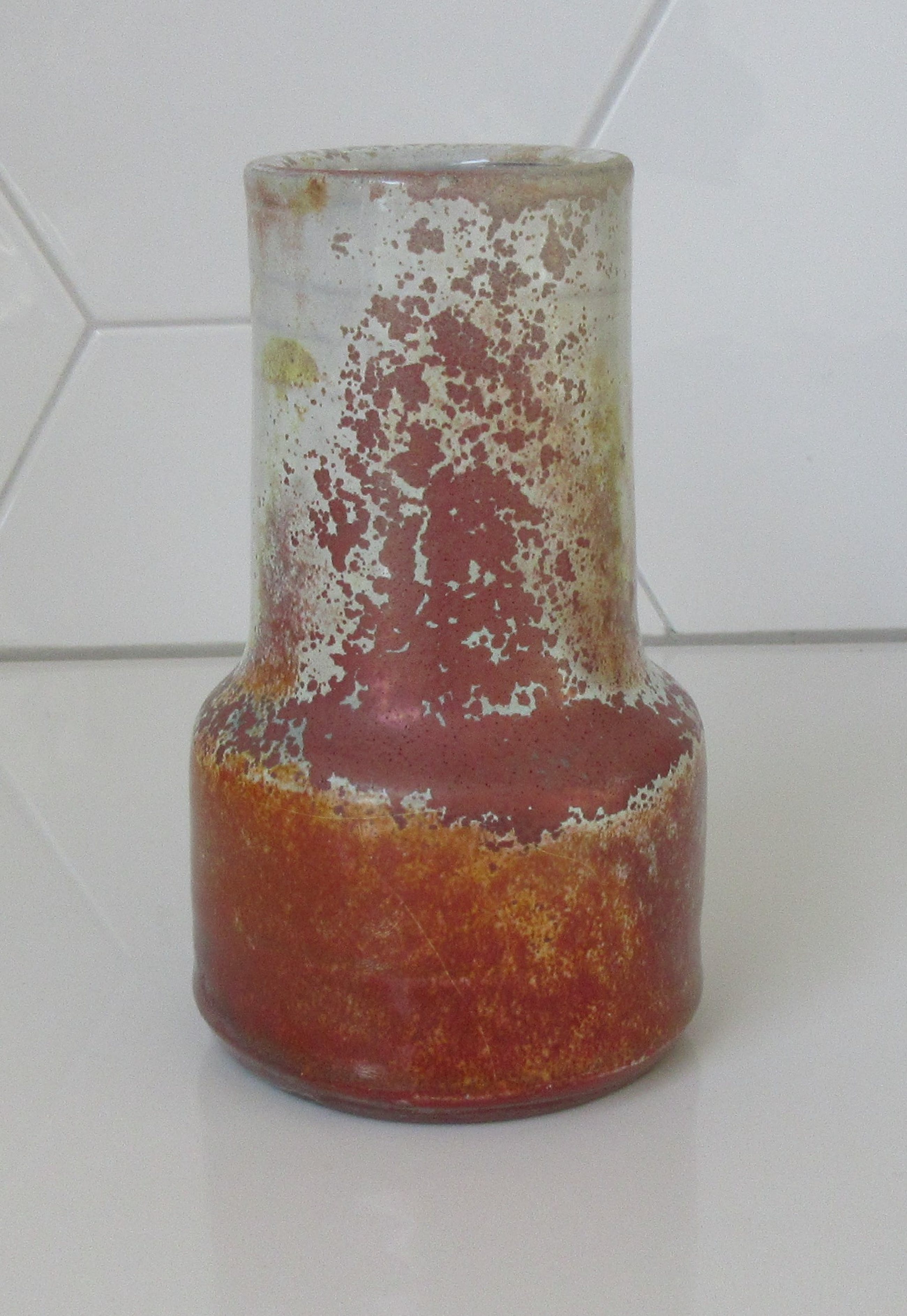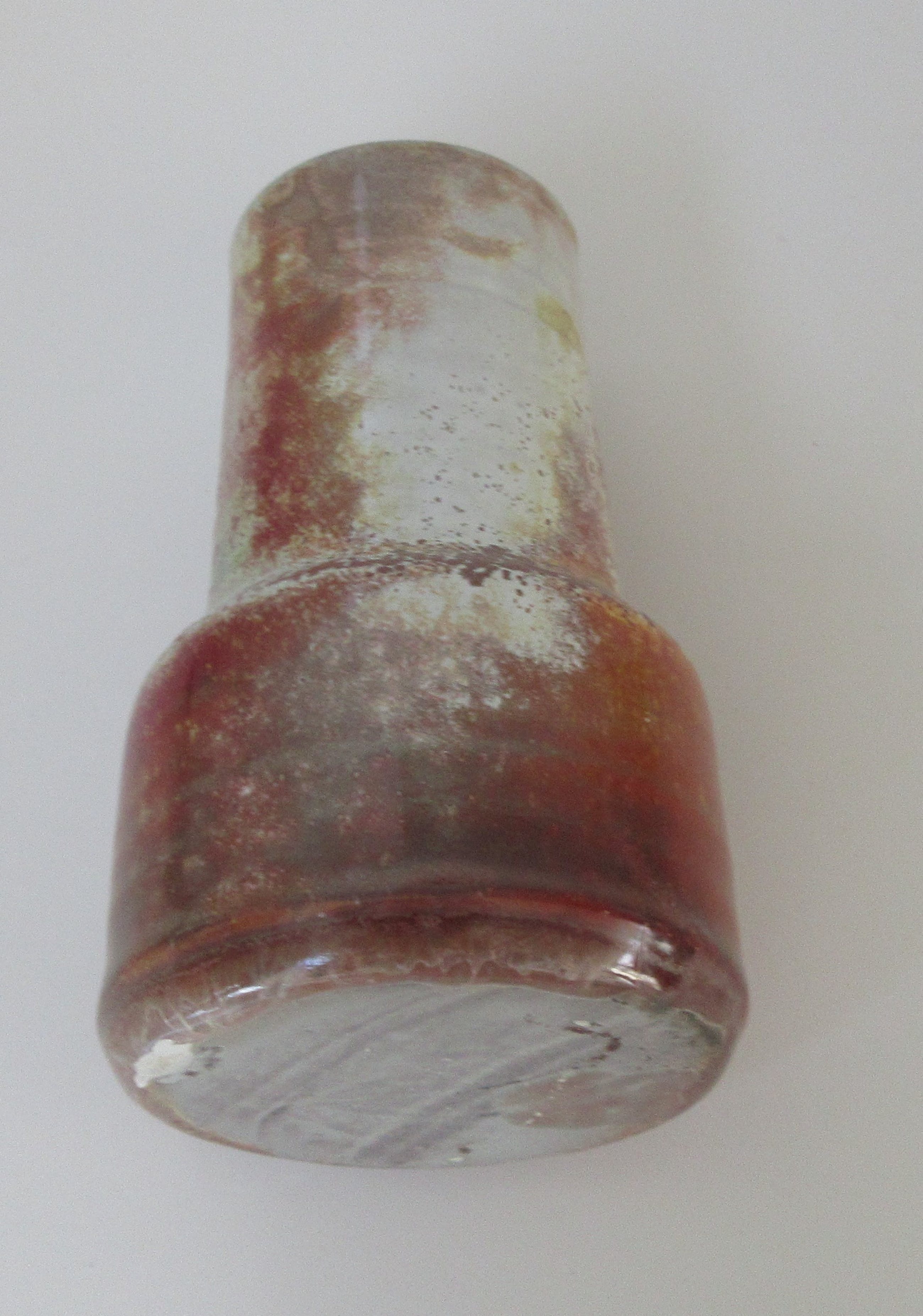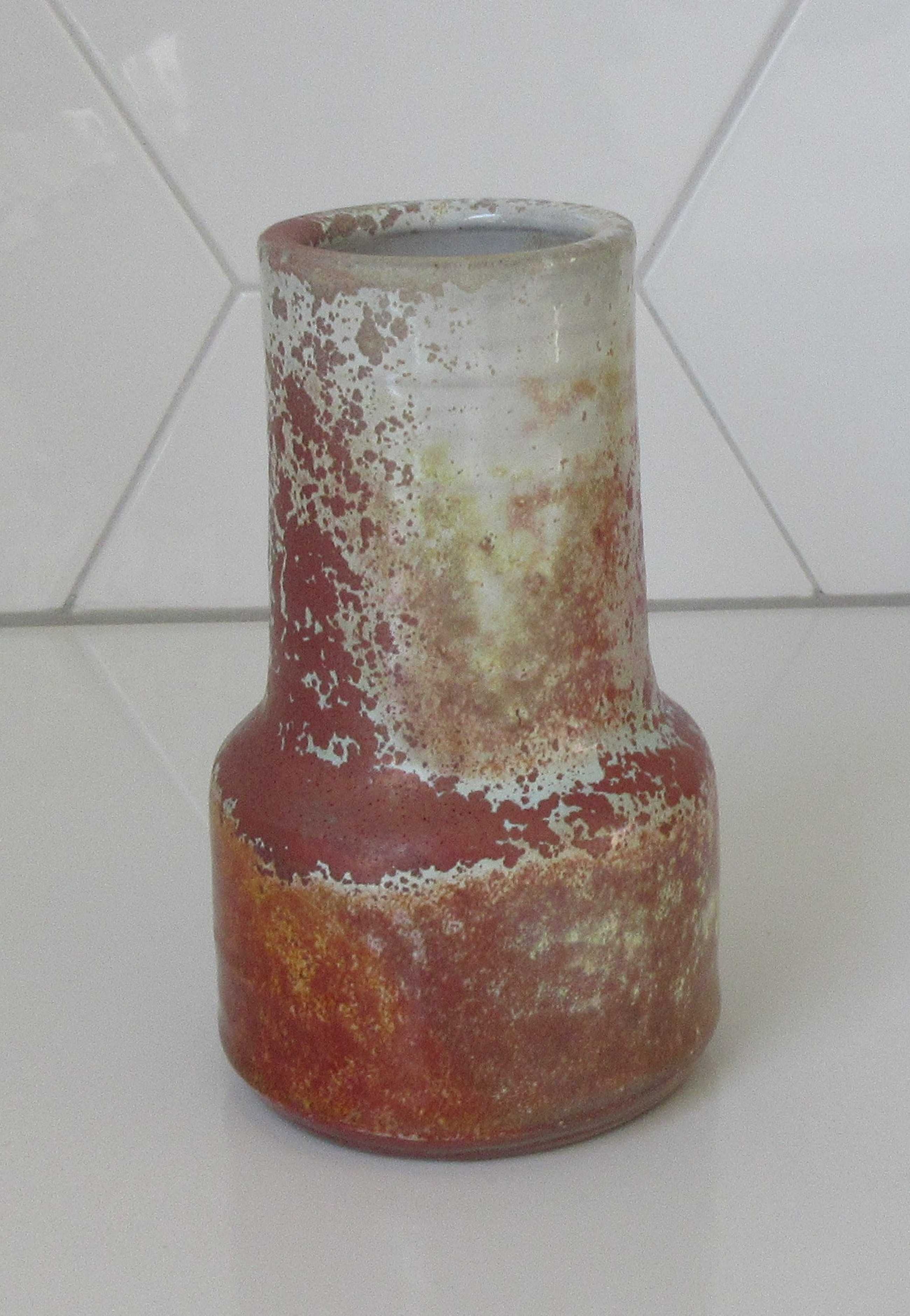 Studio Keramiek vaasje met prachtig glazuur oa. ossenbloed en celadon, brons etc. Helaas niet gemerkt waardoor maker onbekend. Het kan bijv. bij Mobach of Zaalberg geproduceerd maar mogelijk ook in het buitenland zoals bijvoorbeeld de Studio van Richard Uhlemeyer uit Hannover in Duitsland.