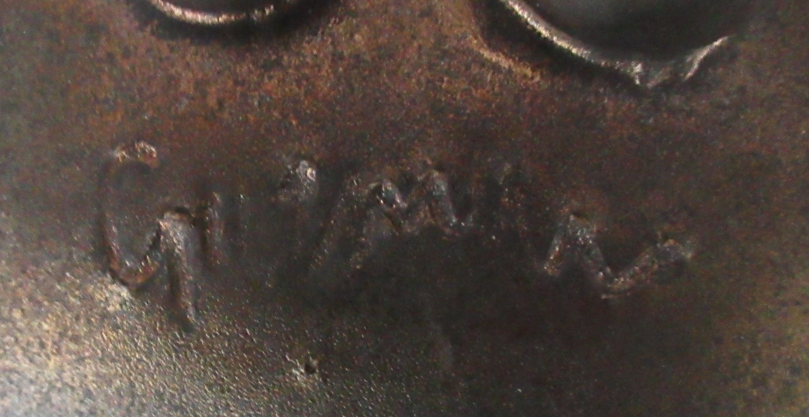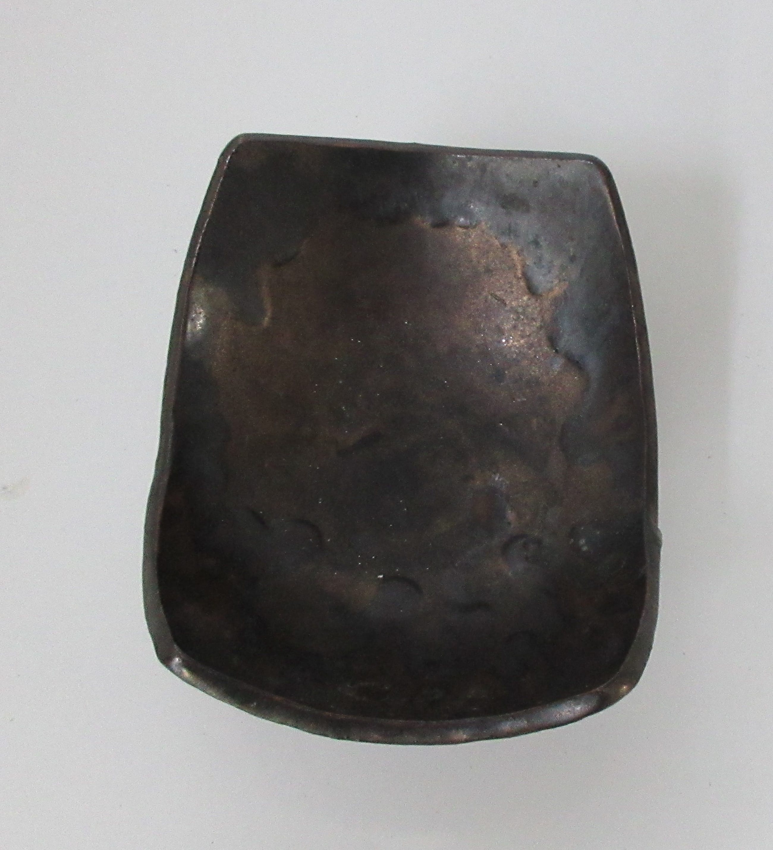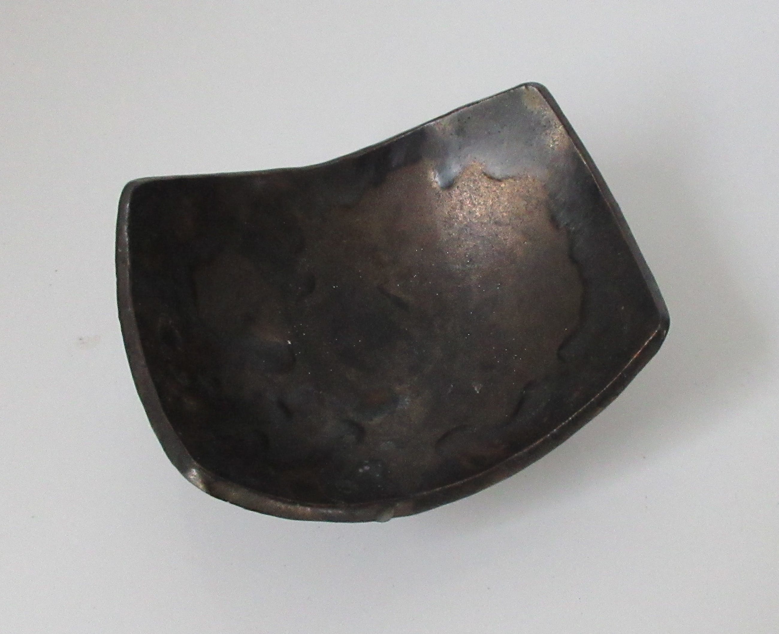 Studio keramisch object in bronsglazuur van Annemarie Guzman uit Atlanta in de VS. Annemarie heeft een Nederlandse achtergrond. Mooi stukje kunst keramiek van rood aardewerk met dik bronsglazuur. Gesigneerd op de achterzijde.