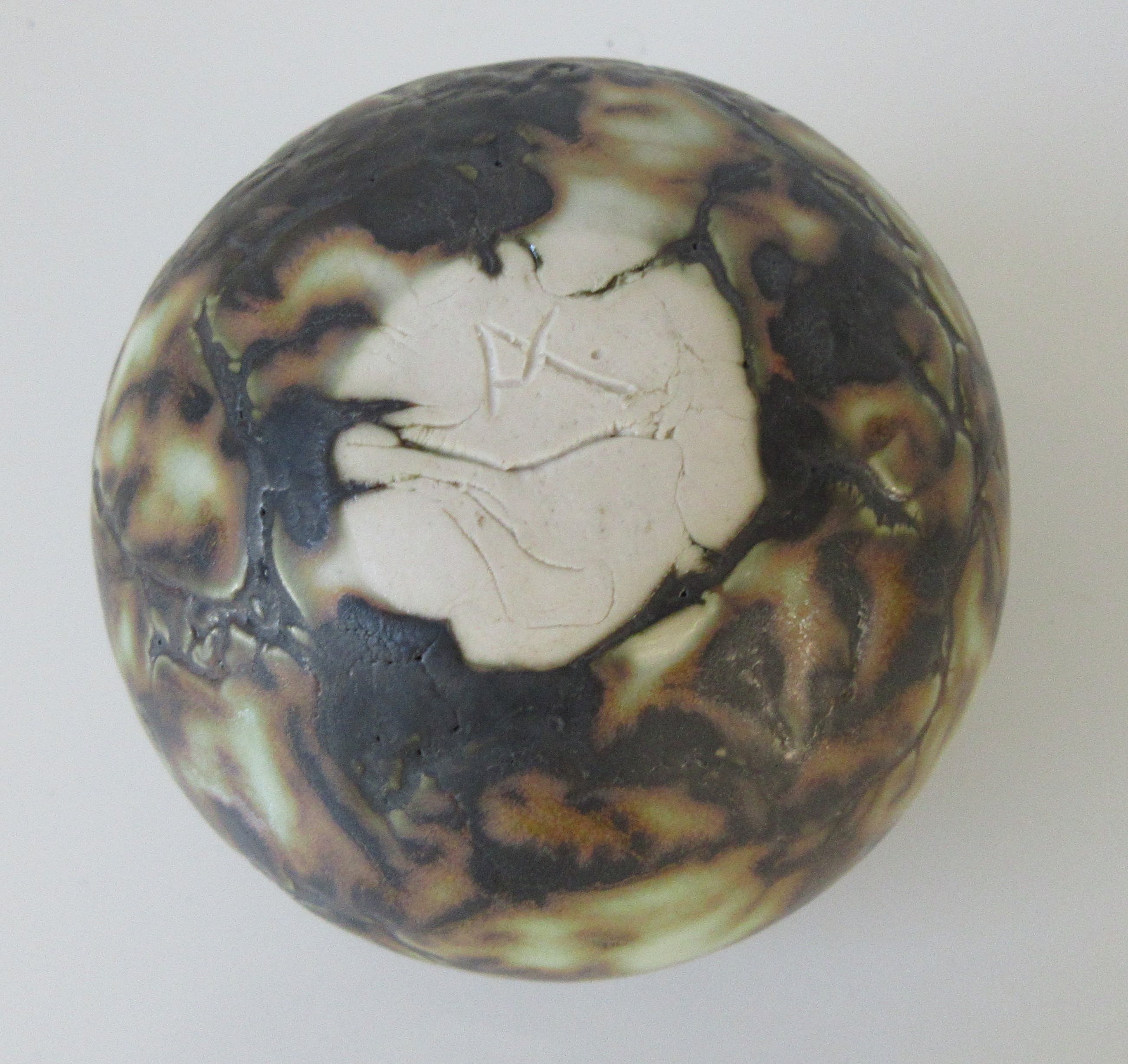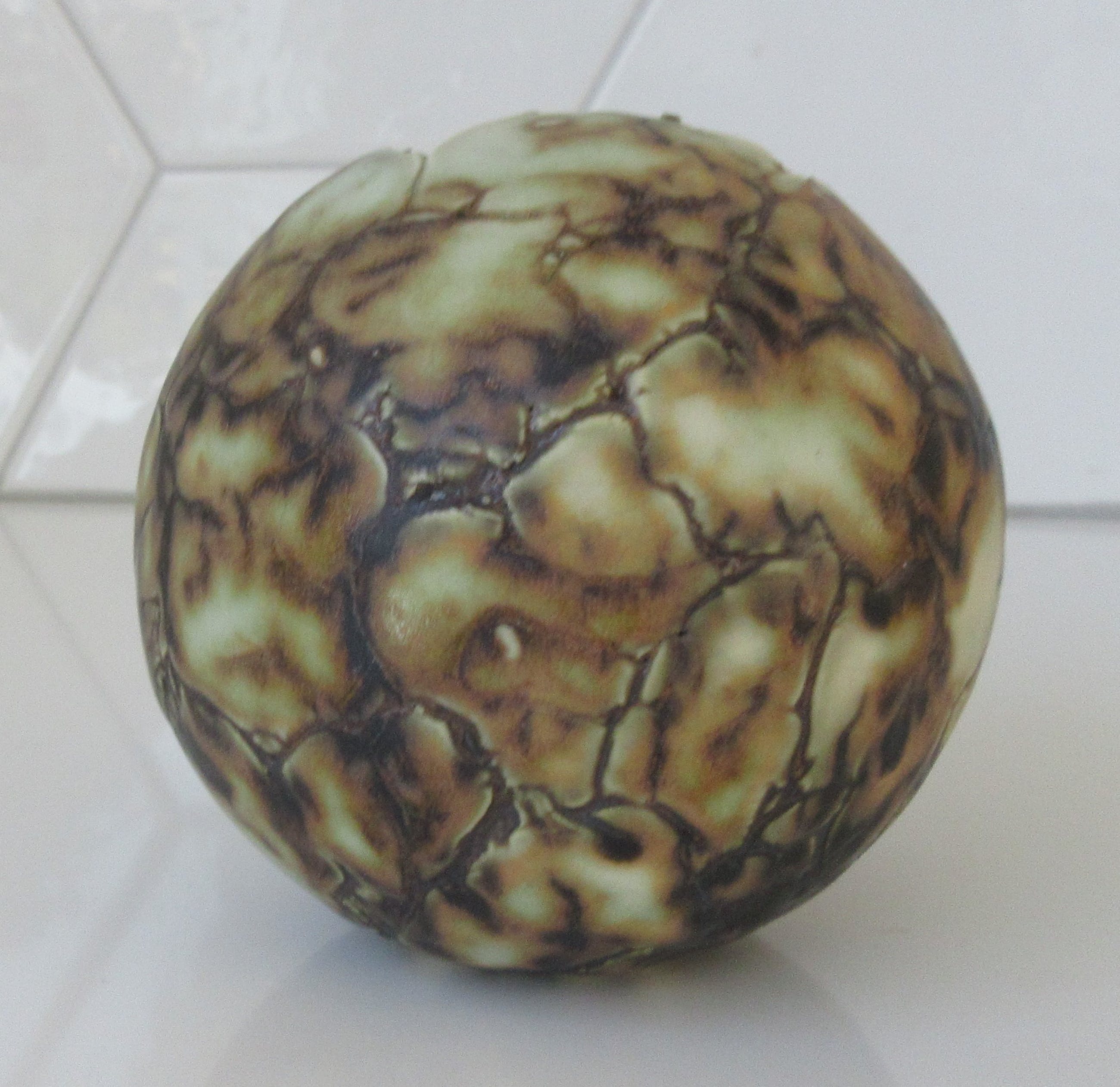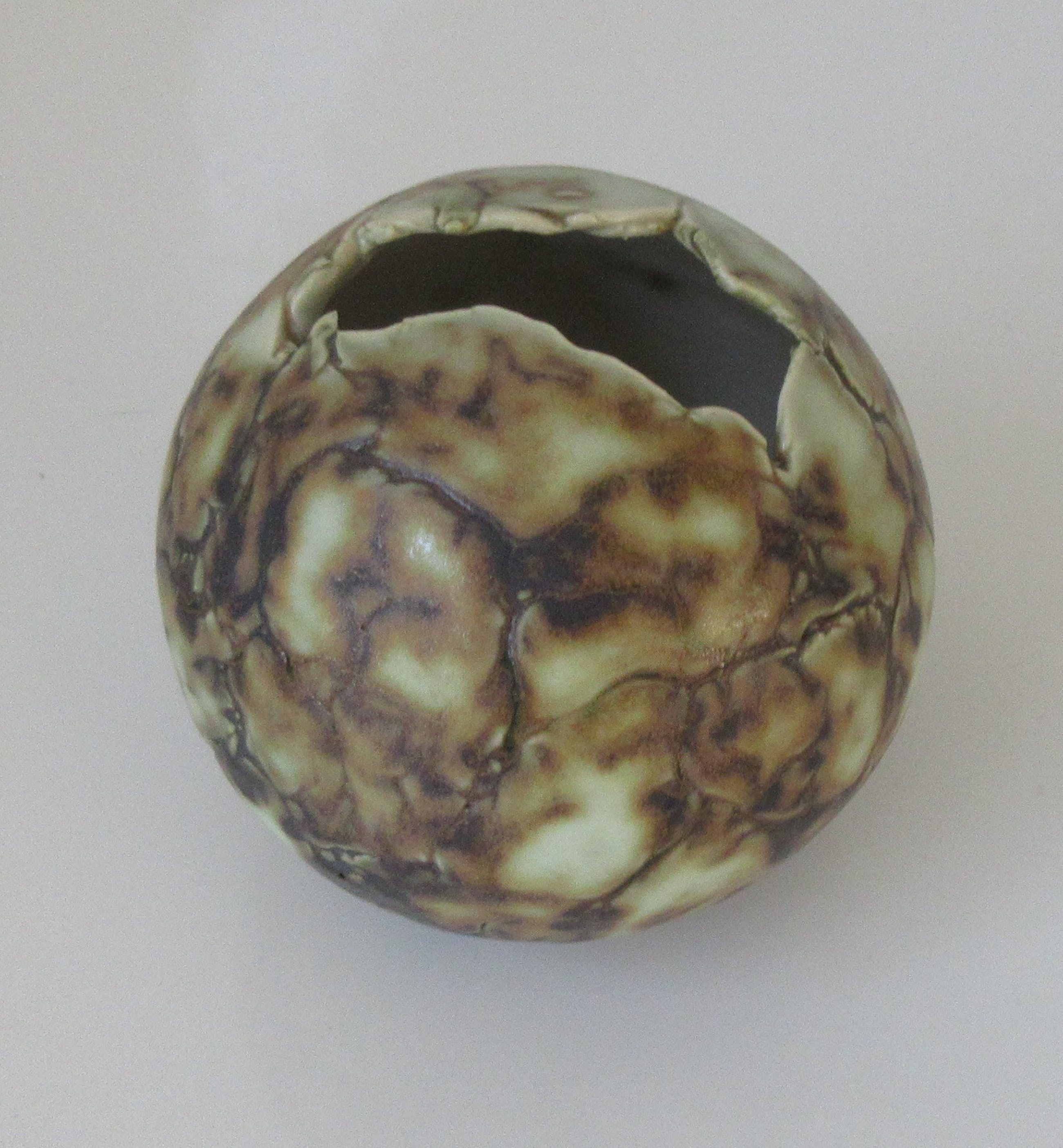 Studio Keramisch opengewerkt object, het heeft iets weg van een dino ei :-) In prima onbeschadigde conditie aan de onderzijde gesigneerd.