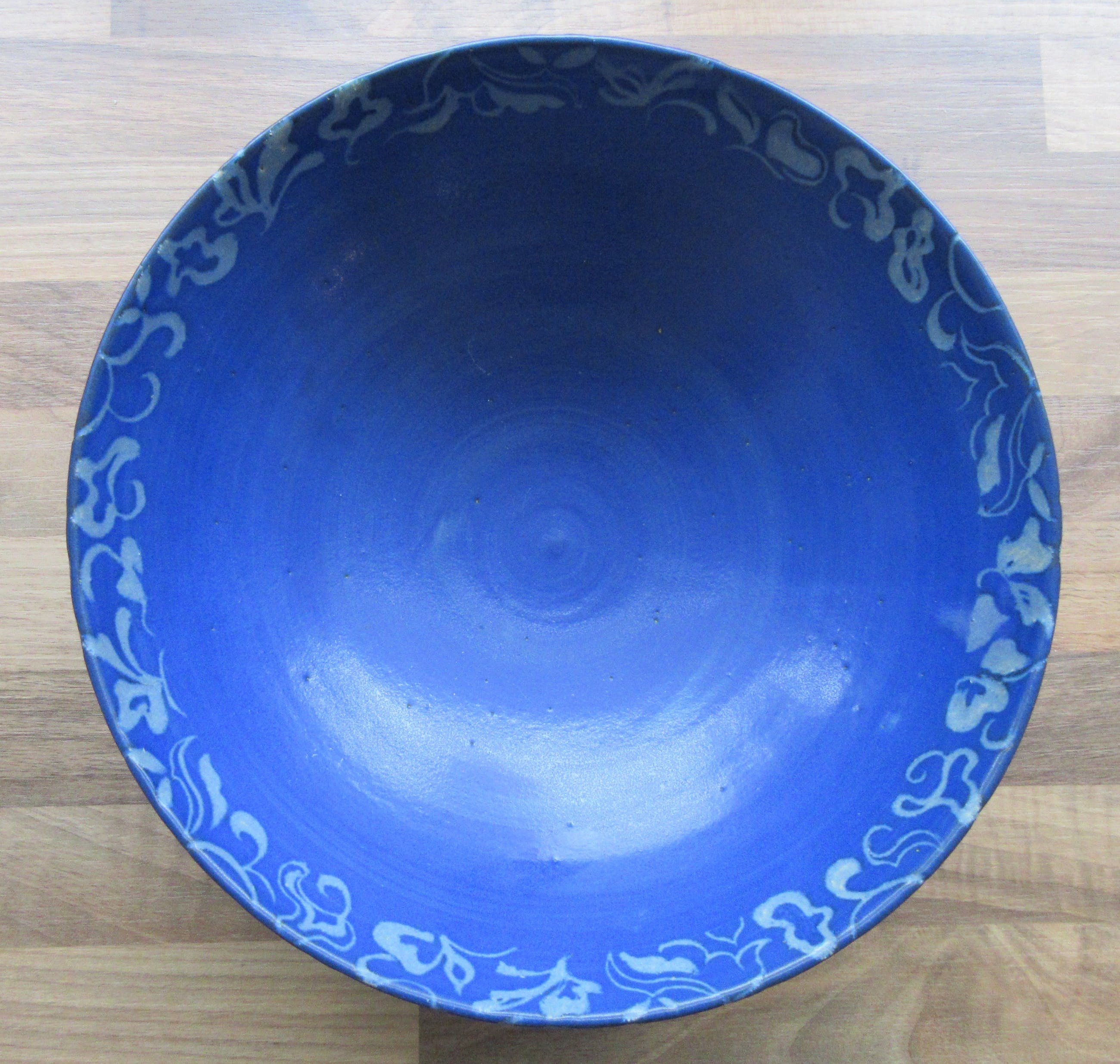Onbekend - Studio steengoed blauwe schaal gesigneerd E. Harup - Verkocht