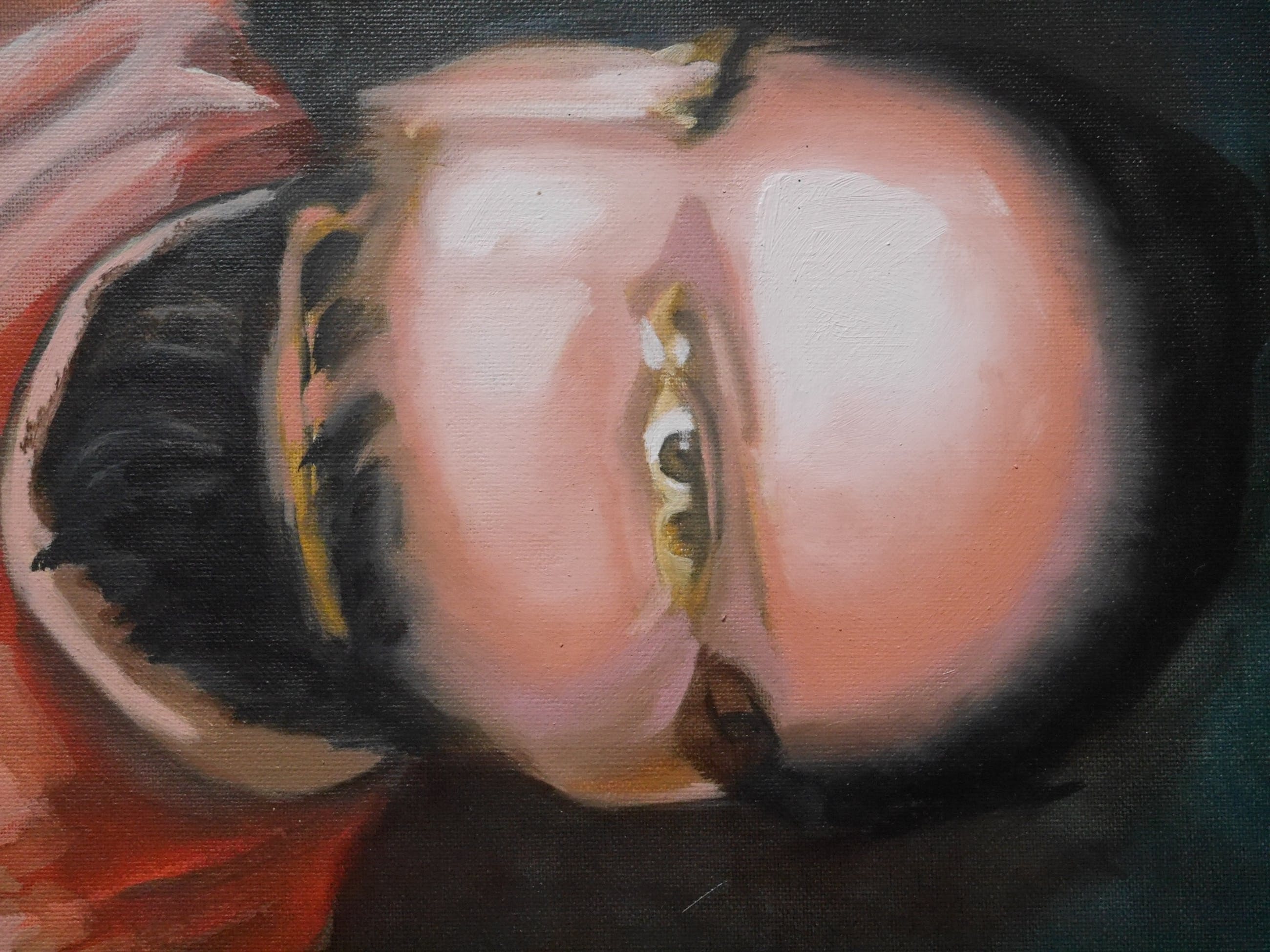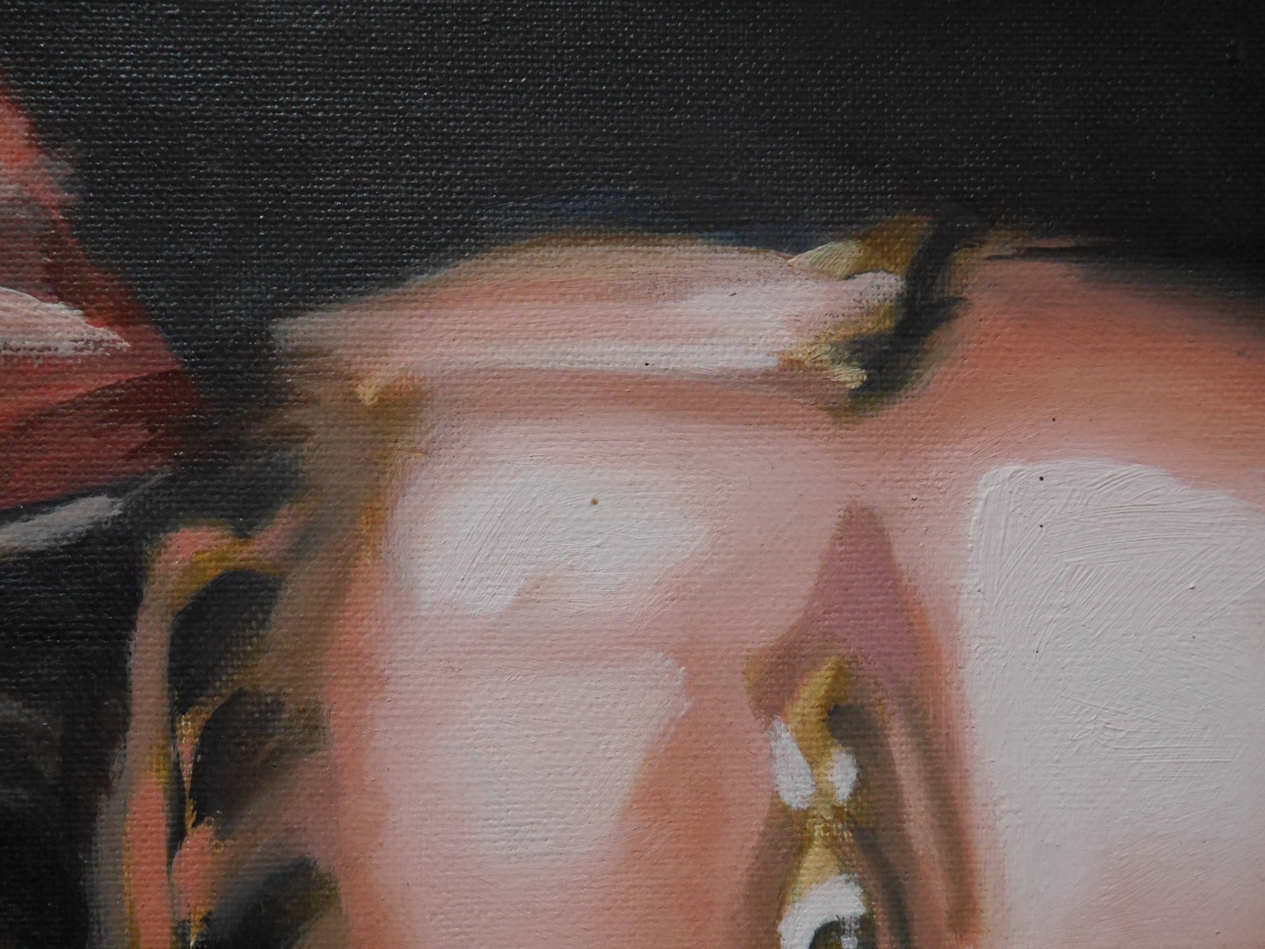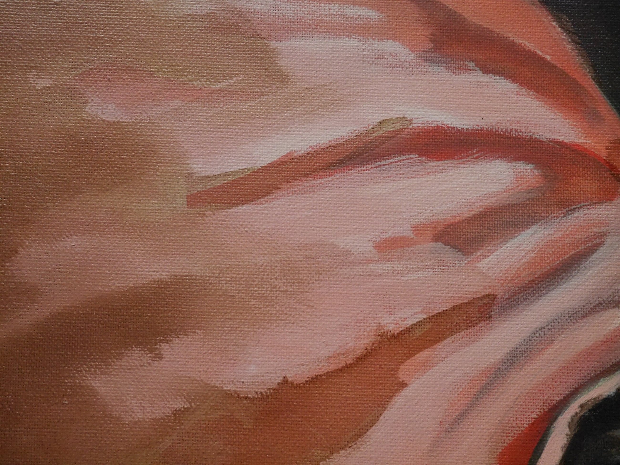 fraai portret met inspiratie van fracis bacon.het oogt geheel gaaf met een mooie lijst in een aparte afmeting....maar is is een klein scheurtje geweest dat gerepareerd is.