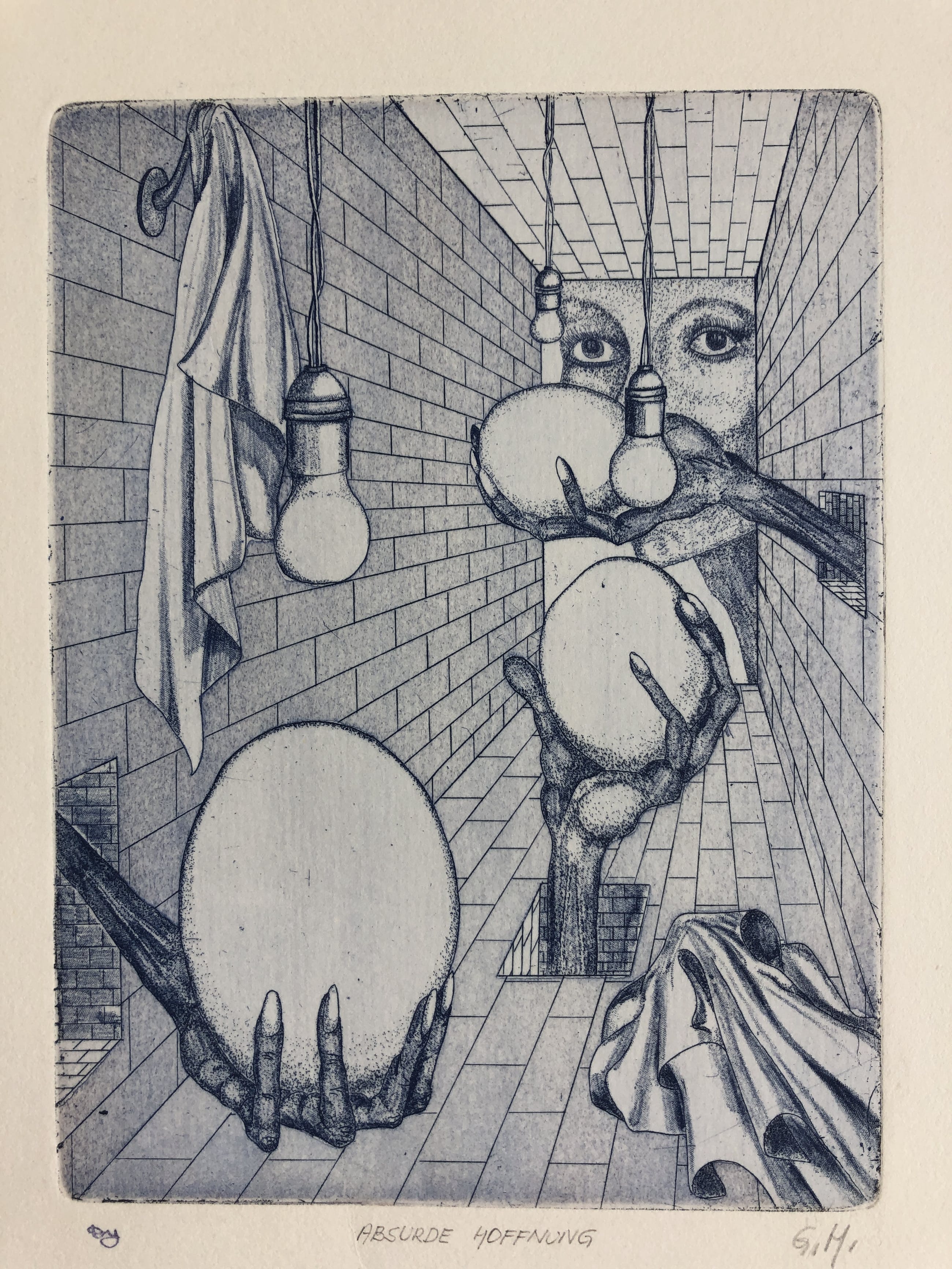 Twee etsen van H.G. De tweede ets is 39 x 34 cm. De opgegeven maat is van het papier oppervlak.