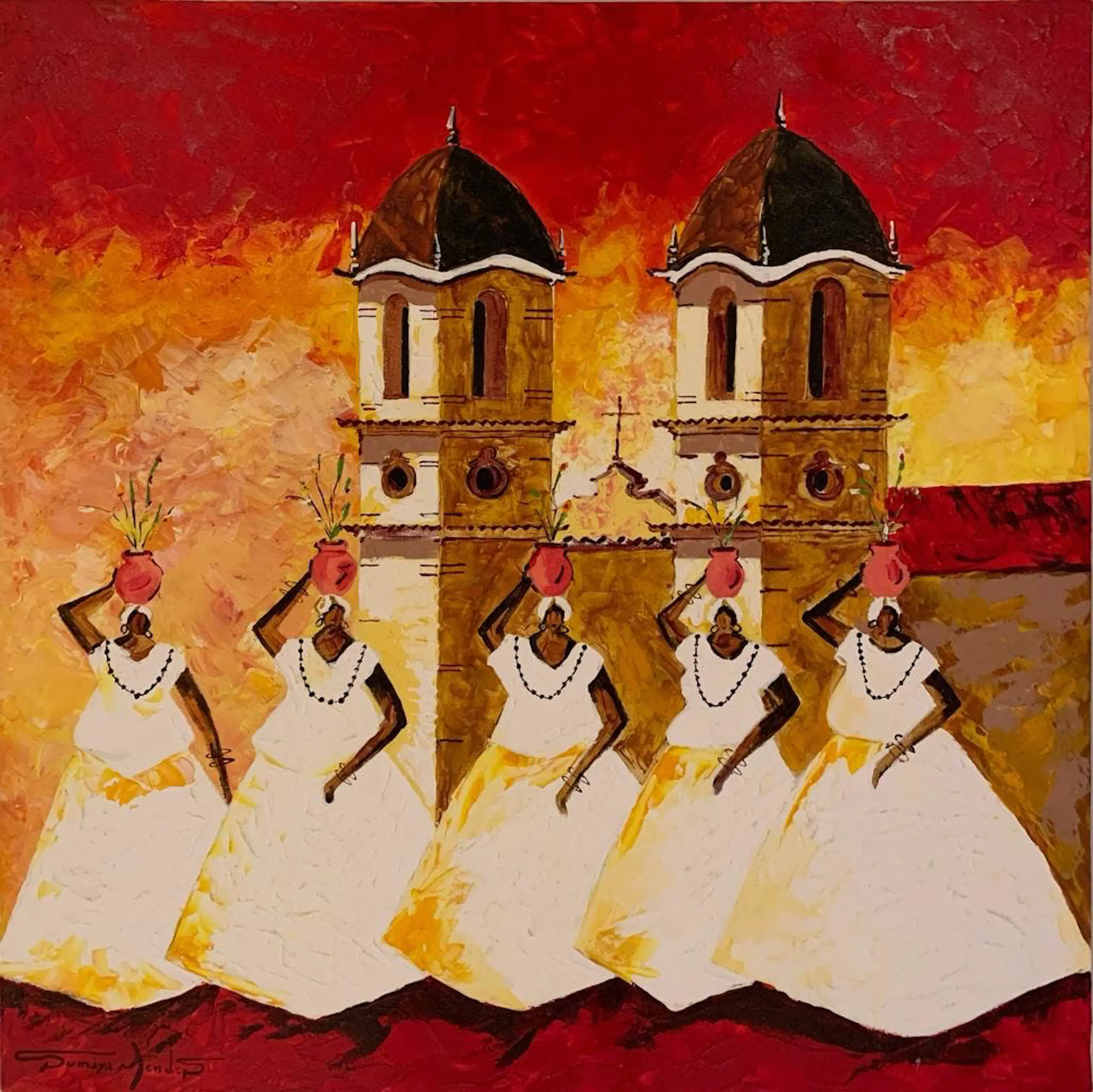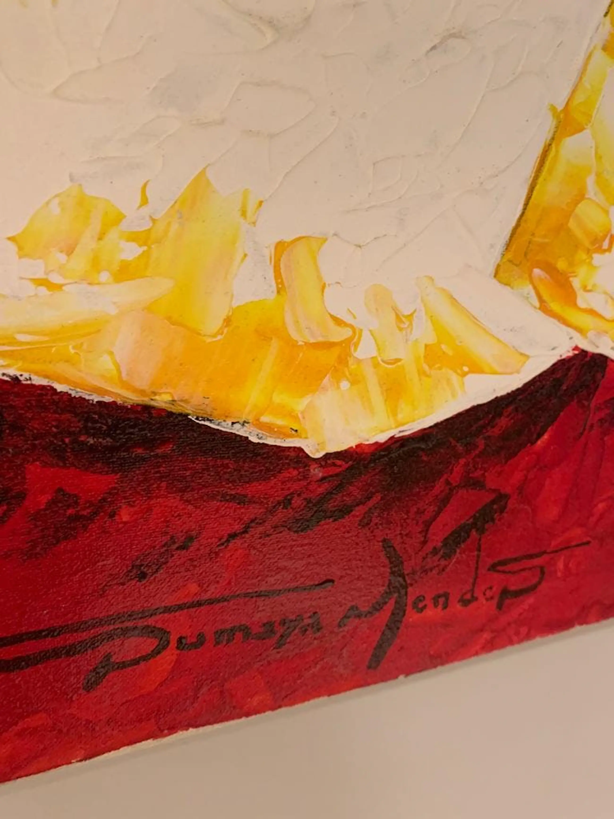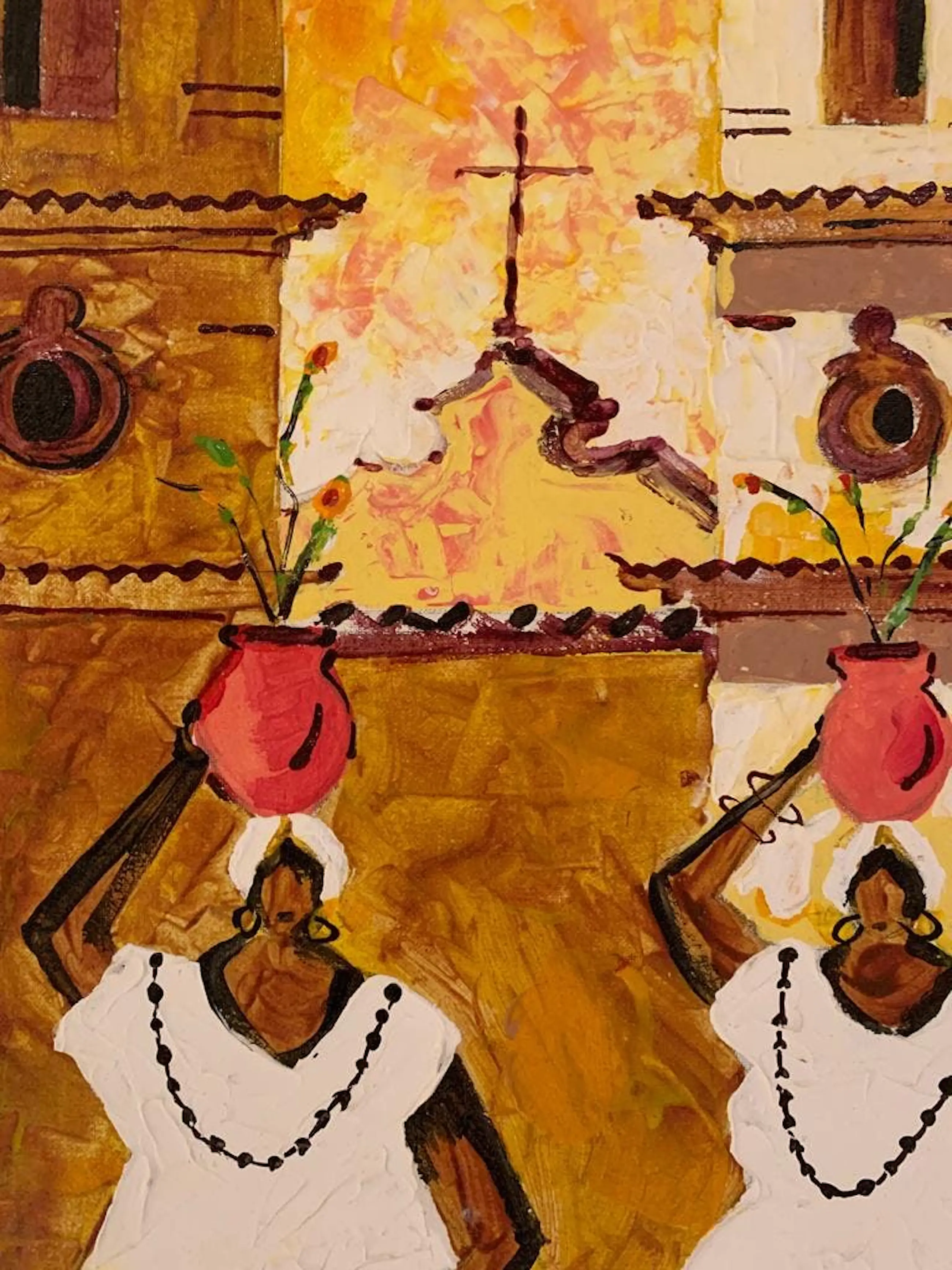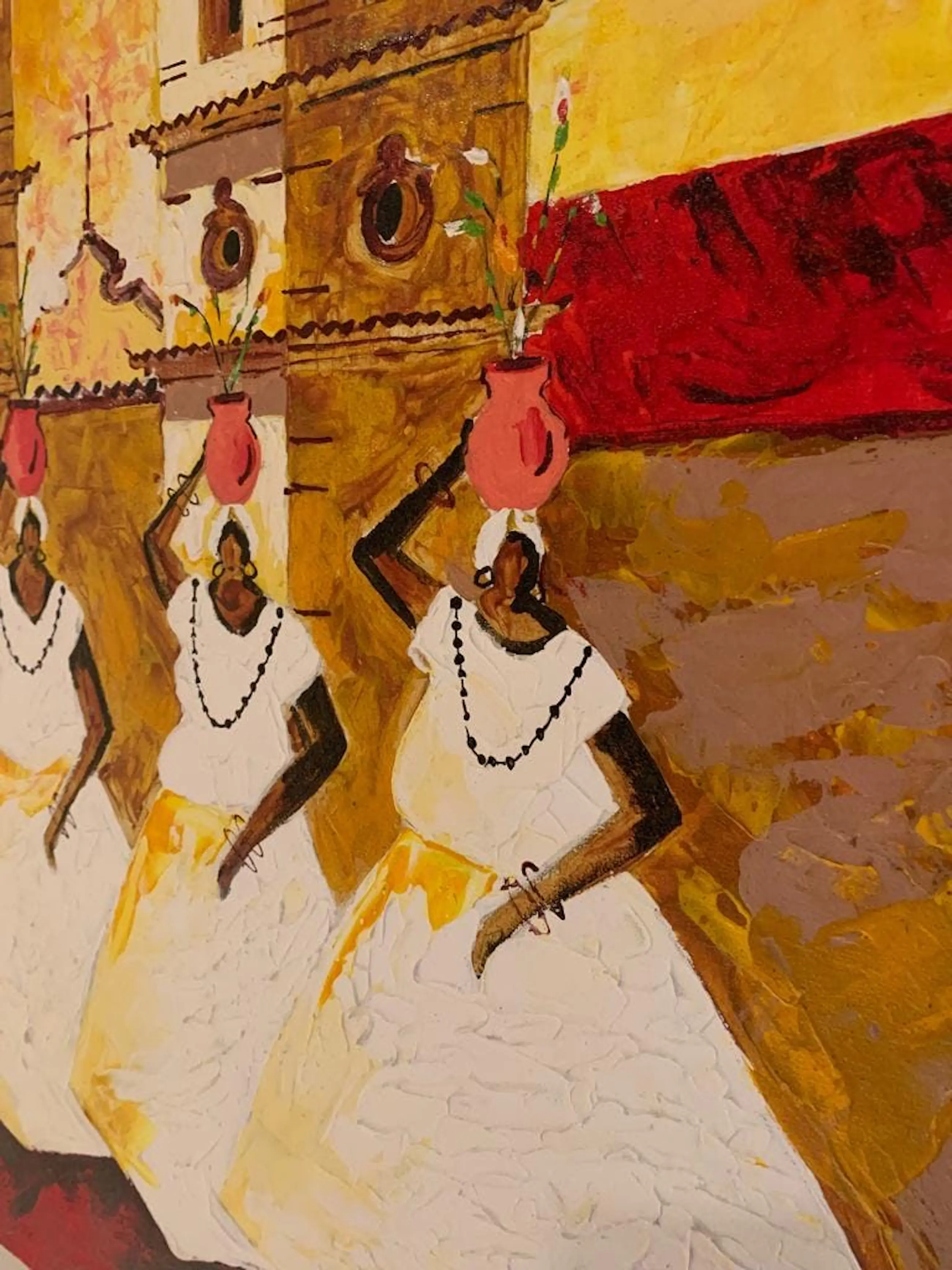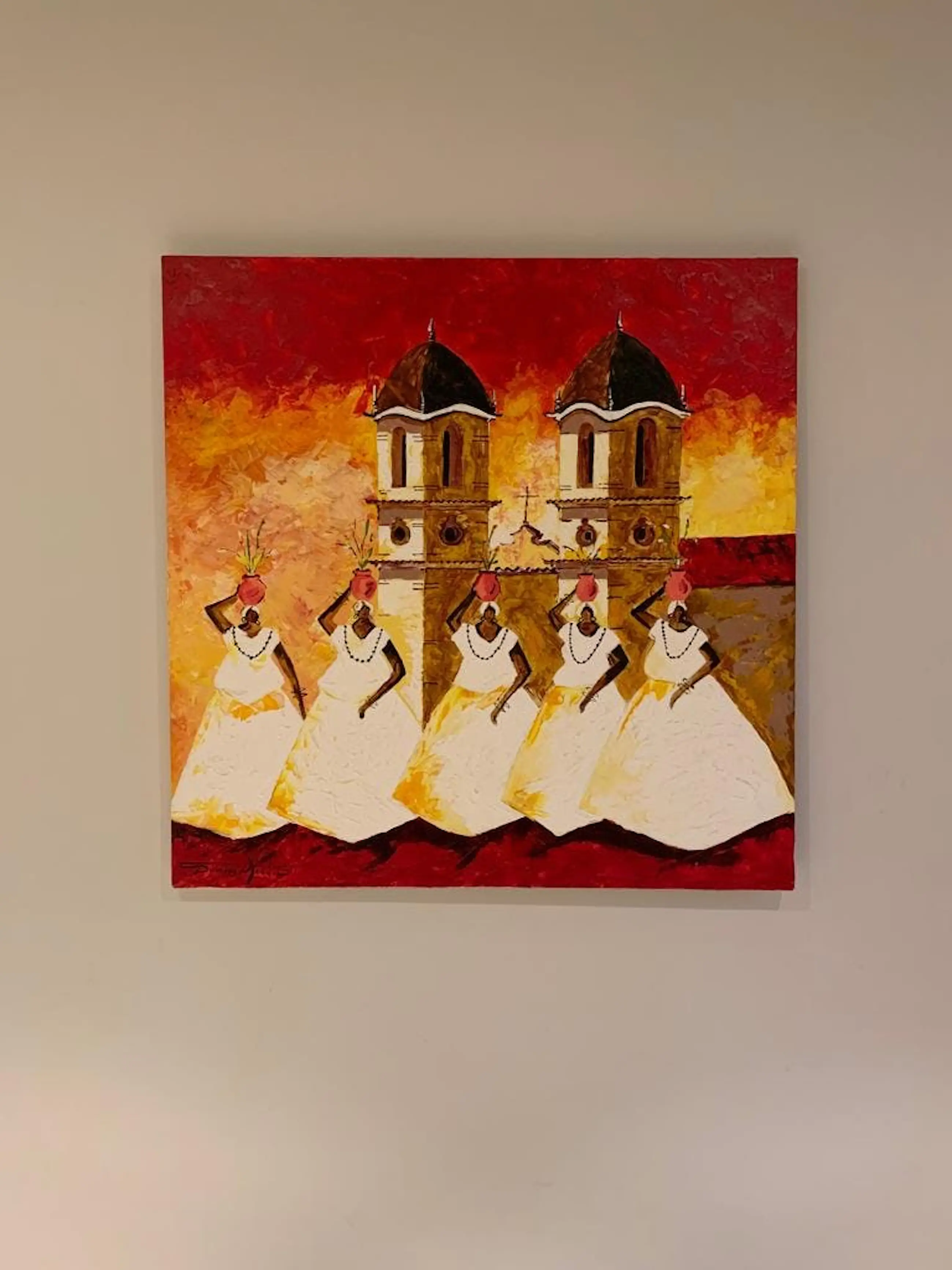 Lokale kunstenaar in Salvador, Bahia, Brazilië. Olieverfschilderij. Uitgerekt canvas. Levendige kleuren. Gekocht bij een galerie in Salvador voor $800 US.