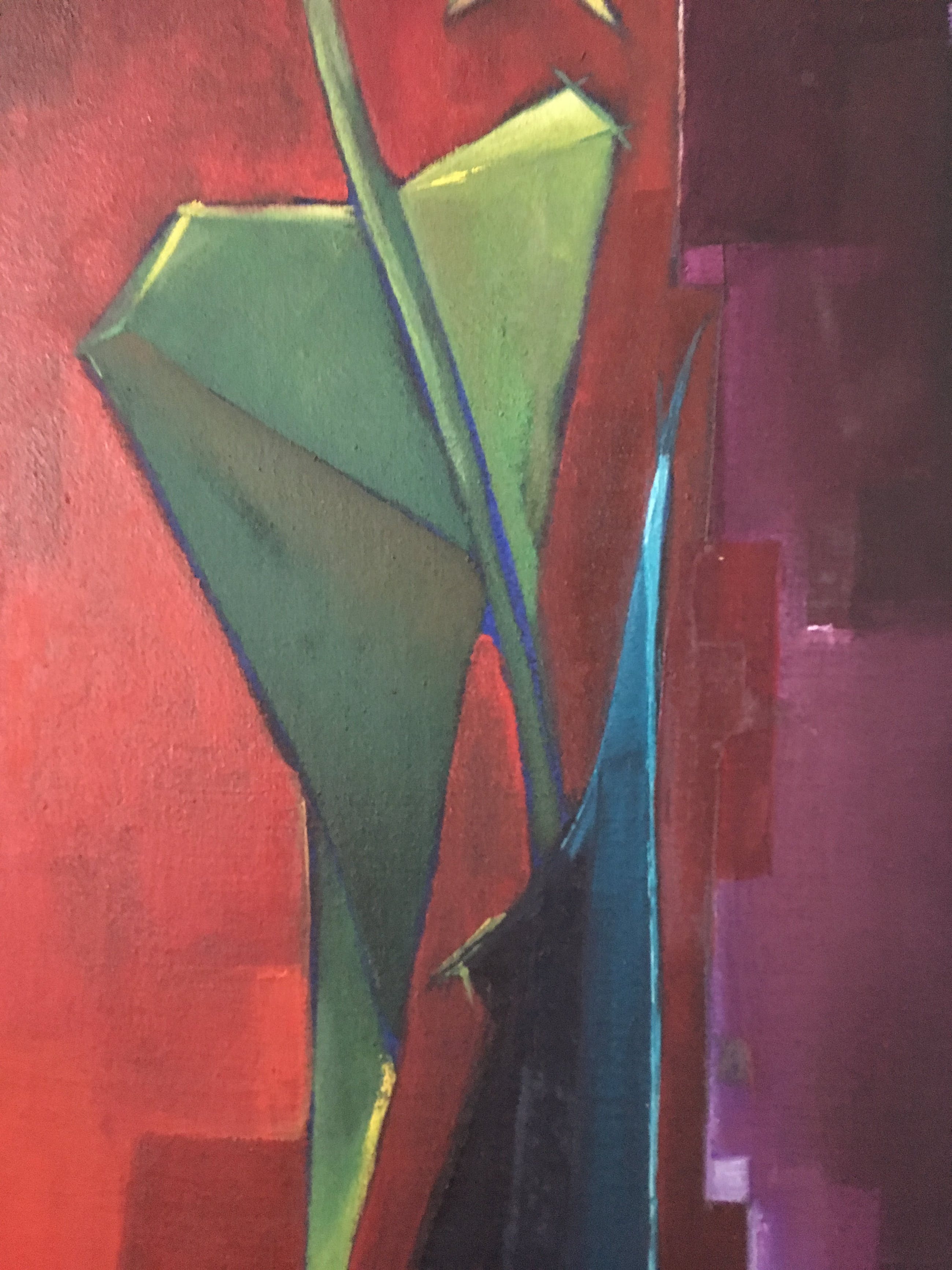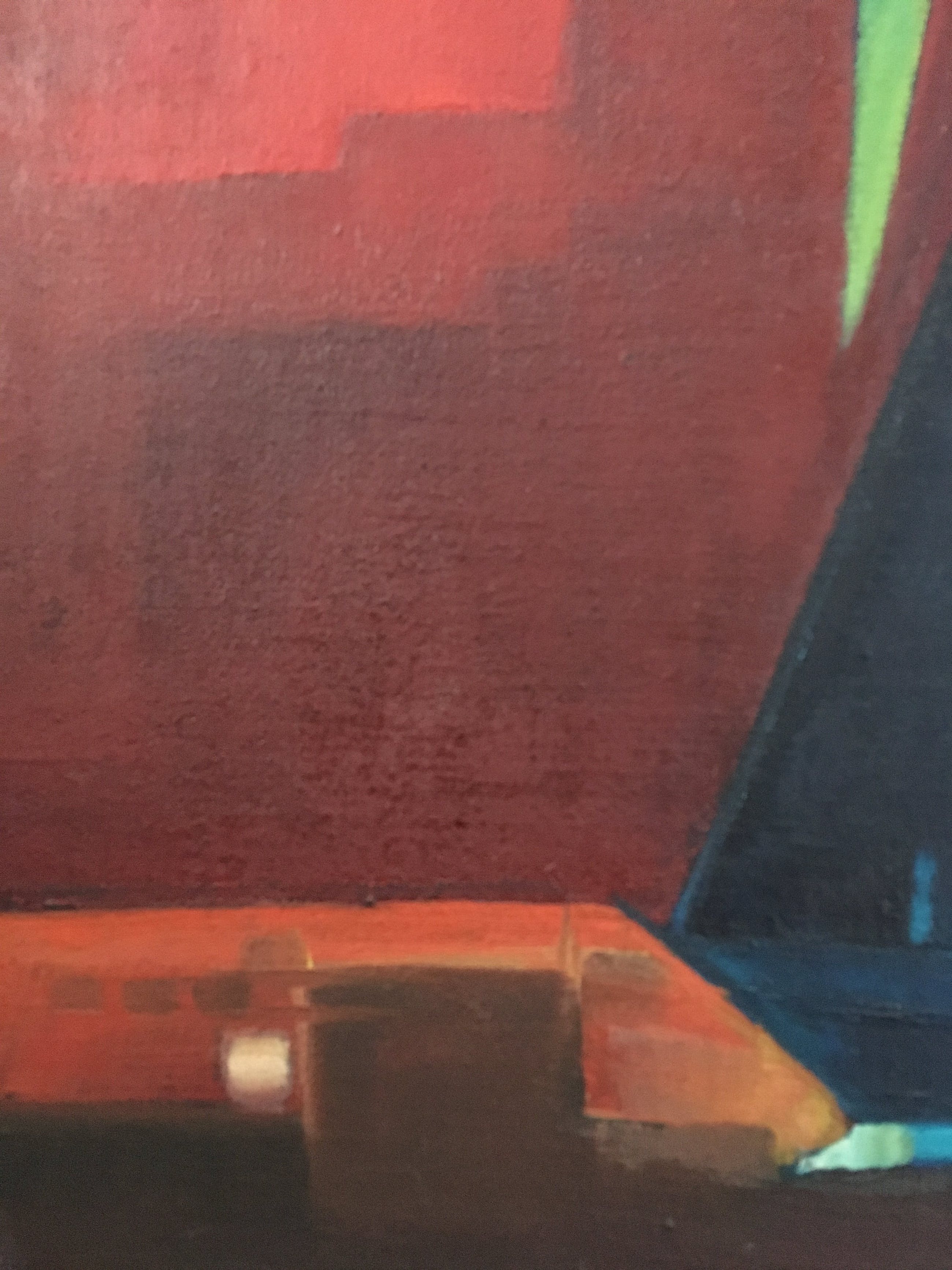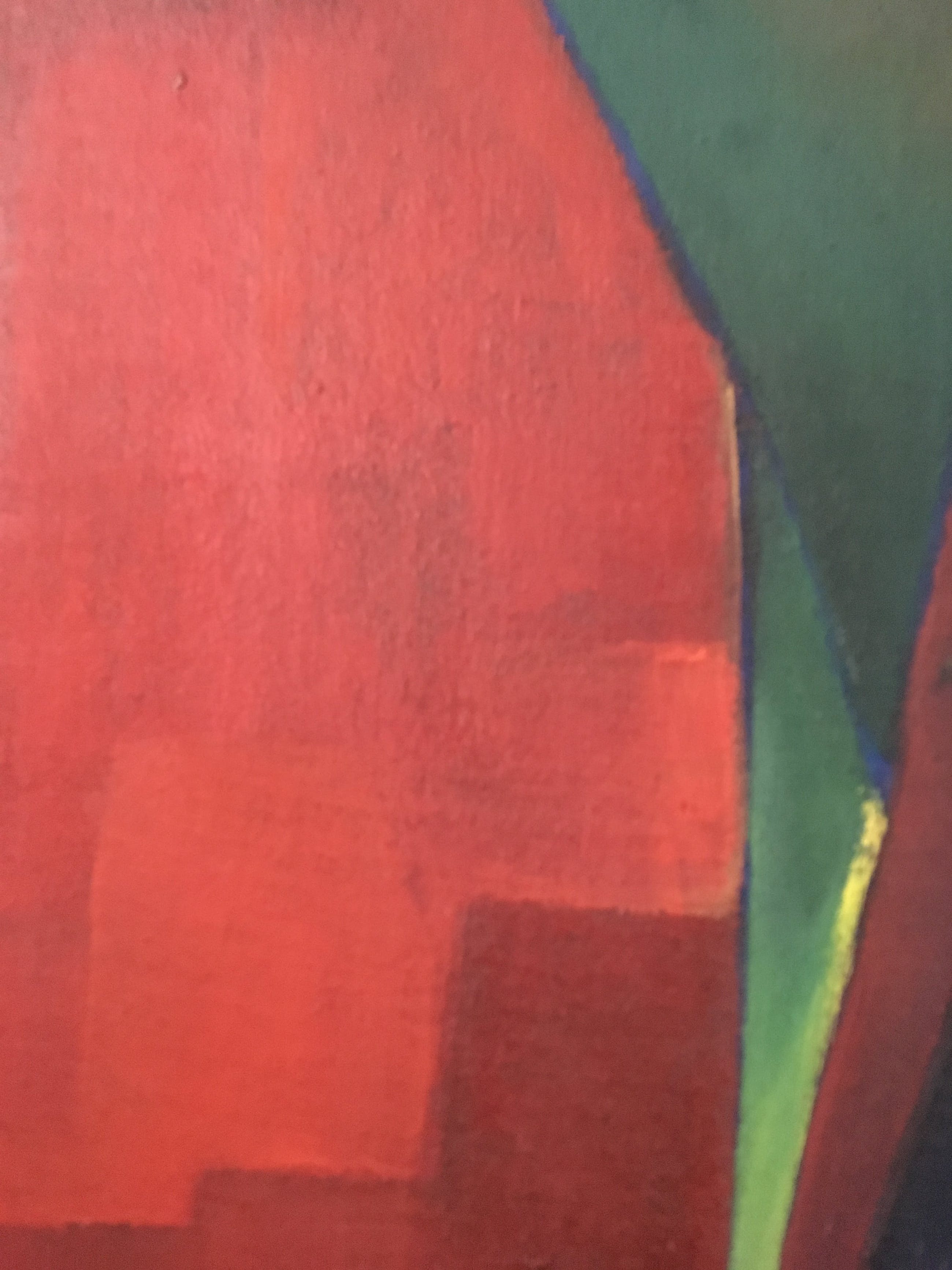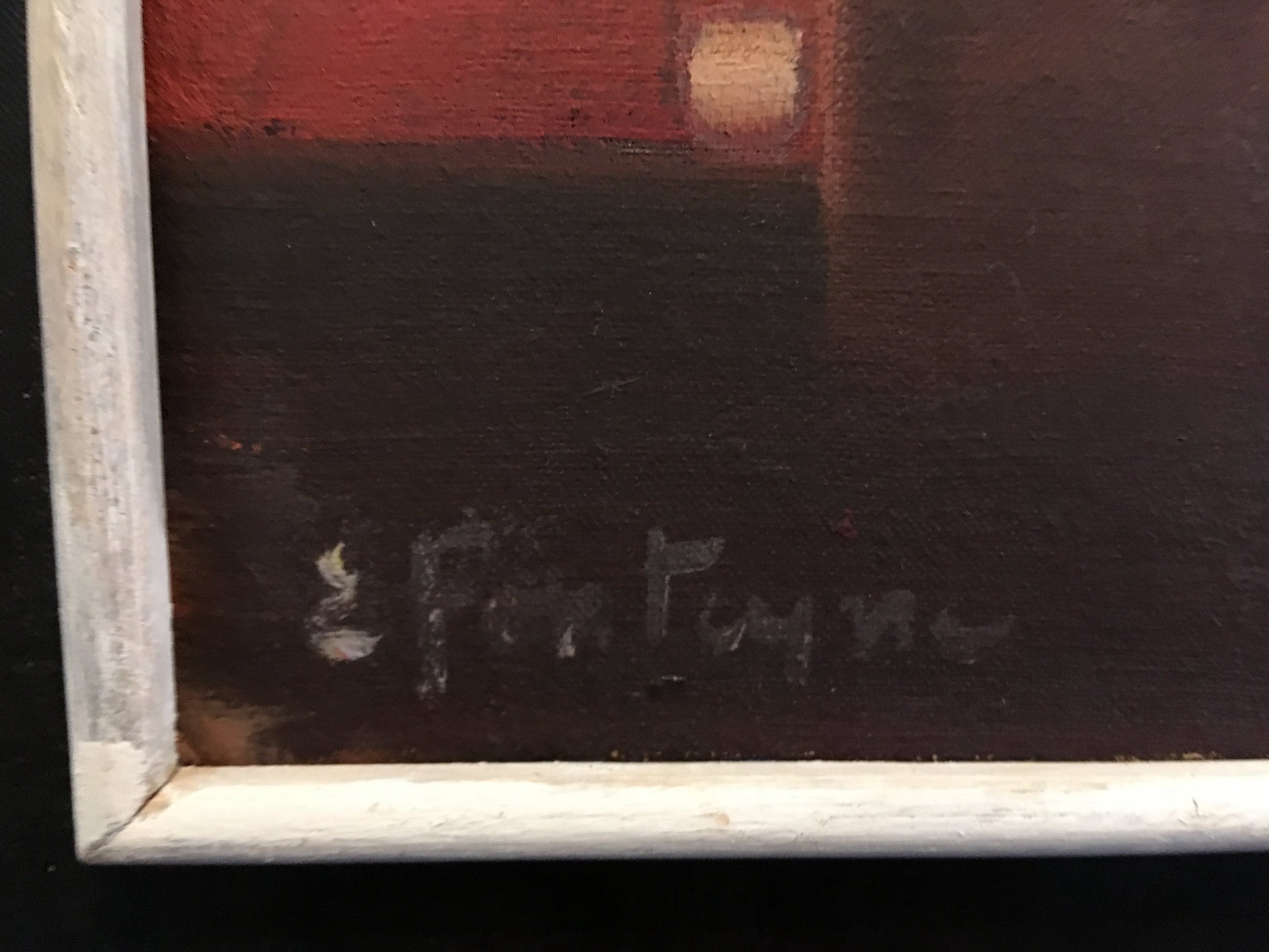 Een typisch werk uit de jaren 60 dat  in elk (vintage) interieur past. Let op de geabstraheerde vormen en de prachtige kleuren! Bekijk vooral de foto's en geniet nu al! Bovendien komt dit schilderij in een prachtige lijst waarvan het goud, zwart en wit als het ware één geheel vormt met het schilderij zelf. Dit schilderij komt uit het huis van mijn vader die twee beelden en één schilderij van deze schilder had.Hieronder vindt u een tekst van de hand van Jacques Walschap over Edgar Fonteyne: