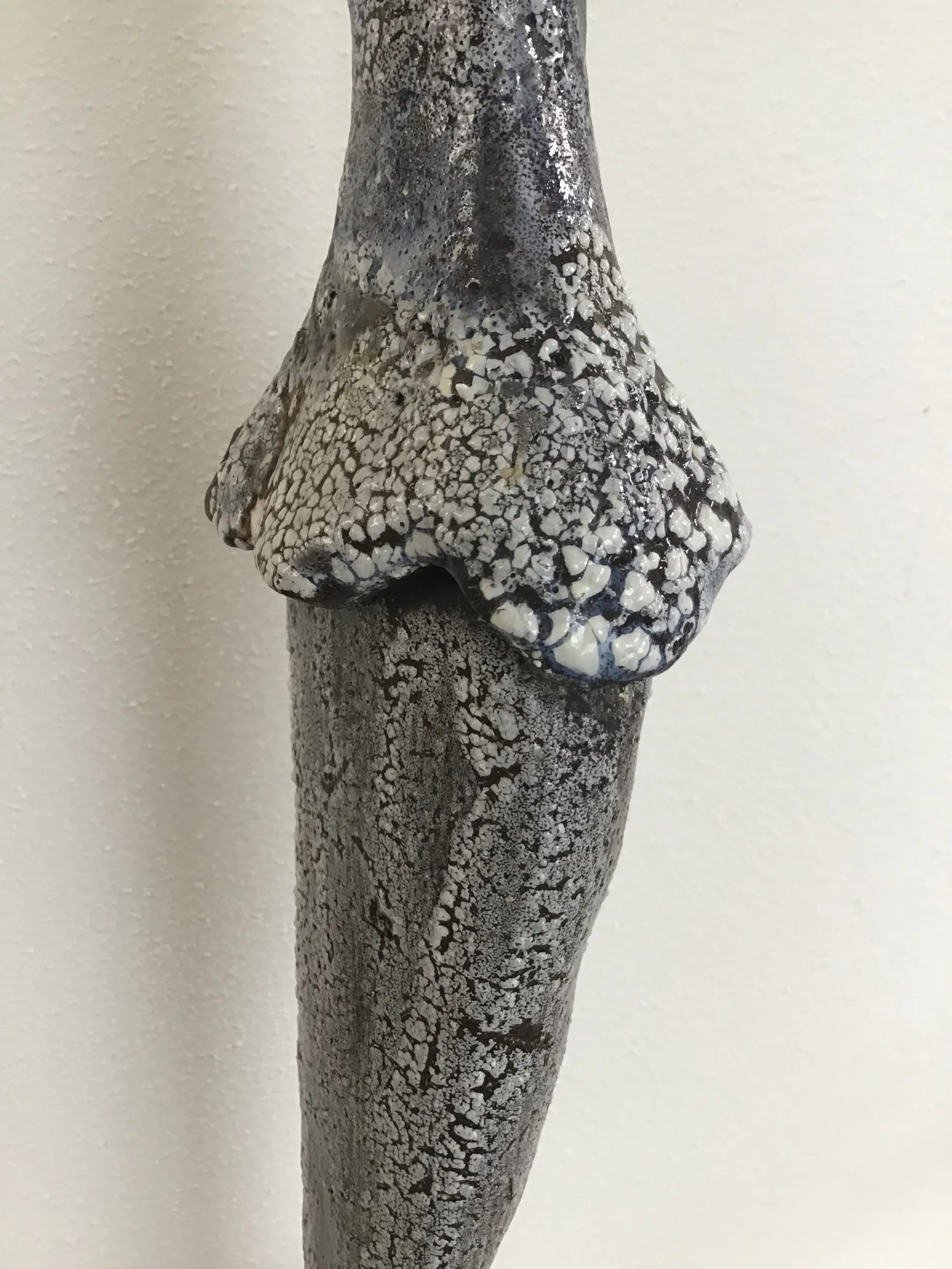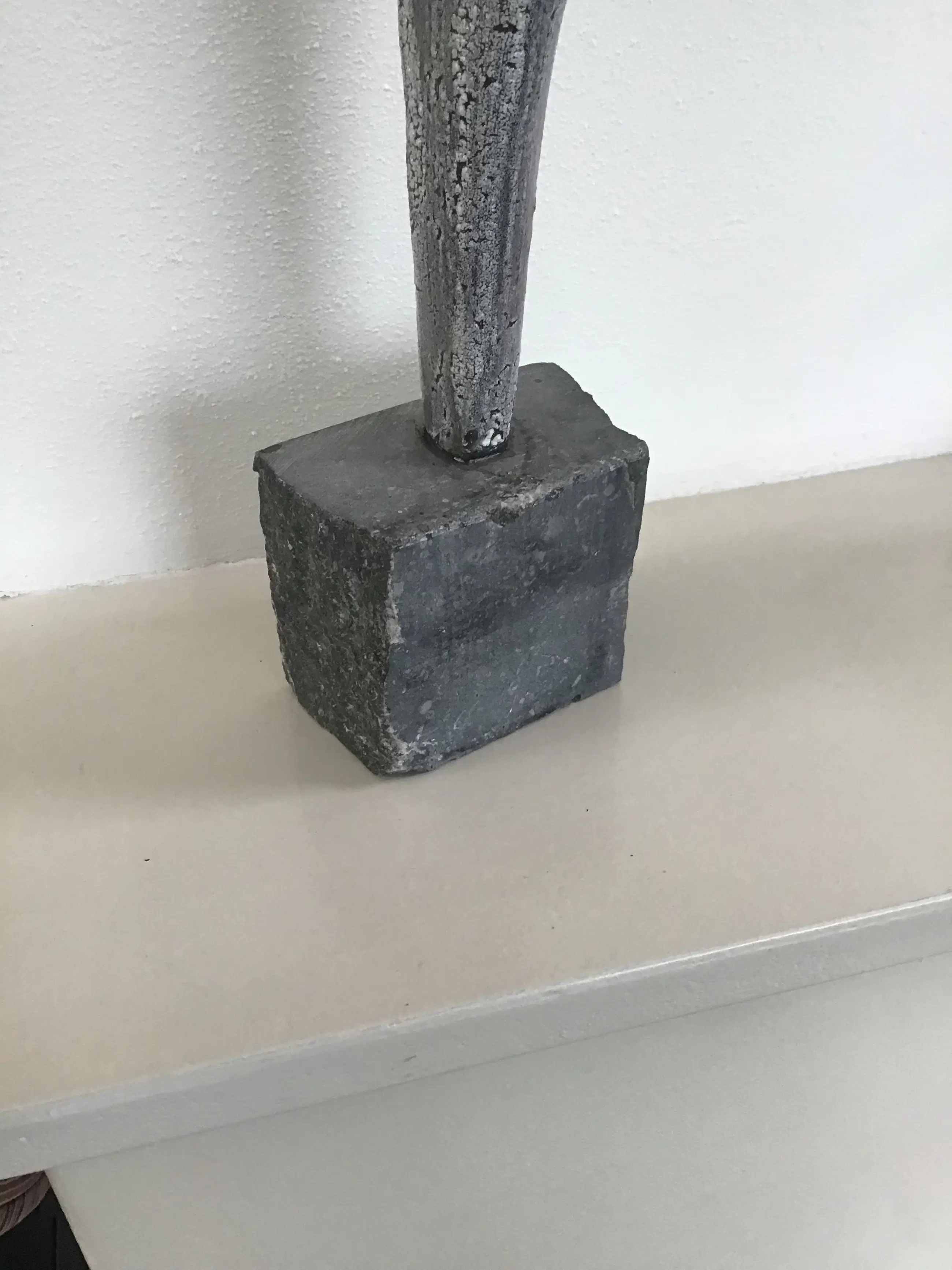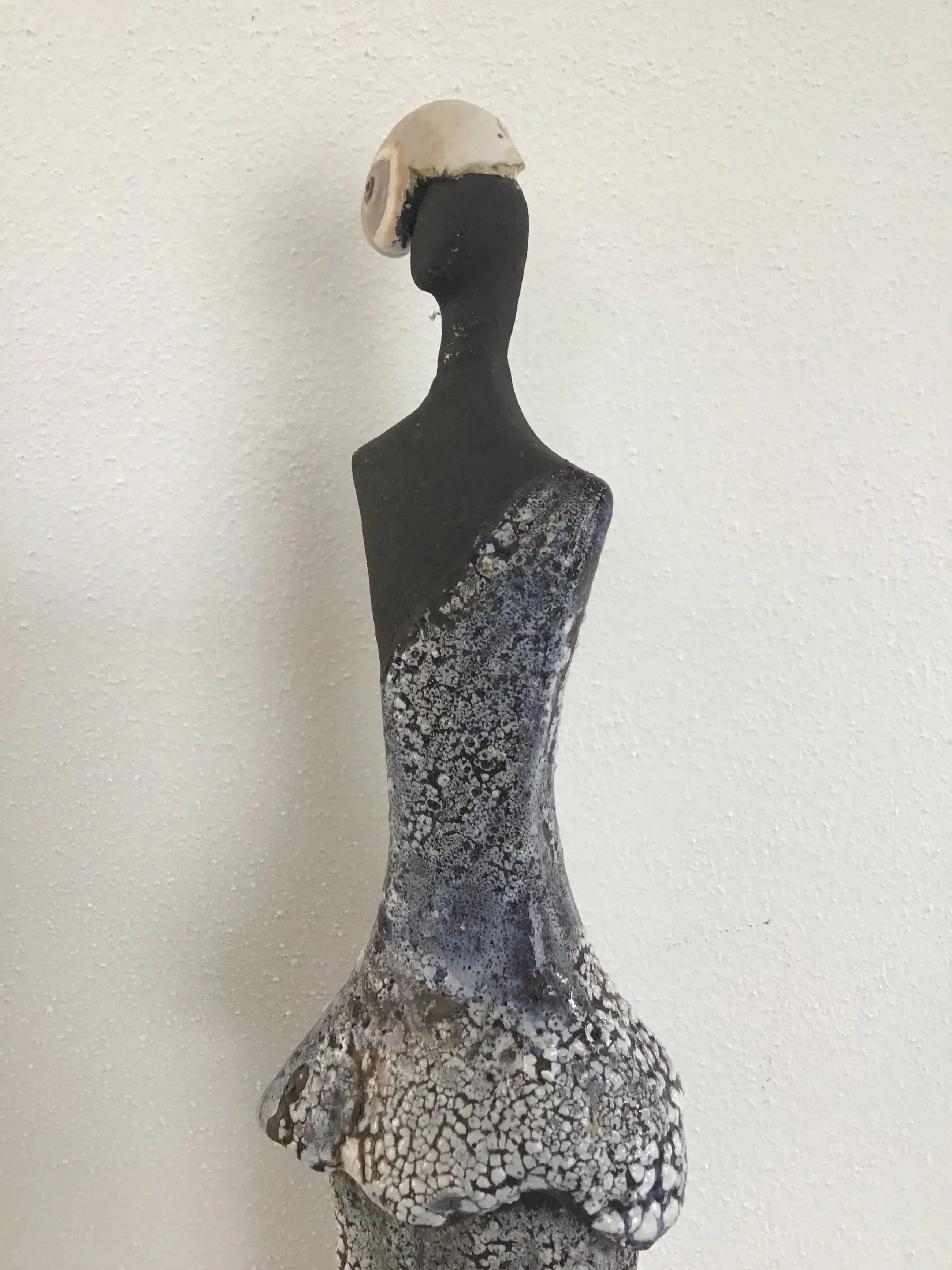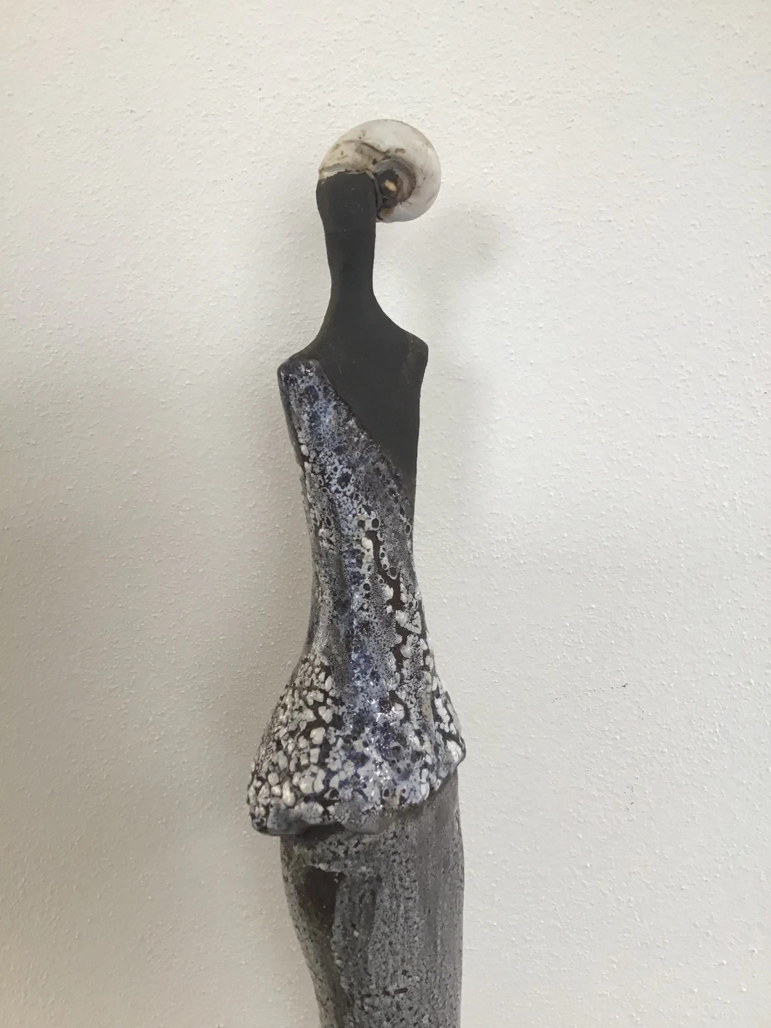 Keramiek beeld op hardstenen sokkeltje. Met initialen gesigneerd.