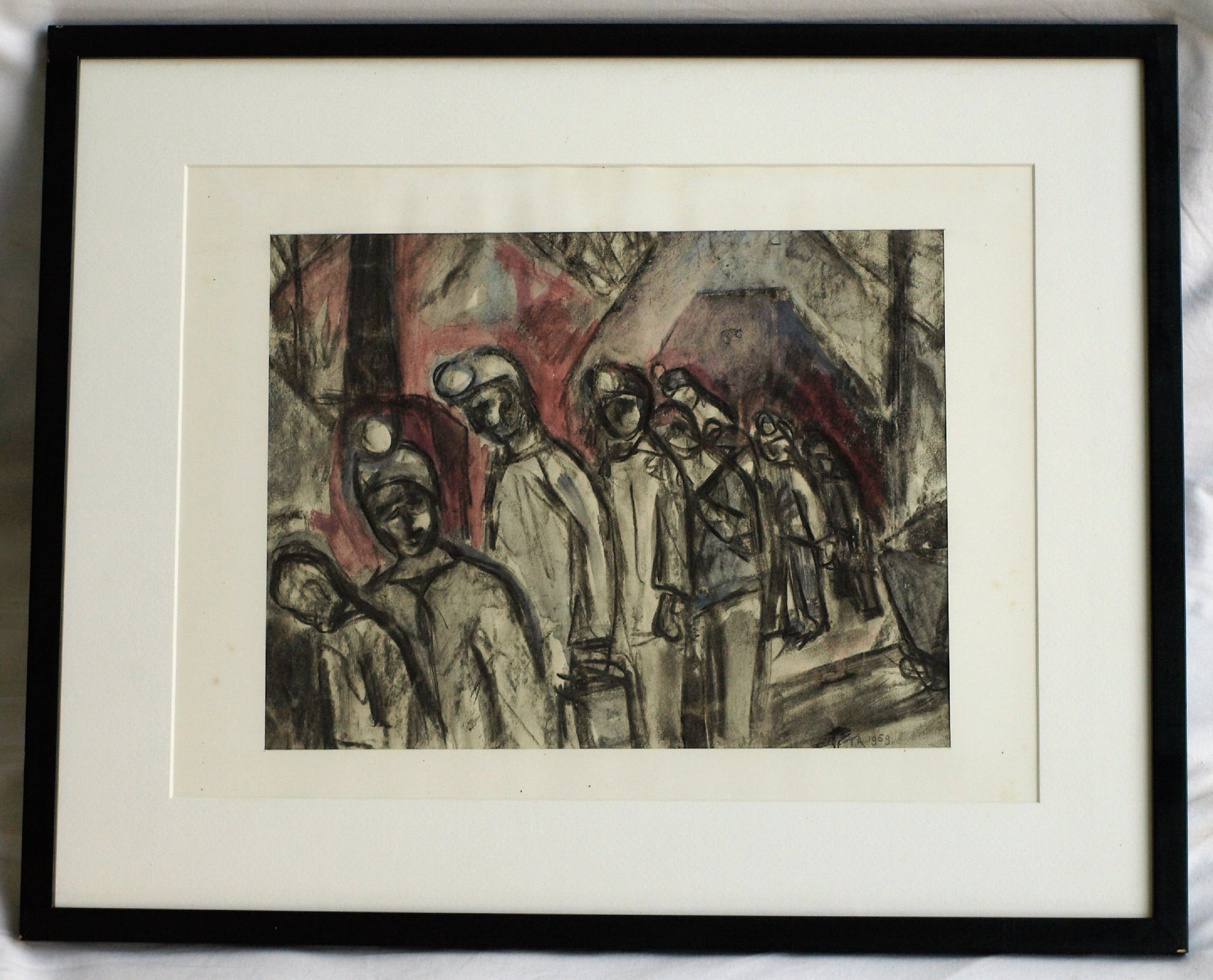 -Conditie: De tekening is in goede staat. Het passe-partout heeft een paar kleine vlekjes. De lijst heeft slijtplekjes.