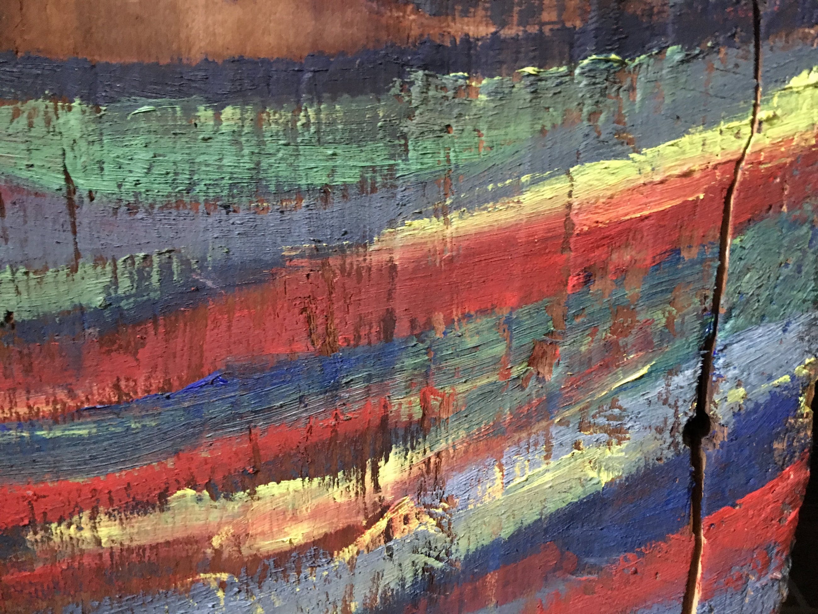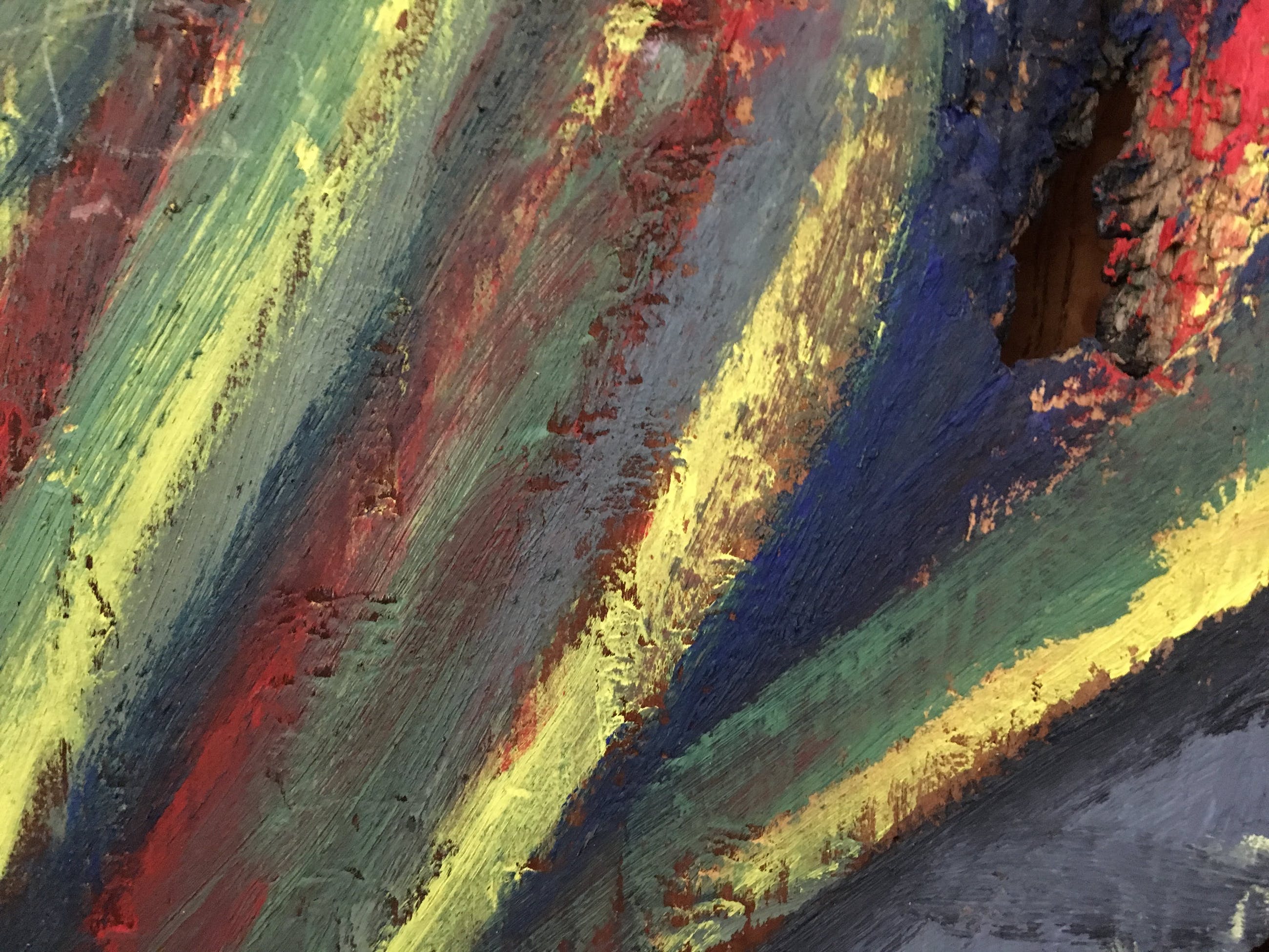 Uniek kunstwerk van Swann Mahieu. Swann Mahieu heeft maar een dergelijk werk geschilderd. Het is op warkhout gemaakt. De kleuren zijn prachtig! Bekijk vooral de details!