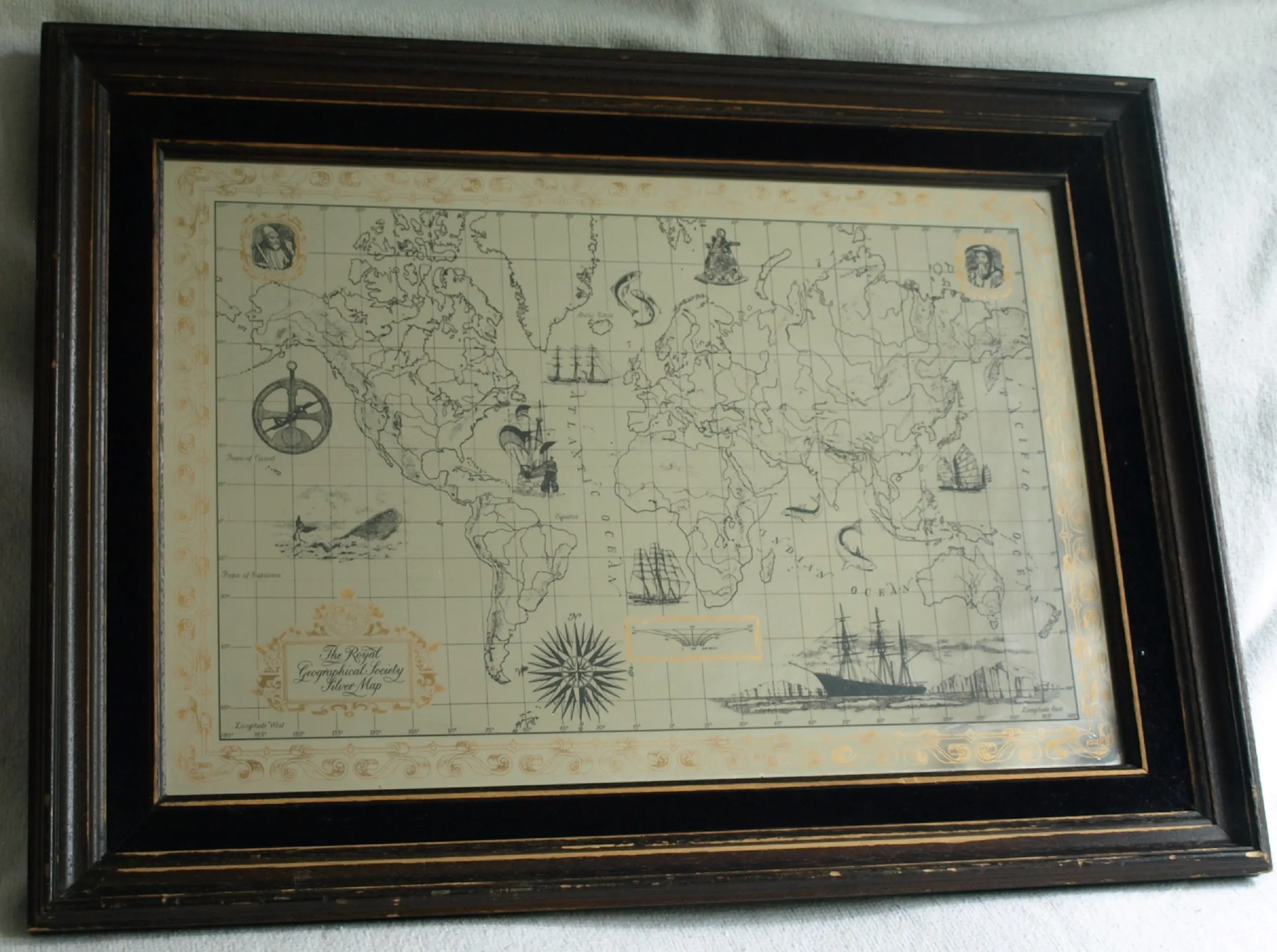 Niet of onleesbaar gesigneerd - The Royal Geographical Society Silver Map, Franklin Mint – 1976 – Lijst, 51 x 70 kopen? Bied vanaf 1!