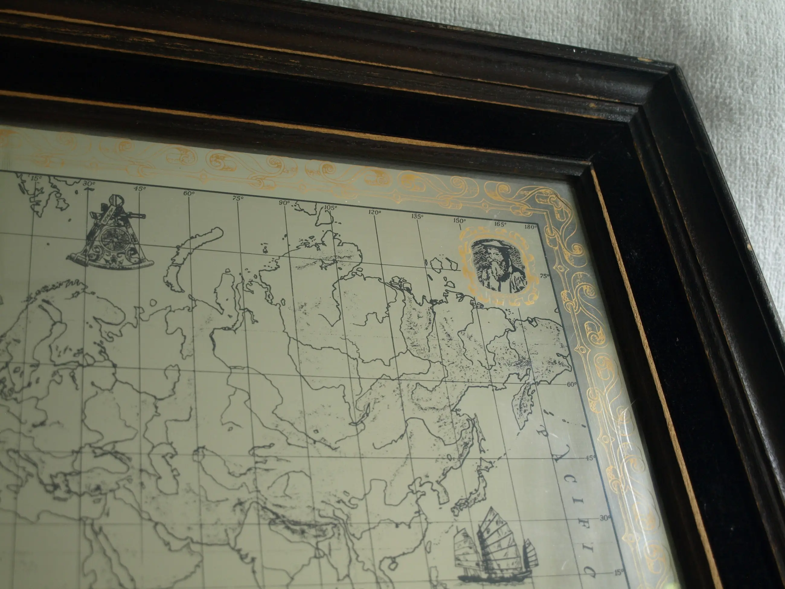 • De ‘zilveren’ kaart is in goede staat. De houten lijst heeft slijtplekken en beschadigingen.