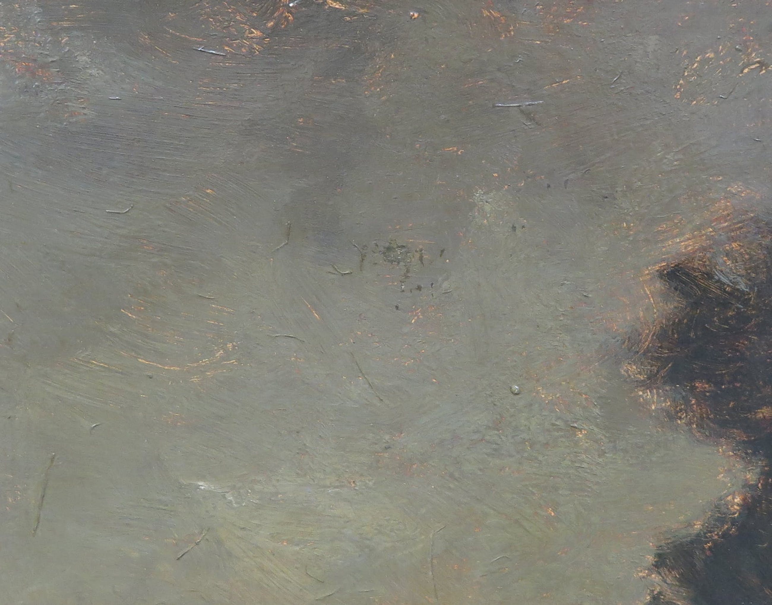 kent een kleine eerdere retouche boven in de luchtpartij (bovenrand). (Zie conditie). En het werk kan natuurlijk een schoonmaakbeurt gebruiken.
