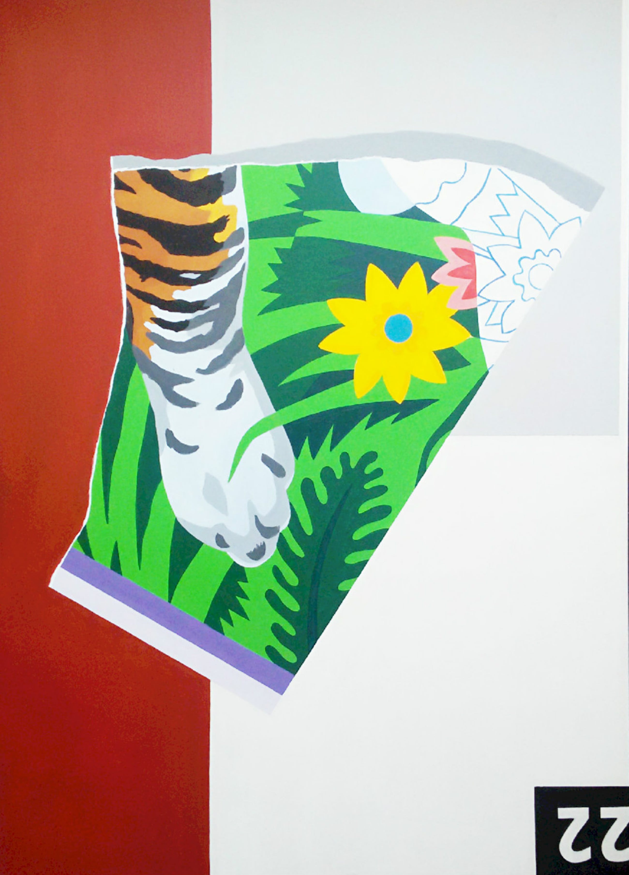 Onbekend - Tijgerpoot, acrylverf op doek (ingelijst, zeer groot) - Verkocht