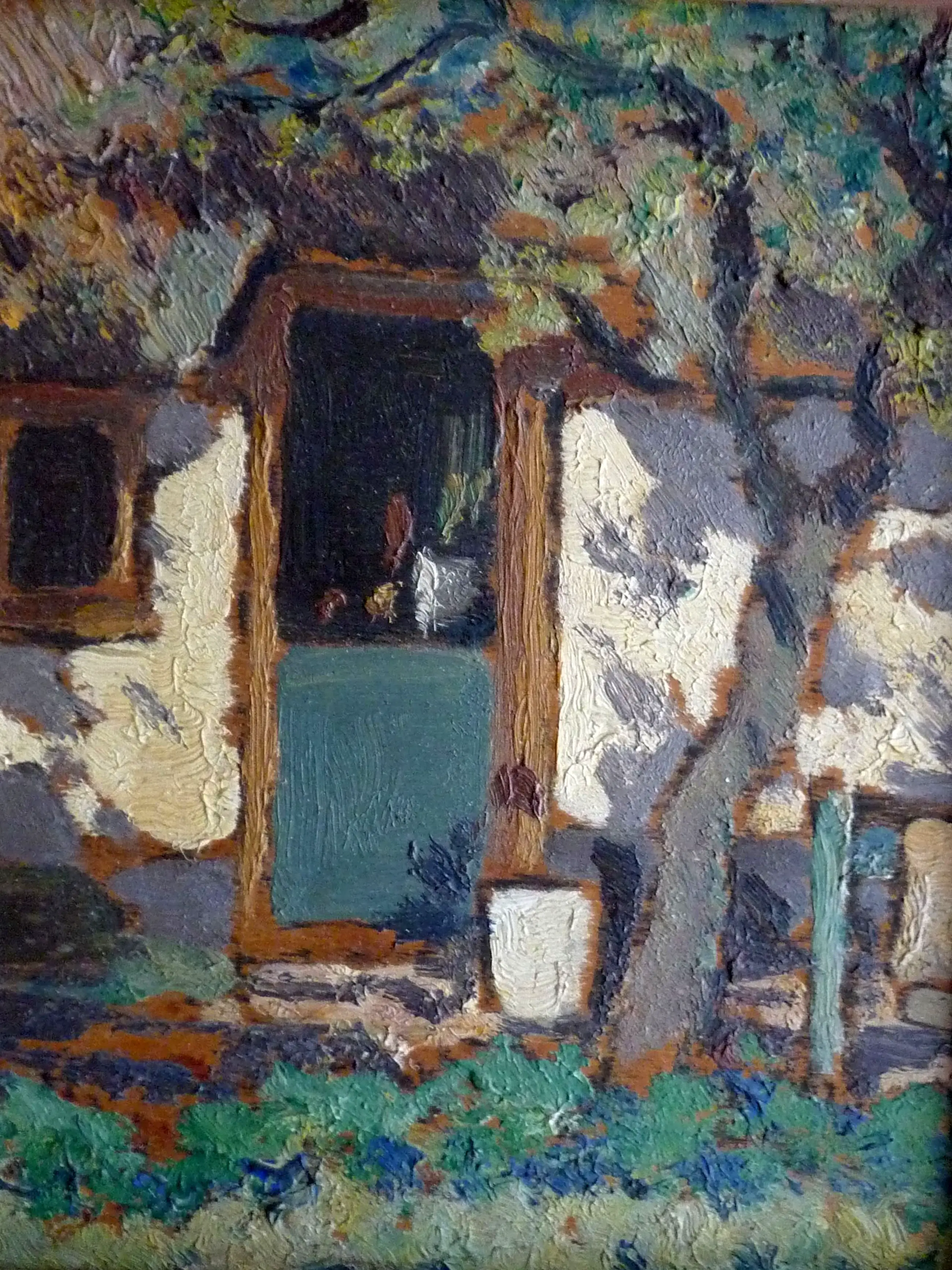 Sfeervol en technisch goed geschilderd werkje van een boerderijgevel en wat omgeving